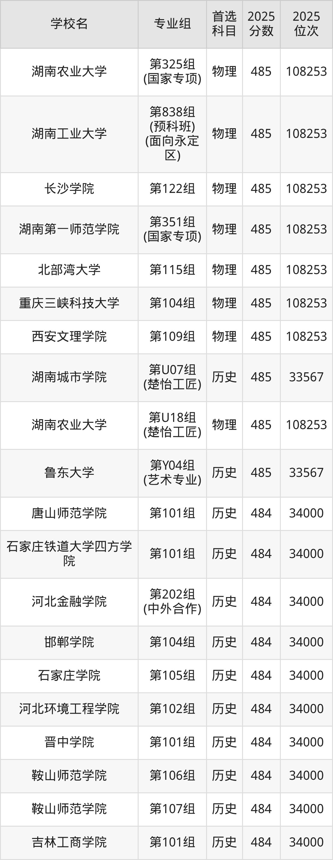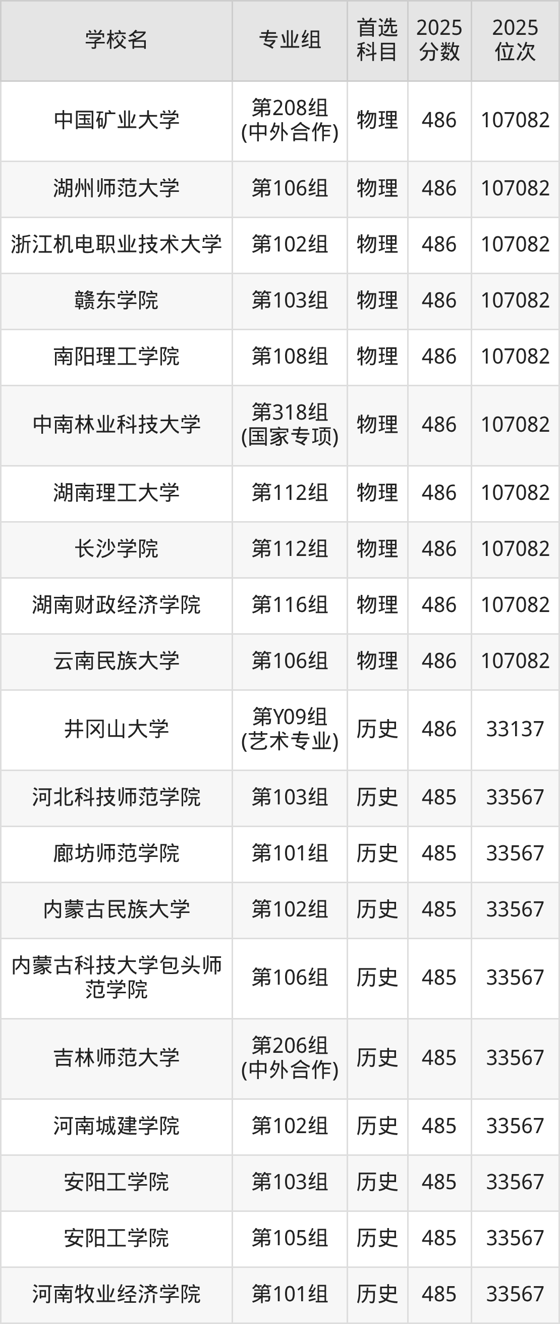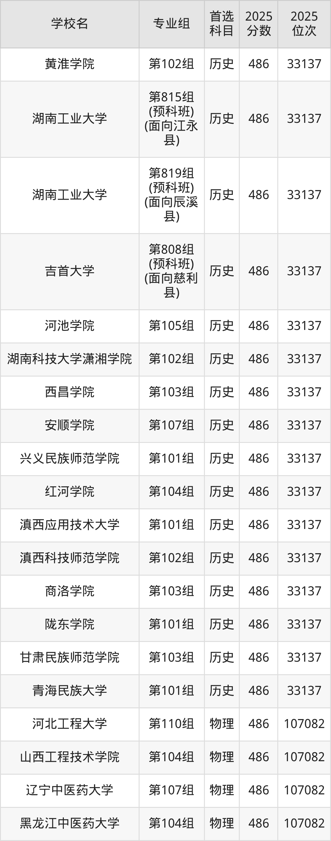 湖南高考历史类486分对应的位次排名是33137名,物理类486分对应的位次排名是107082名,因此建议2026年位次排在这附近的同学考虑这些大学。