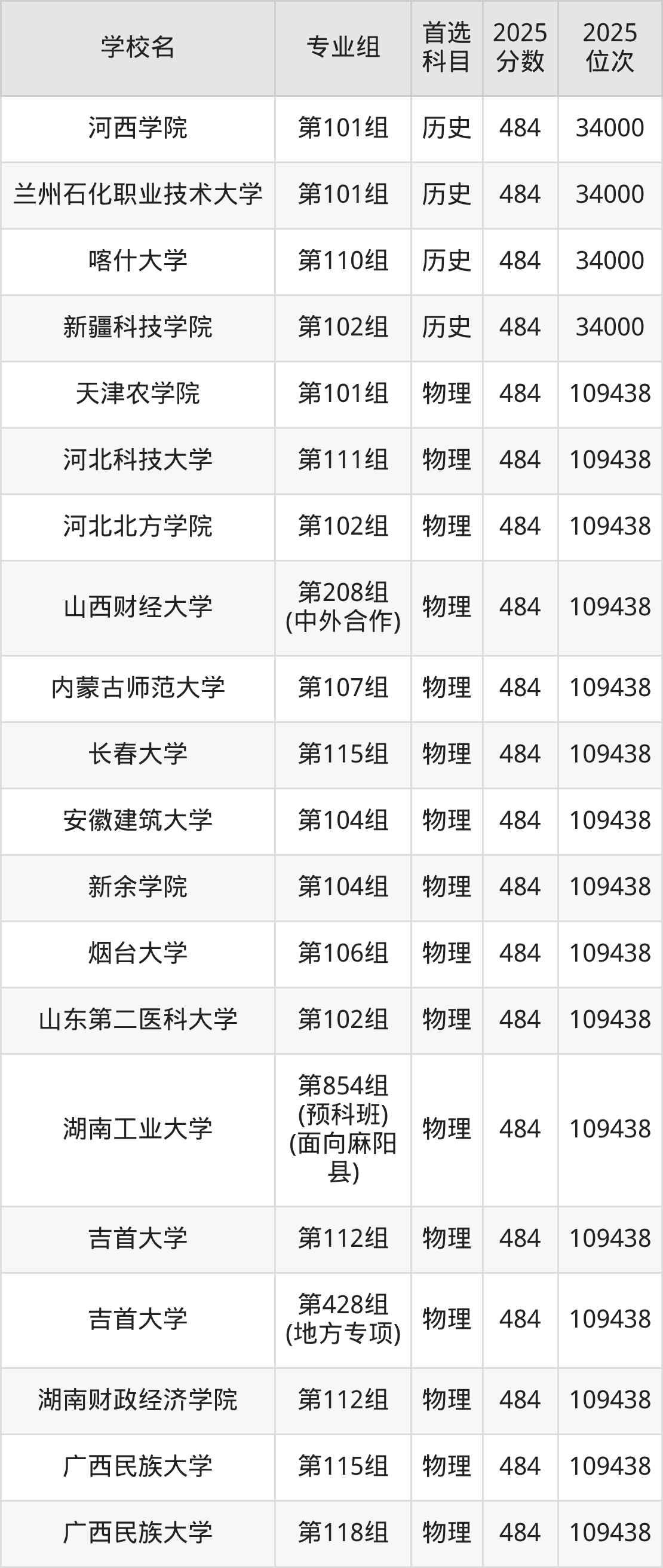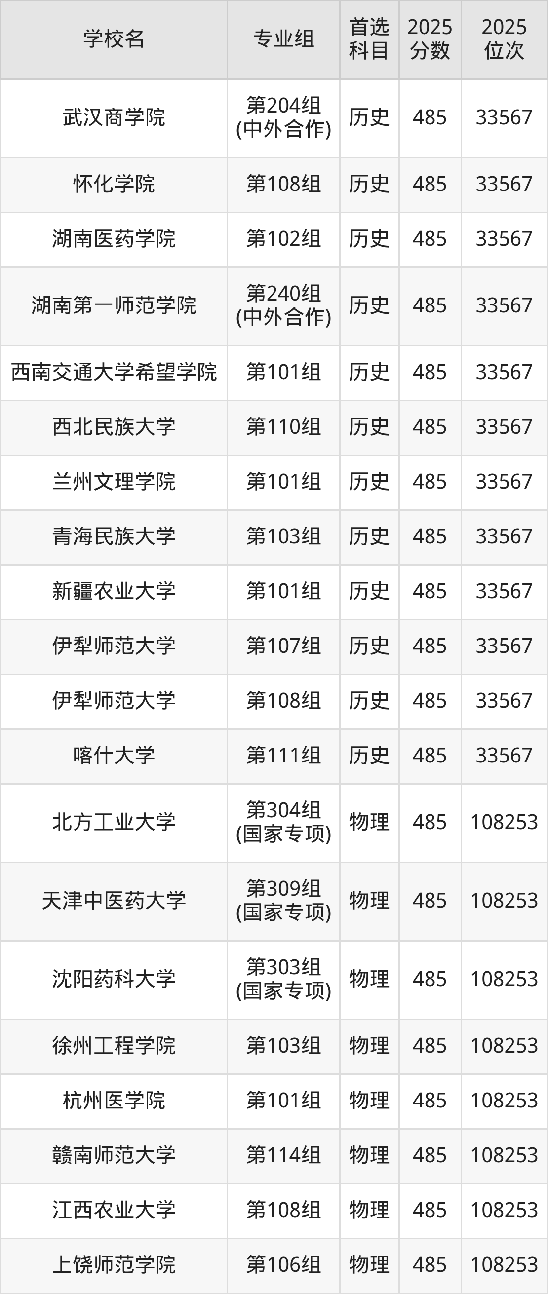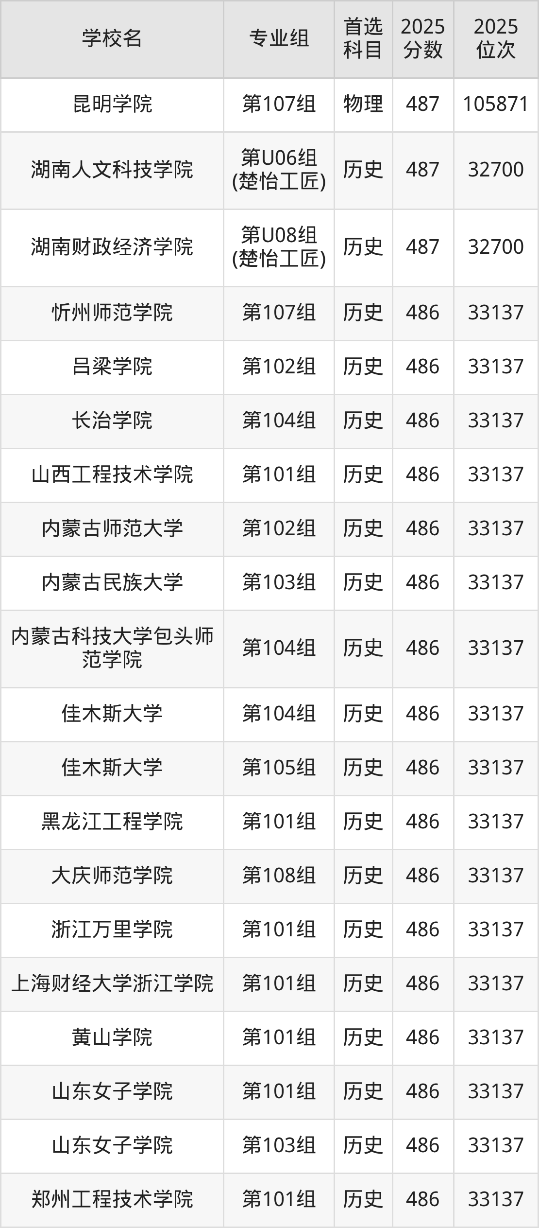 湖南高考历史类486分对应的位次排名是33137名,物理类486分对应的位次排名是107082名,因此建议2026年位次排在这附近的同学考虑这些大学。
