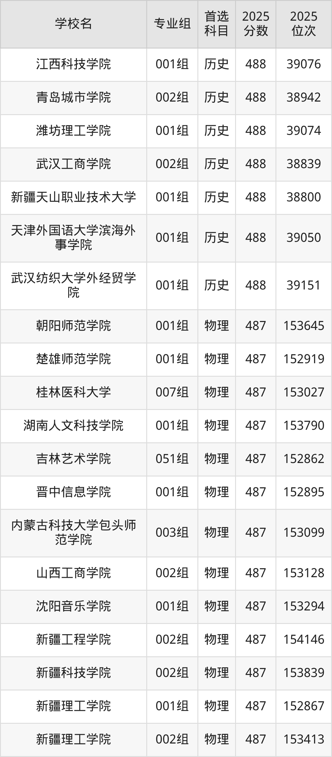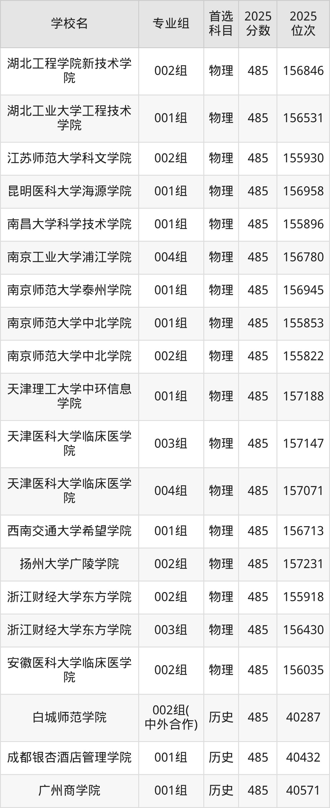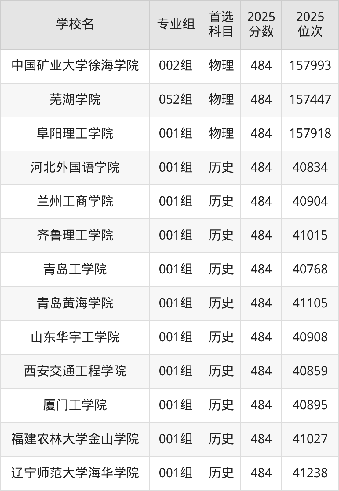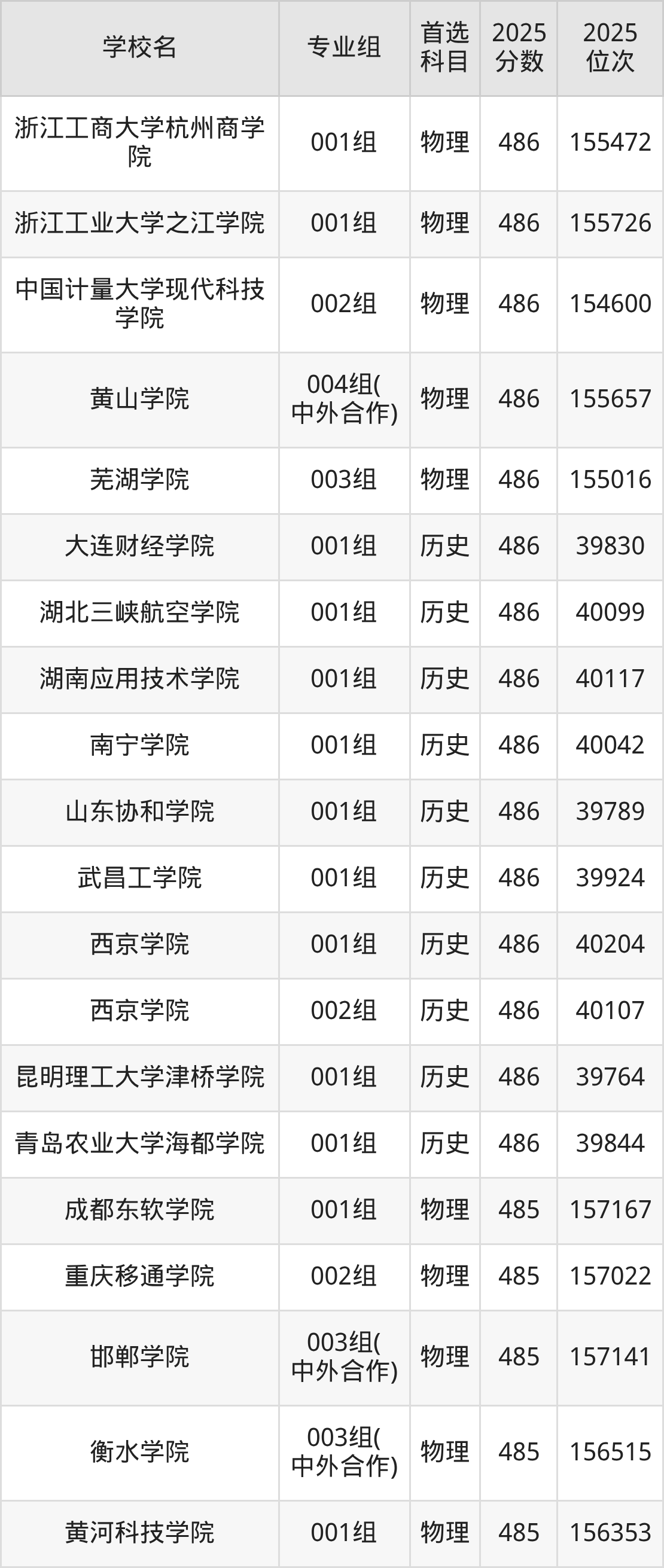2025年在安徽高考历史类录取分数线是486分的大学有大连财经学院、湖北三峡航空学院、湖南应用技术学院、南宁学院、山东协和学院、武昌工学院、西京学院、昆明理工大学津桥学院、青岛农业大学海都学院。物理类录取分数线是486分的大学有长春职业技术大学、重庆机电职业技术大学、广西艺术学院、广州南方学院、呼伦贝尔学院、江西工程学院、鲁东大学、南阳理工学院、四川电影电视学院、武昌工学院等。