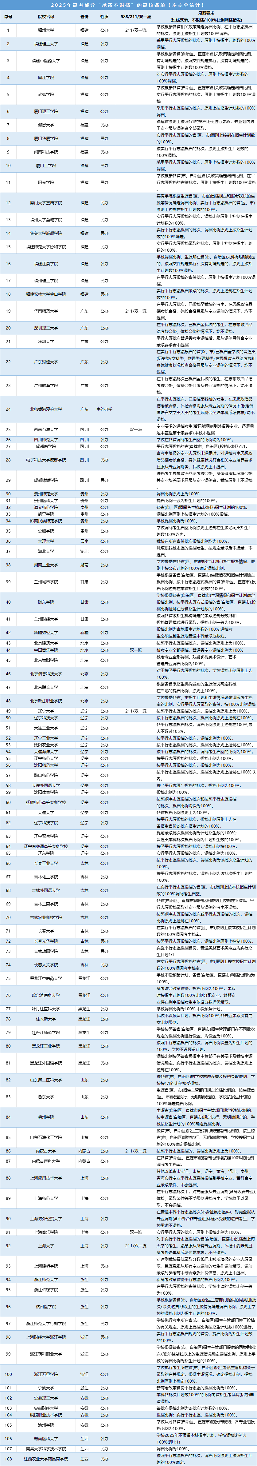 一、2025承诺不退档的高校名单