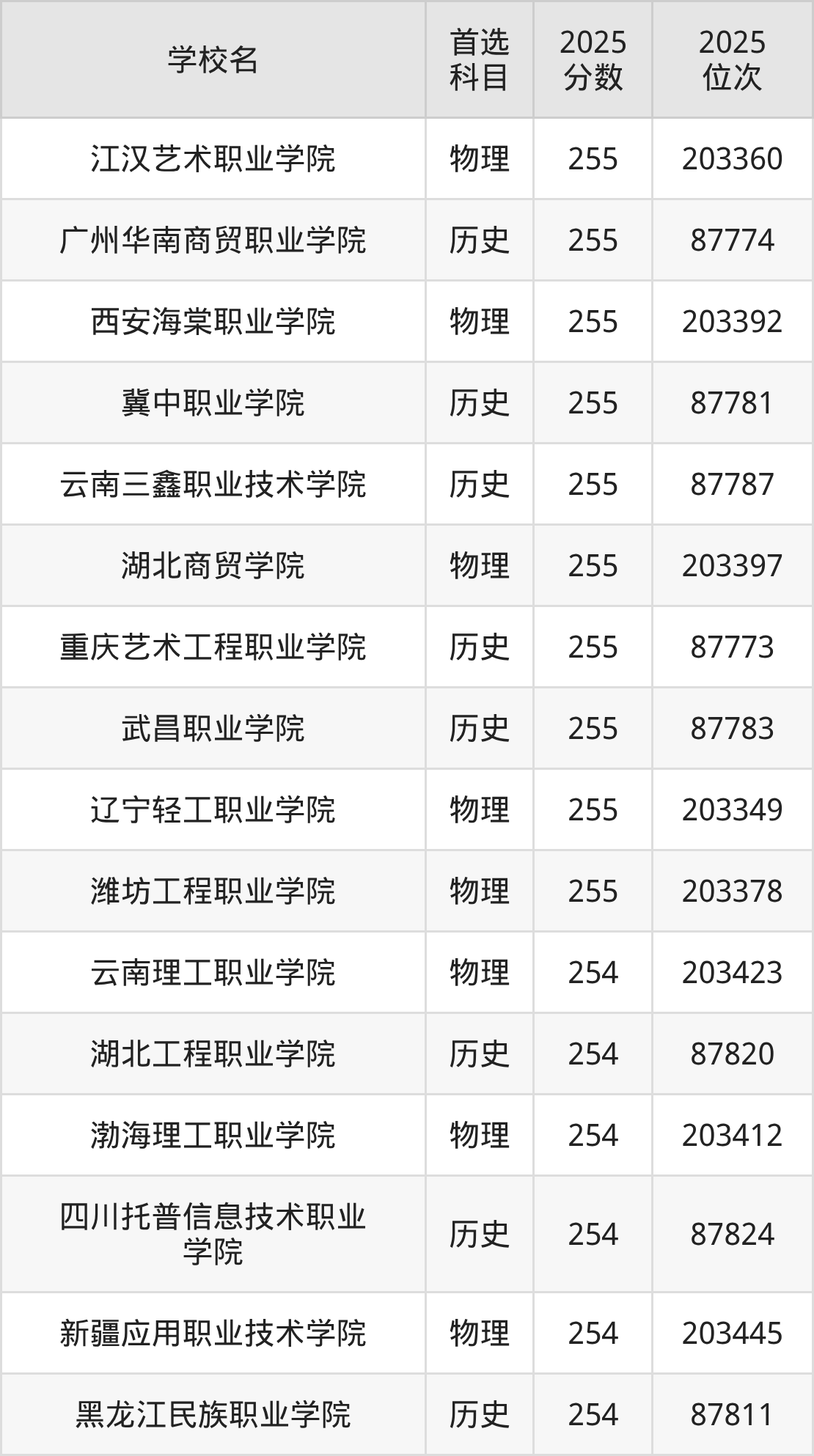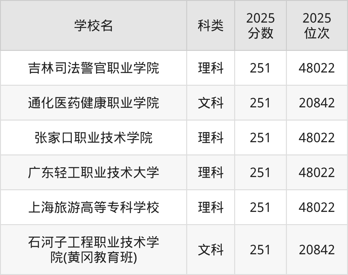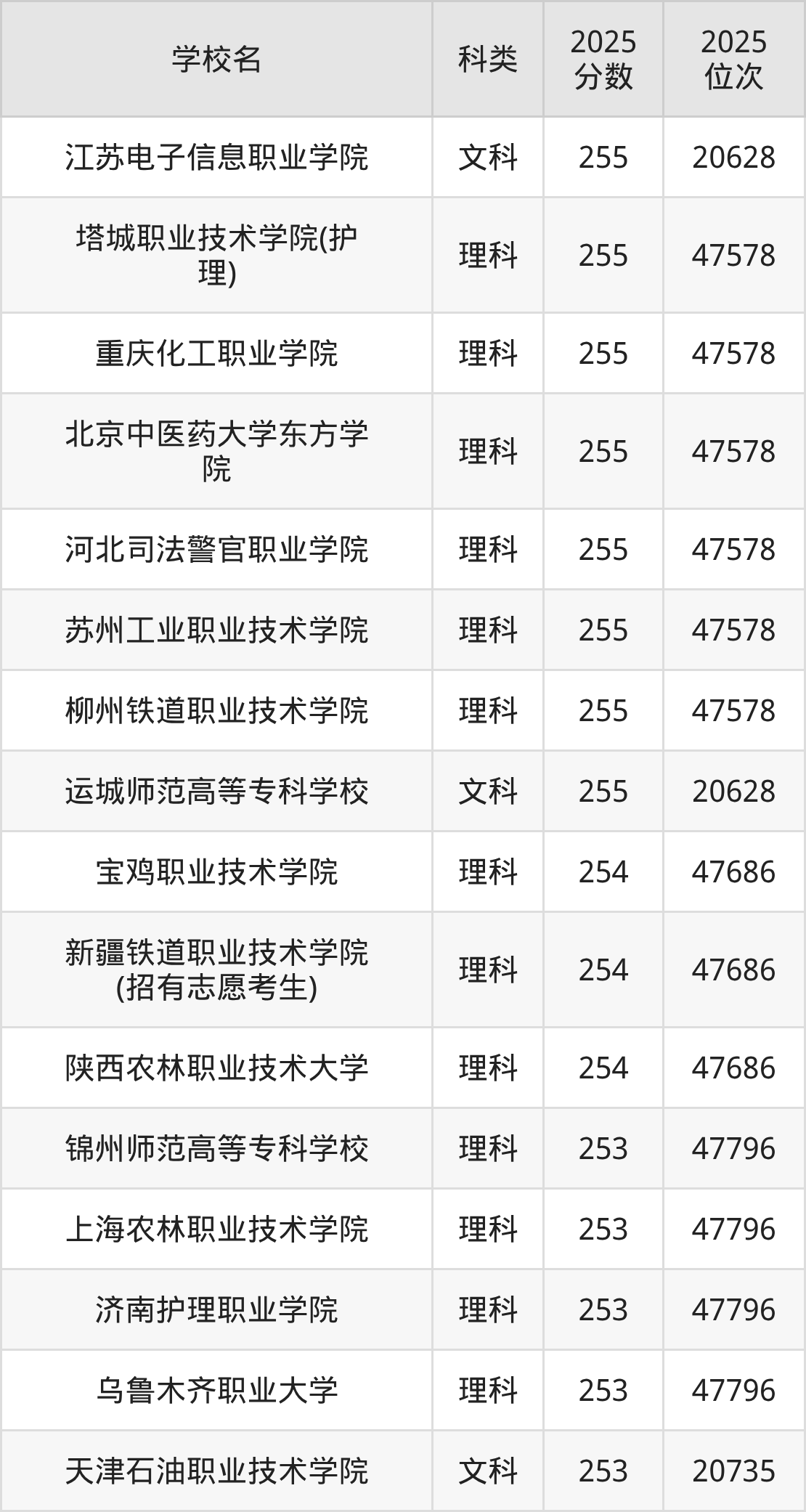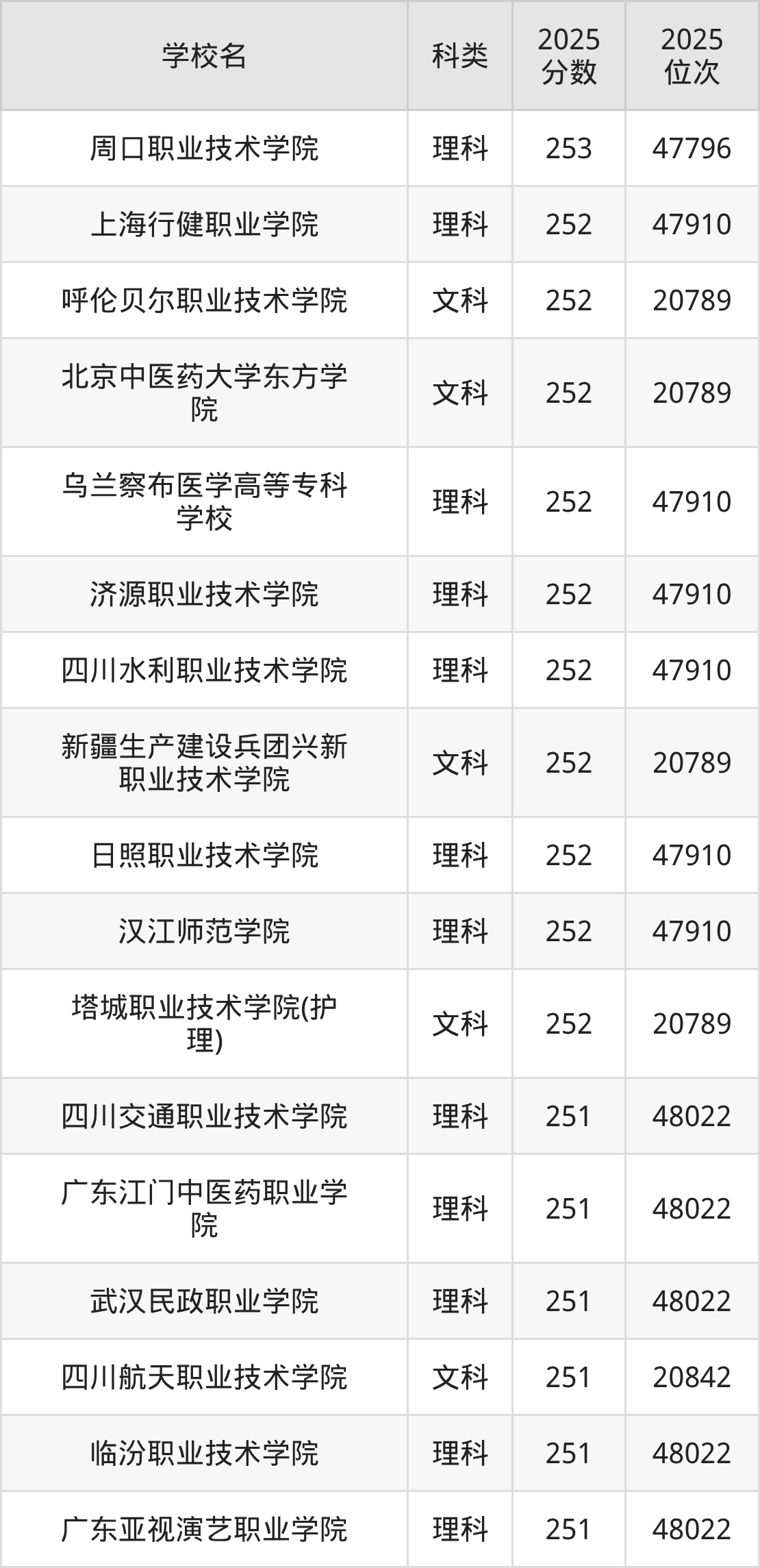 下面老师将以上文整理的其中两个省份为例,为大家具体展示253分左右能上的专科大学名单。