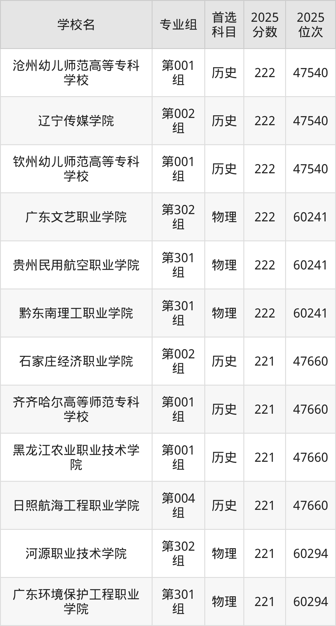 下面老师将以上文整理的其中两个省份为例,为大家具体展示223分左右能上的专科大学名单。