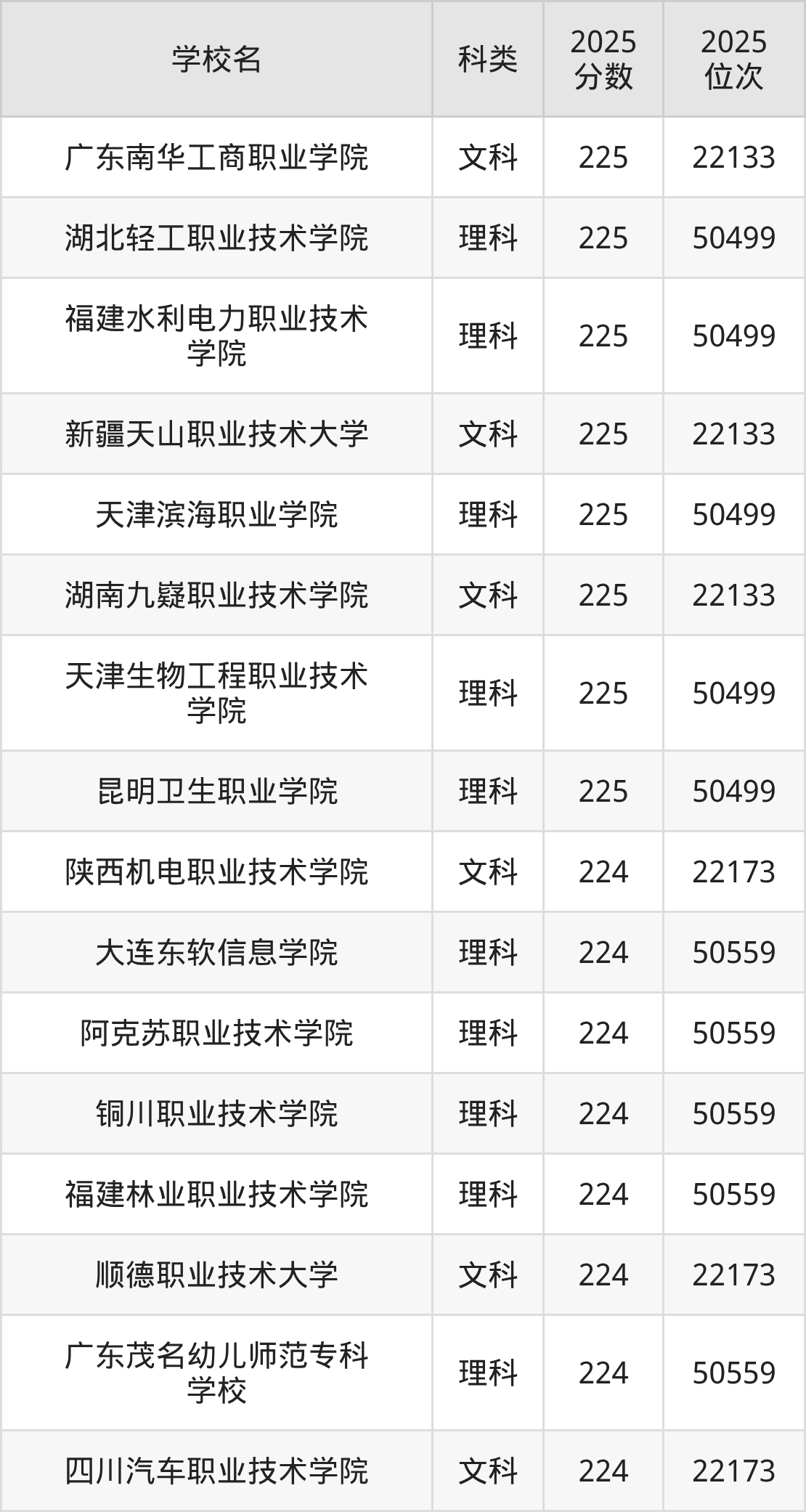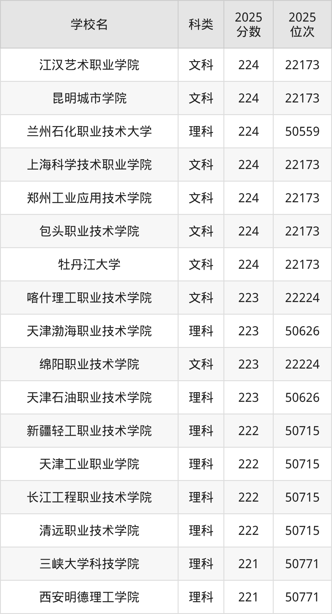二、223分左右的专科大学排名