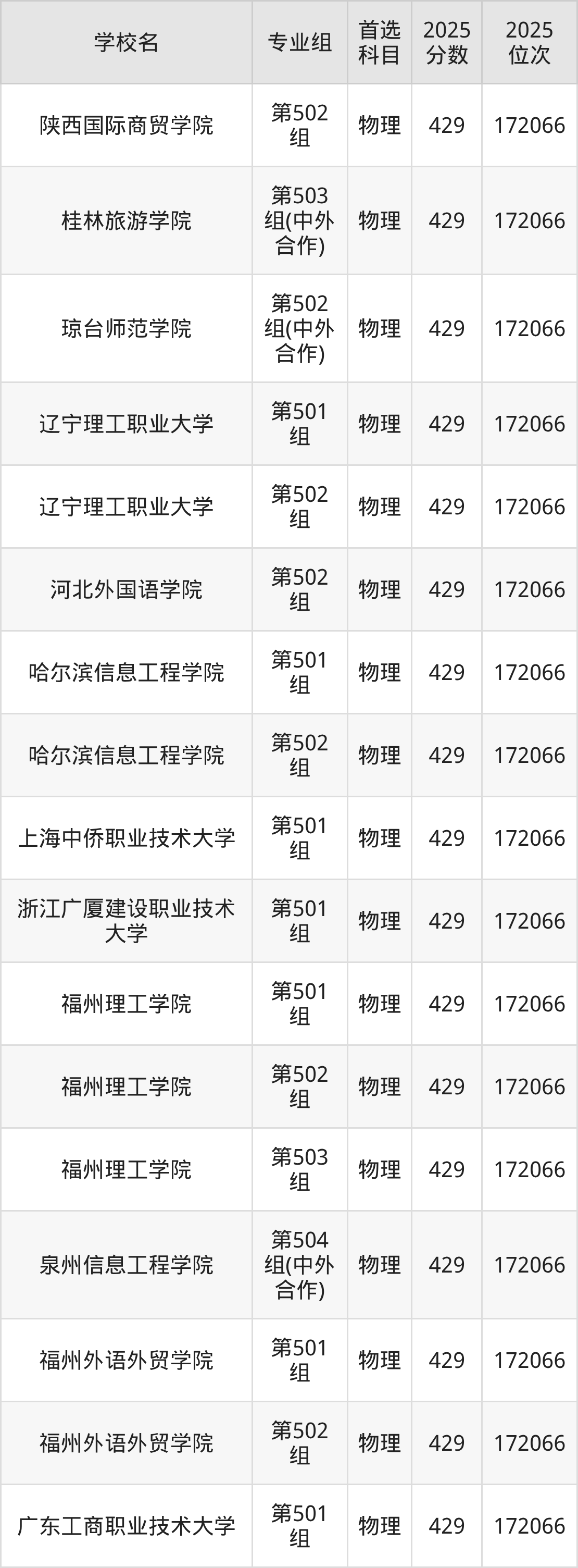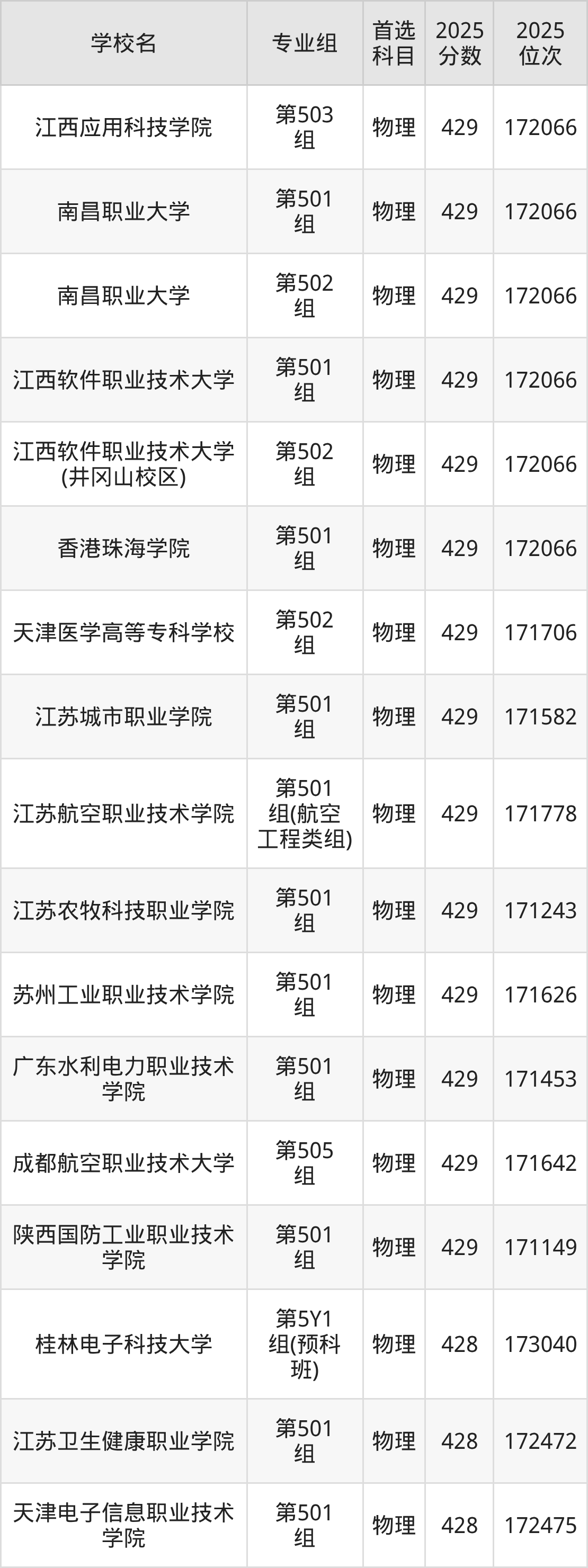 江西物理类429分对应的位次排名是171111名-172066名,因此建议2026年位次排在这附近的考生考虑这些大学。
