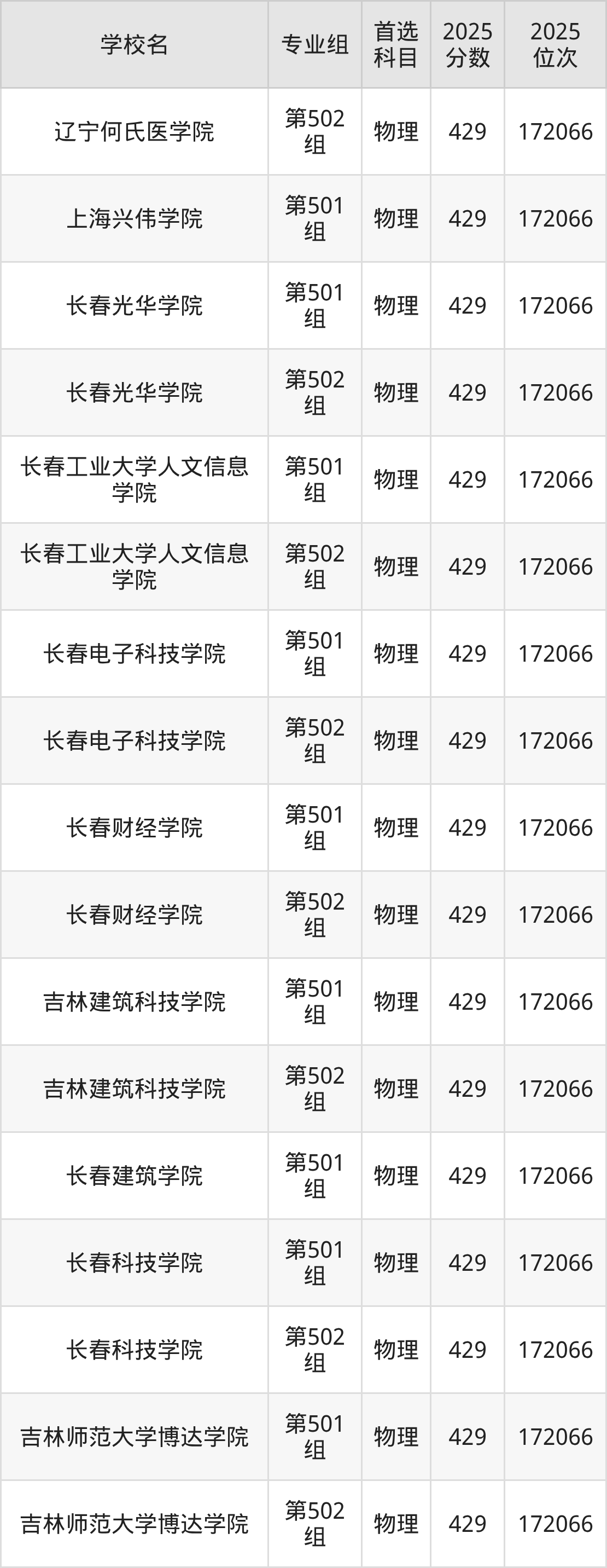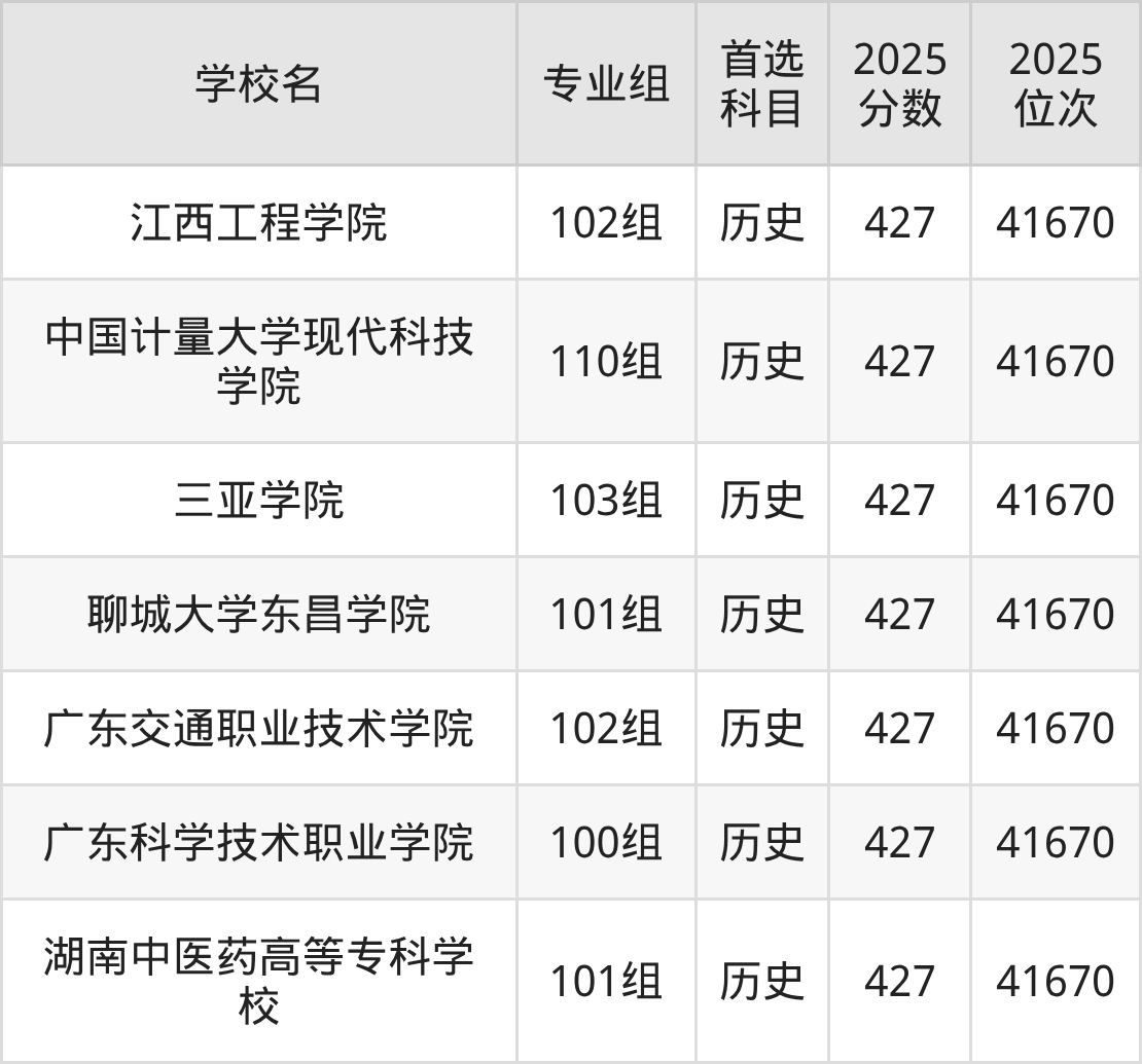 下面老师将以上文整理的其中两个省份为例,为大家具体展示429分左右能上的本科大学名单。