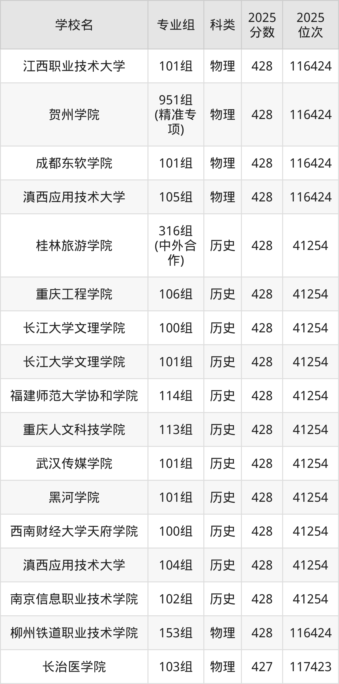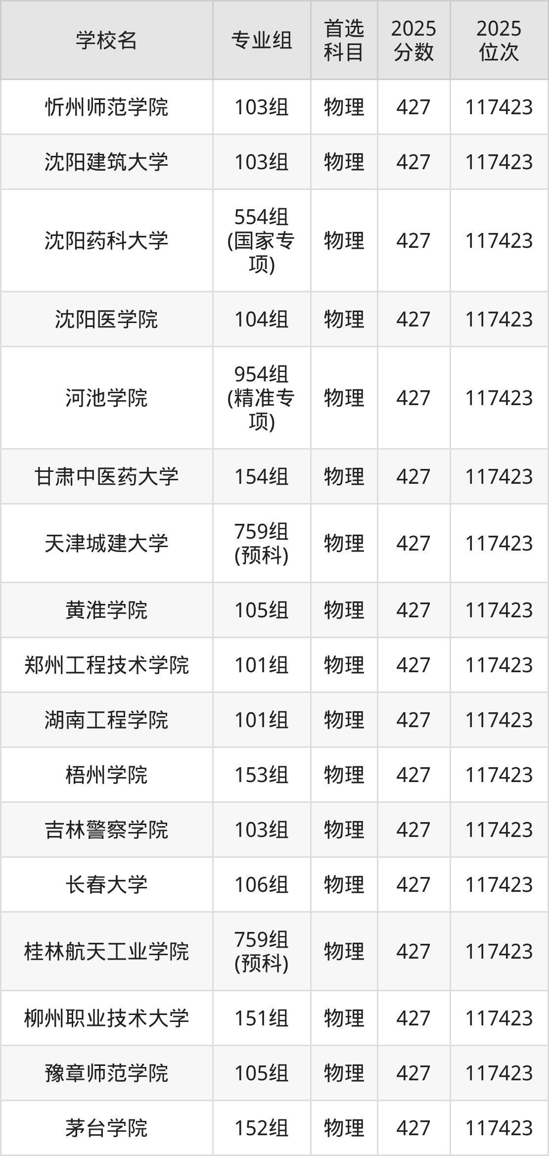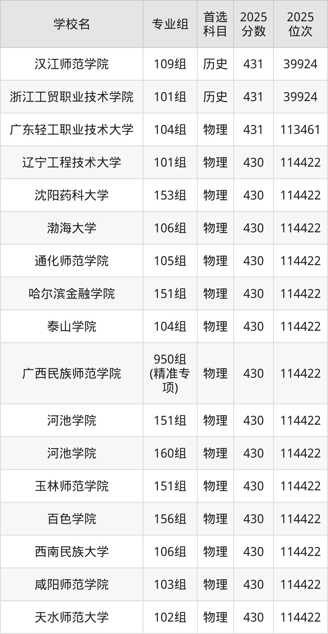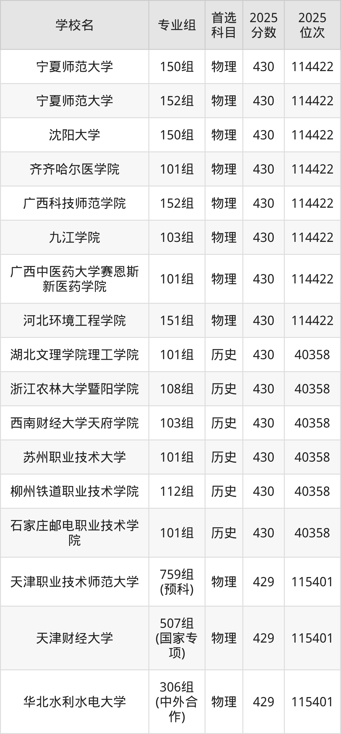 广西高考物理类429分对应的位次排名是115401名,历史类429分对应的位次排名是40781名,因此建议2026年位次排在这附近的同学考虑这些大学。