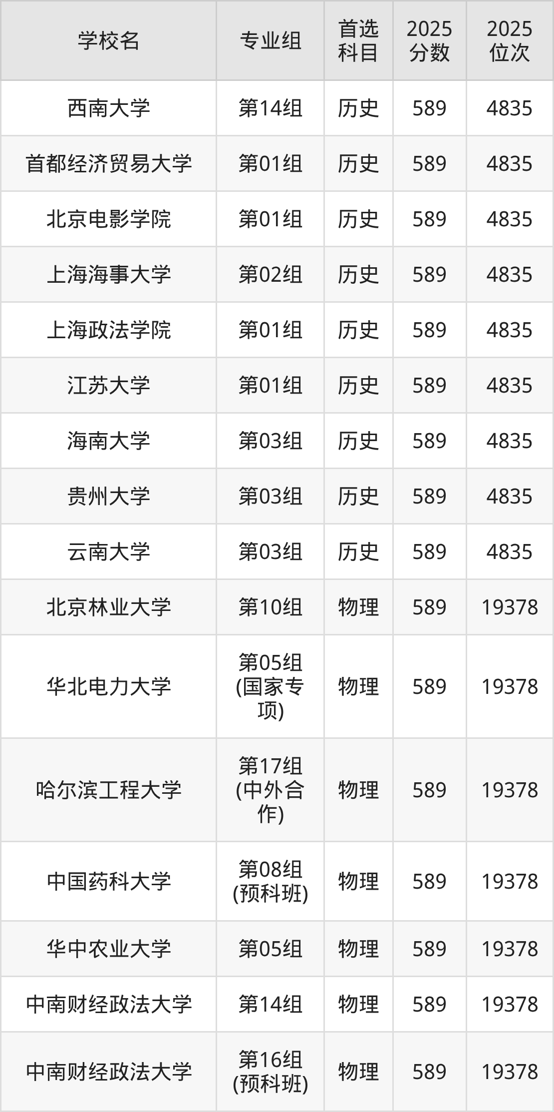 物理类587分可以冲的大学:北京林业大学589分、华北电力大学589分、哈尔滨工程大学589分、中国药科大学589分等;较稳妥的大学:北京交通大学586分、北京外国语大学586分、中央民族大学586分、南京农业大学586分等。