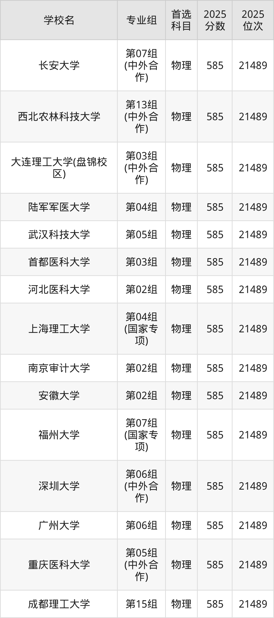 物理类587分可以冲的大学:山东第一医科大学589分、南京农业大学589分、西南石油大学589分、陆军军医大学589分等;较稳妥的大学:北京建筑大学586分、西南大学586分、上海戏剧学院586分、上海海关学院586分等。