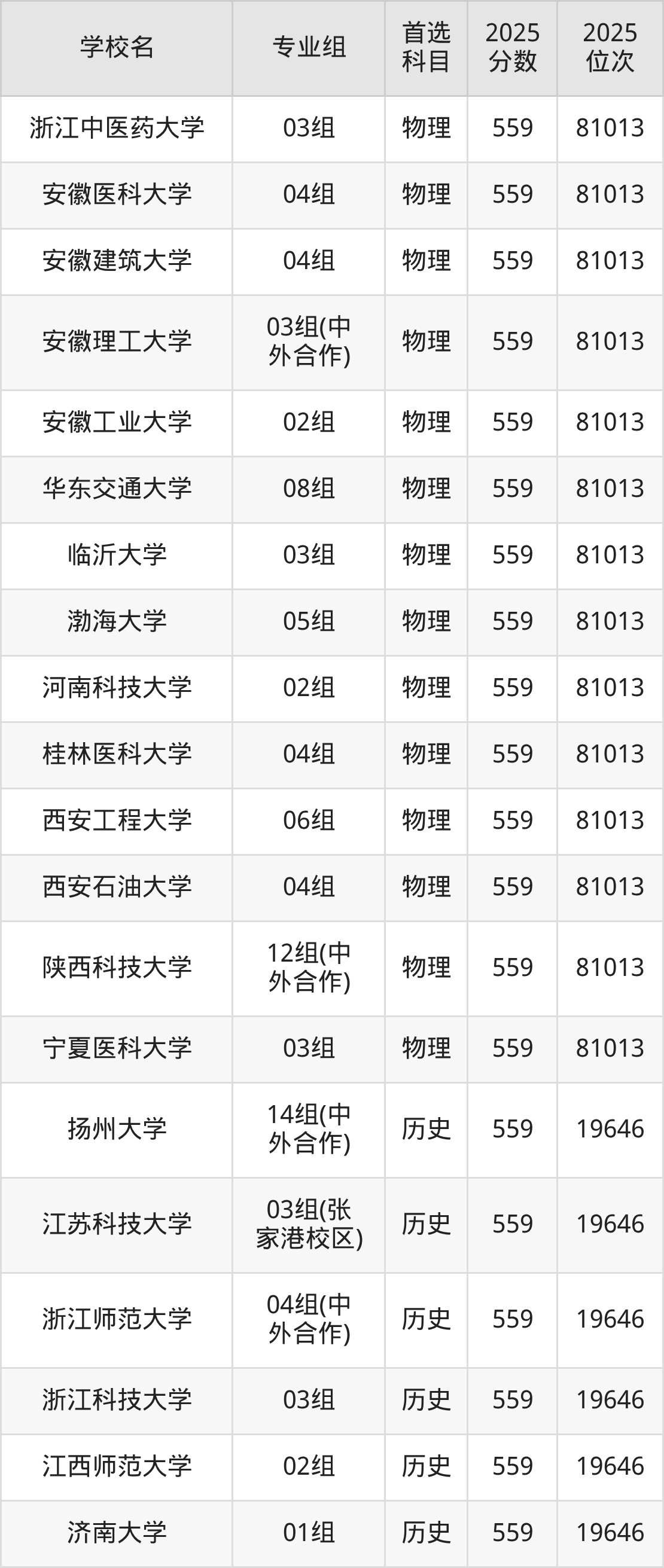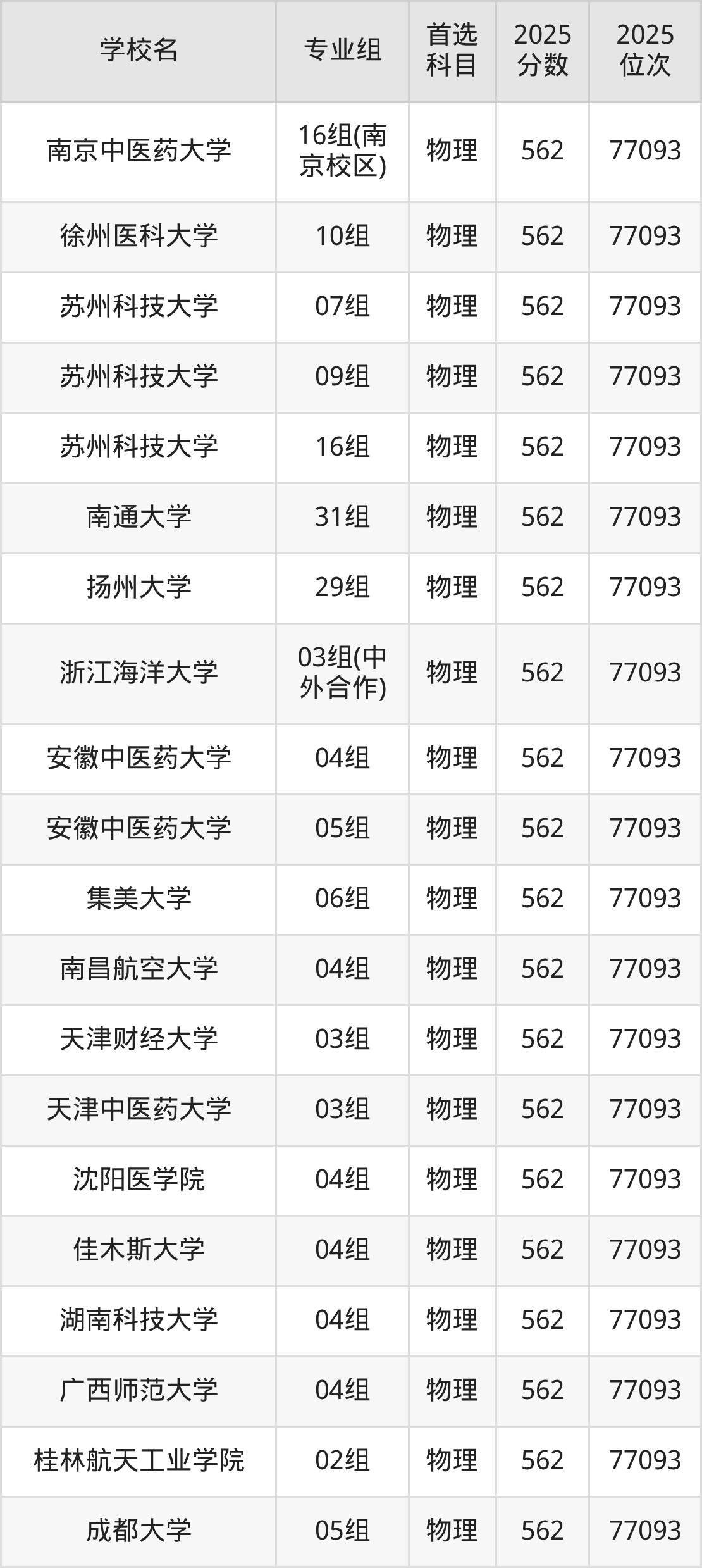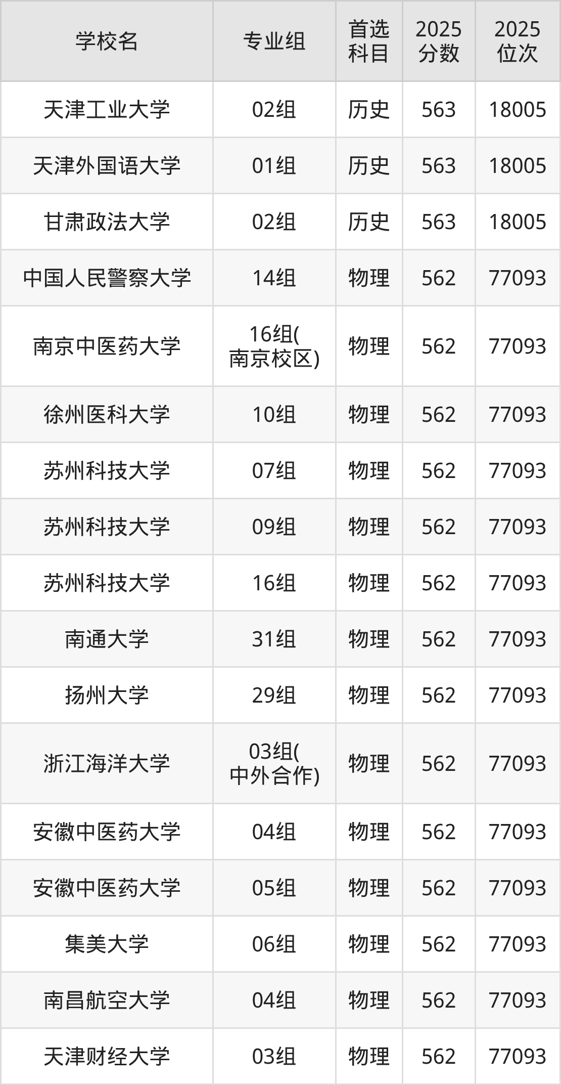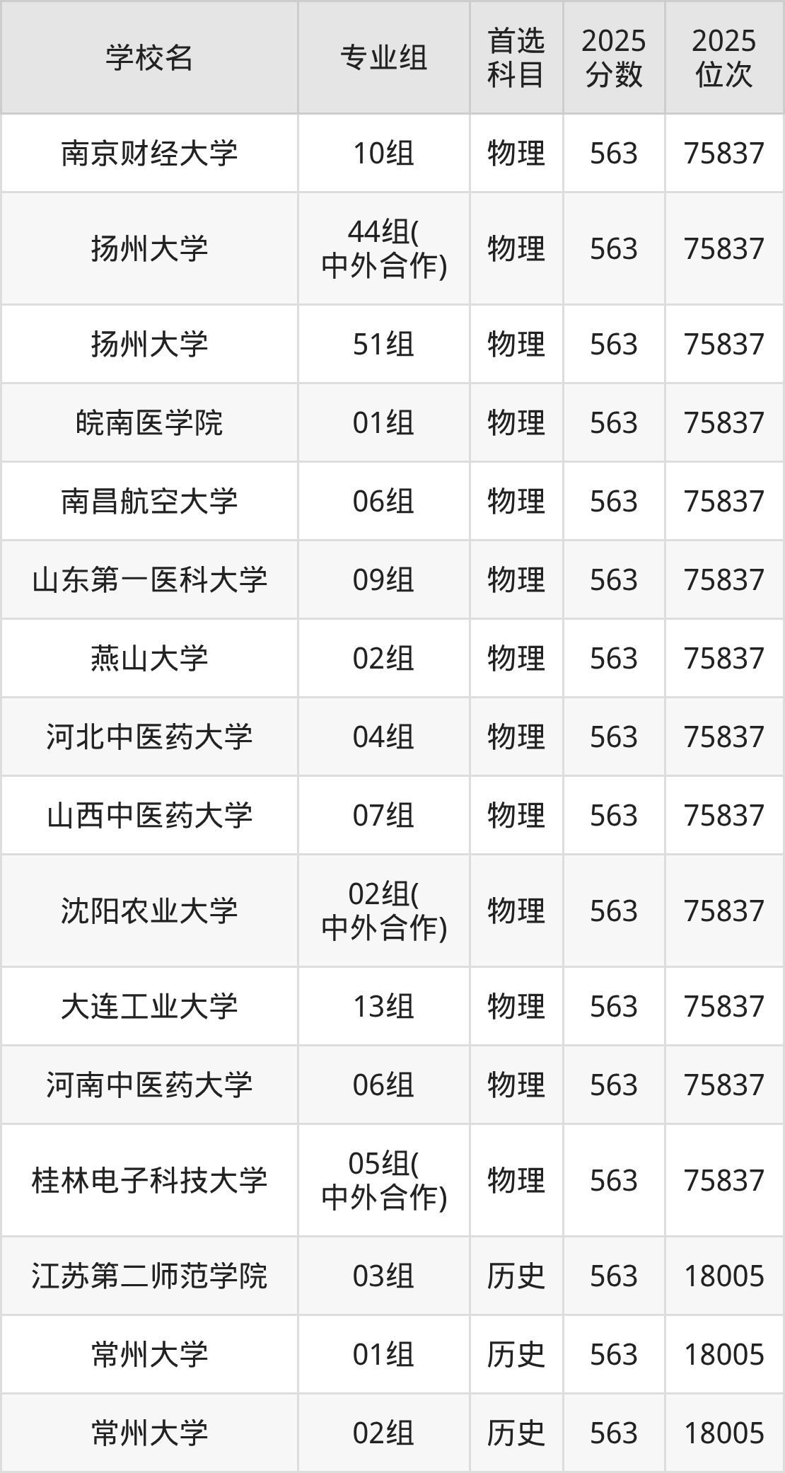江苏高考物理类561分对应的位次排名是78396名,历史类561分对应的位次排名是18813名,因此建议2026年位次排在这附近的同学考虑这些大学。