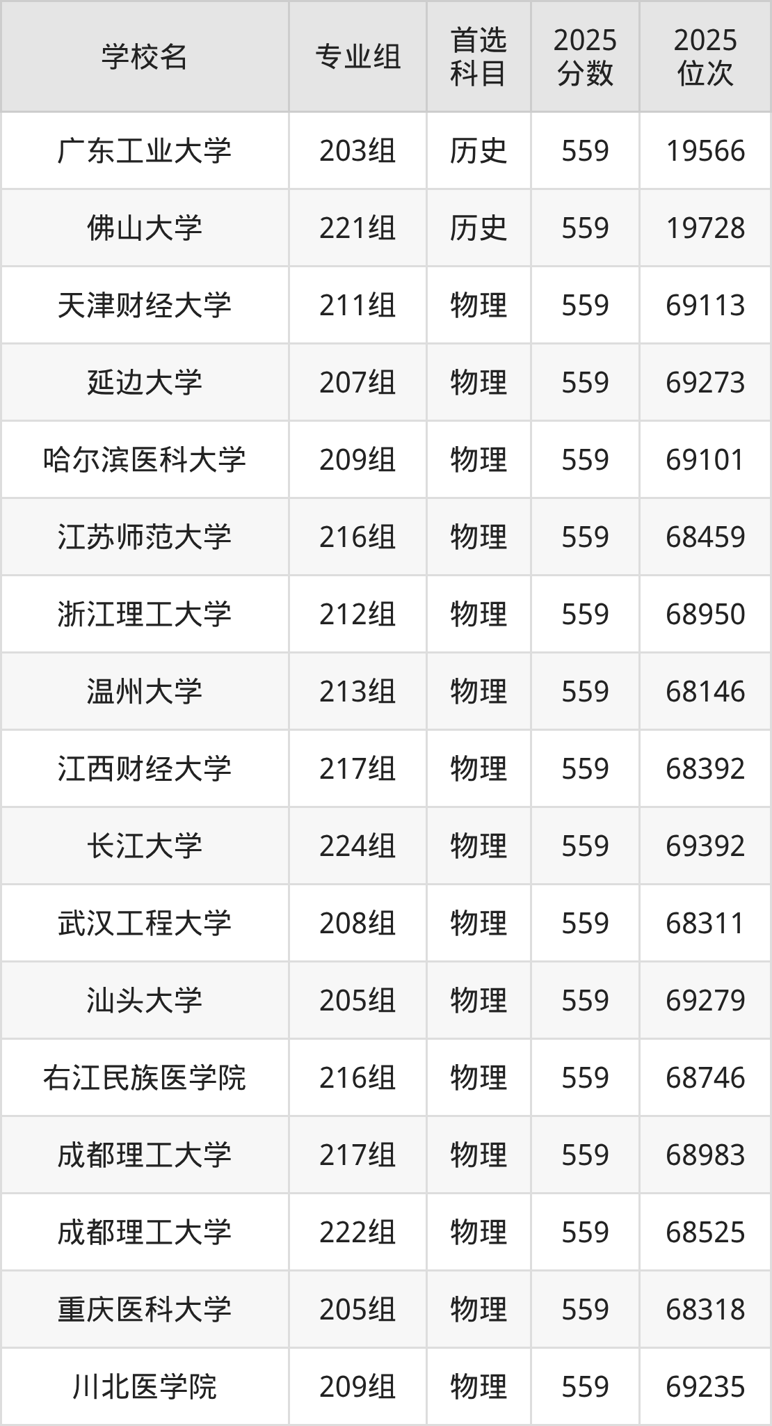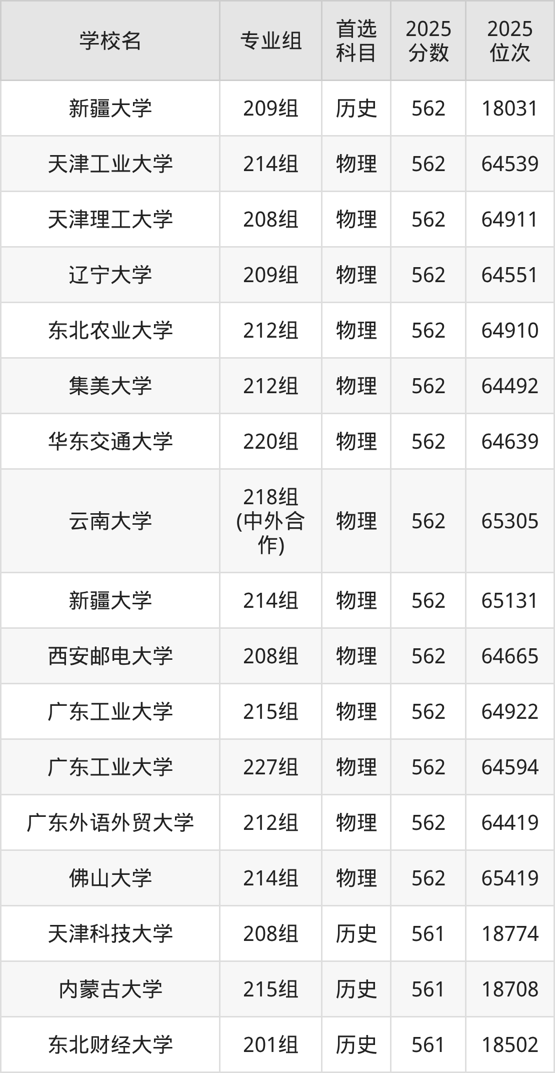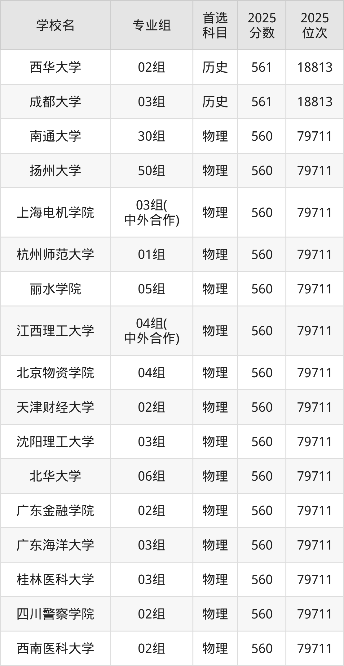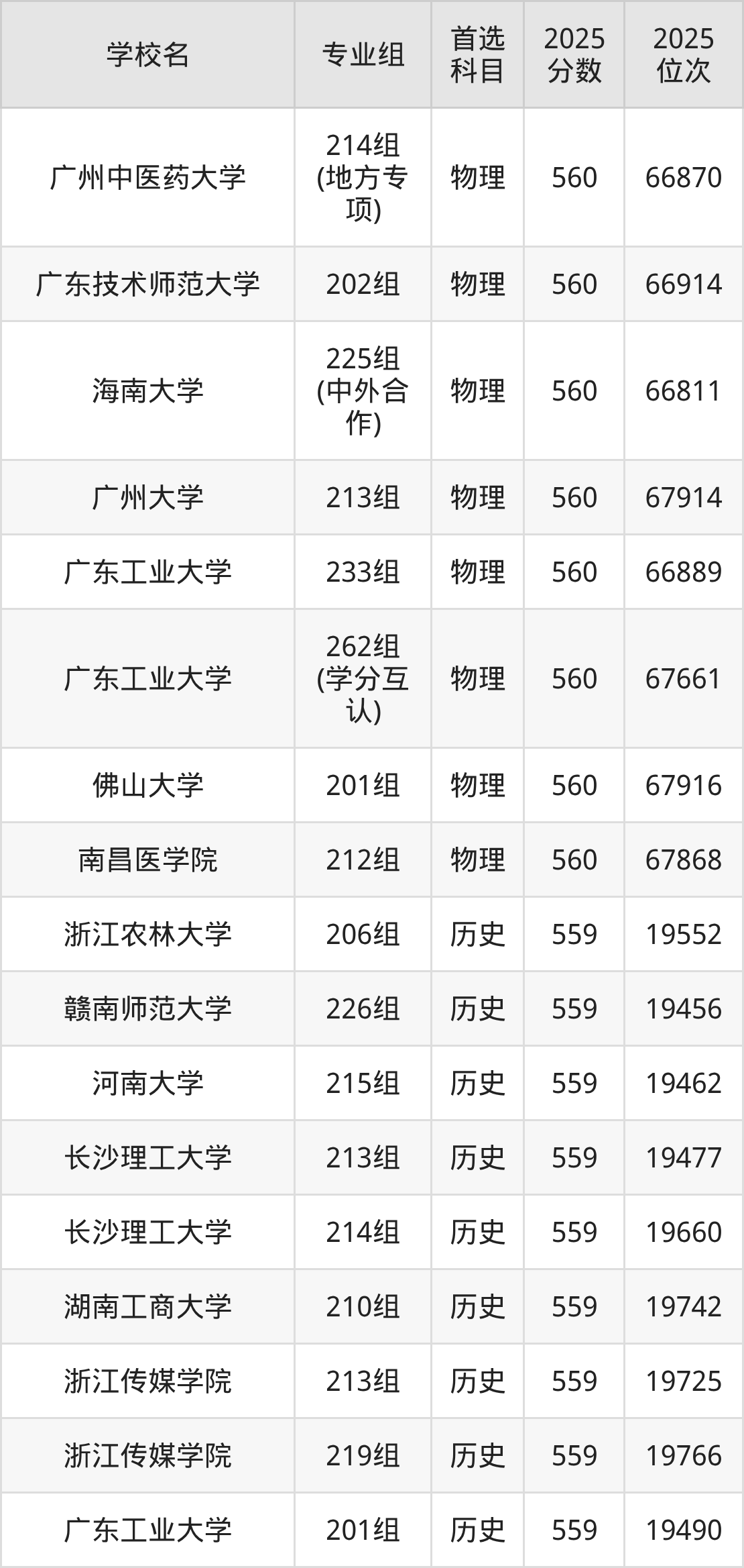 广东高考历史类561分对应的位次排名是18443名-18880名,物理类561分对应的位次排名是65570名-66678名,因此建议2026年位次排在这附近的同学考虑这些大学。