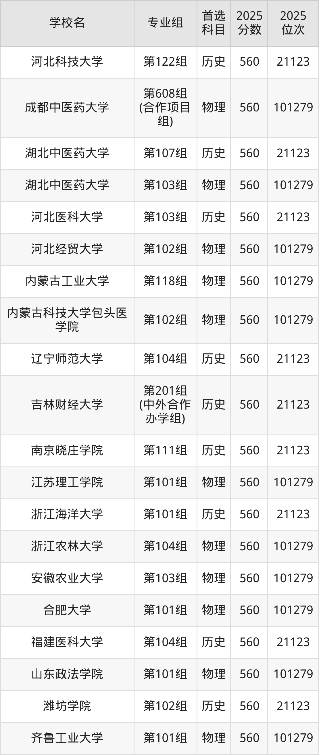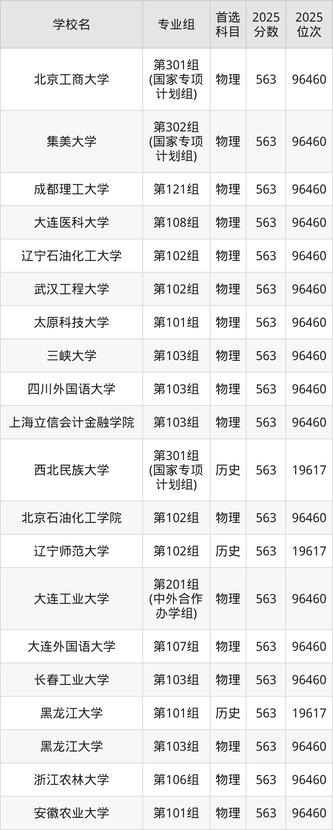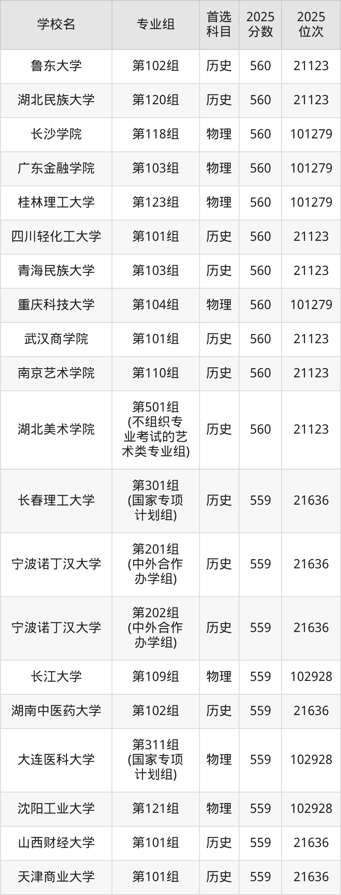 历史类561分可以冲的大学:西北民族大学563分、辽宁师范大学563分、黑龙江大学563分、湖北师范大学563分等;较稳妥的大学:长春理工大学560分、北方工业大学560分、河北科技大学560分、湖北中医药大学560分等。