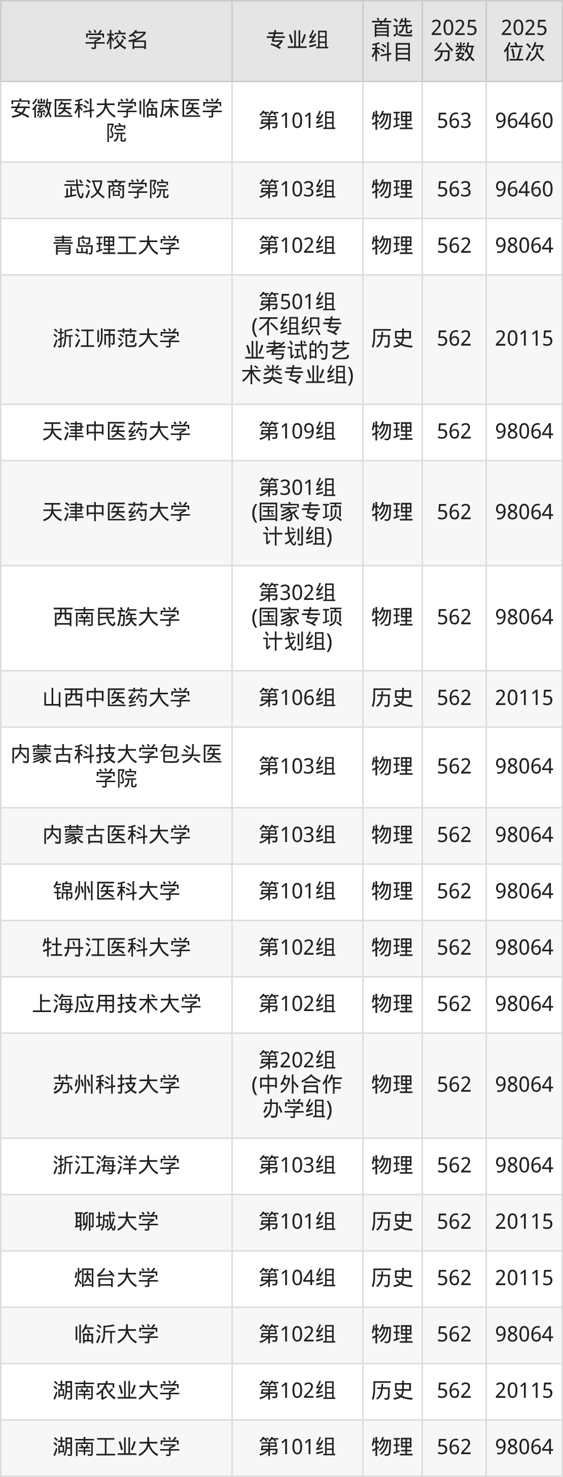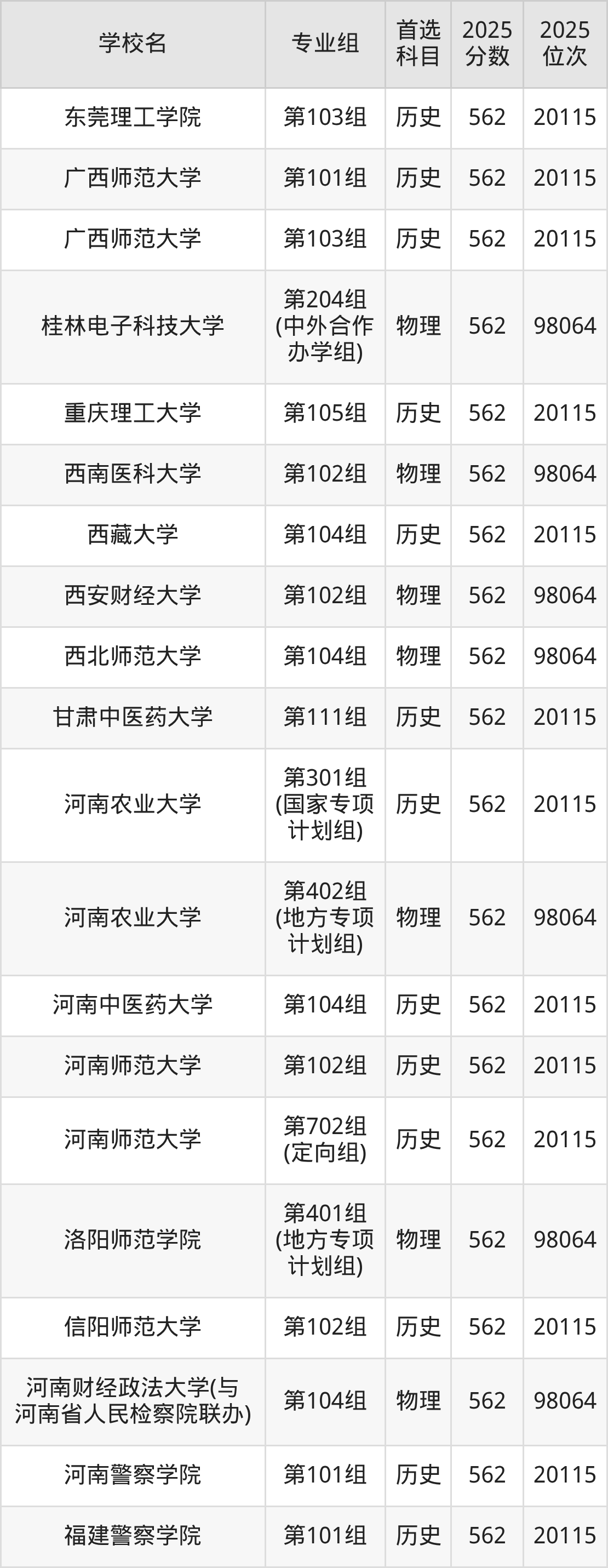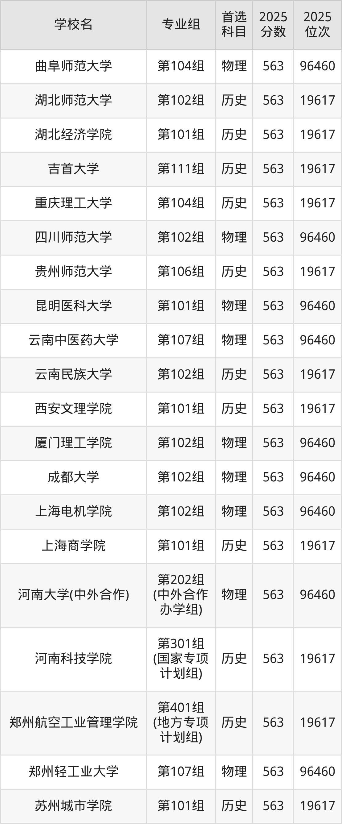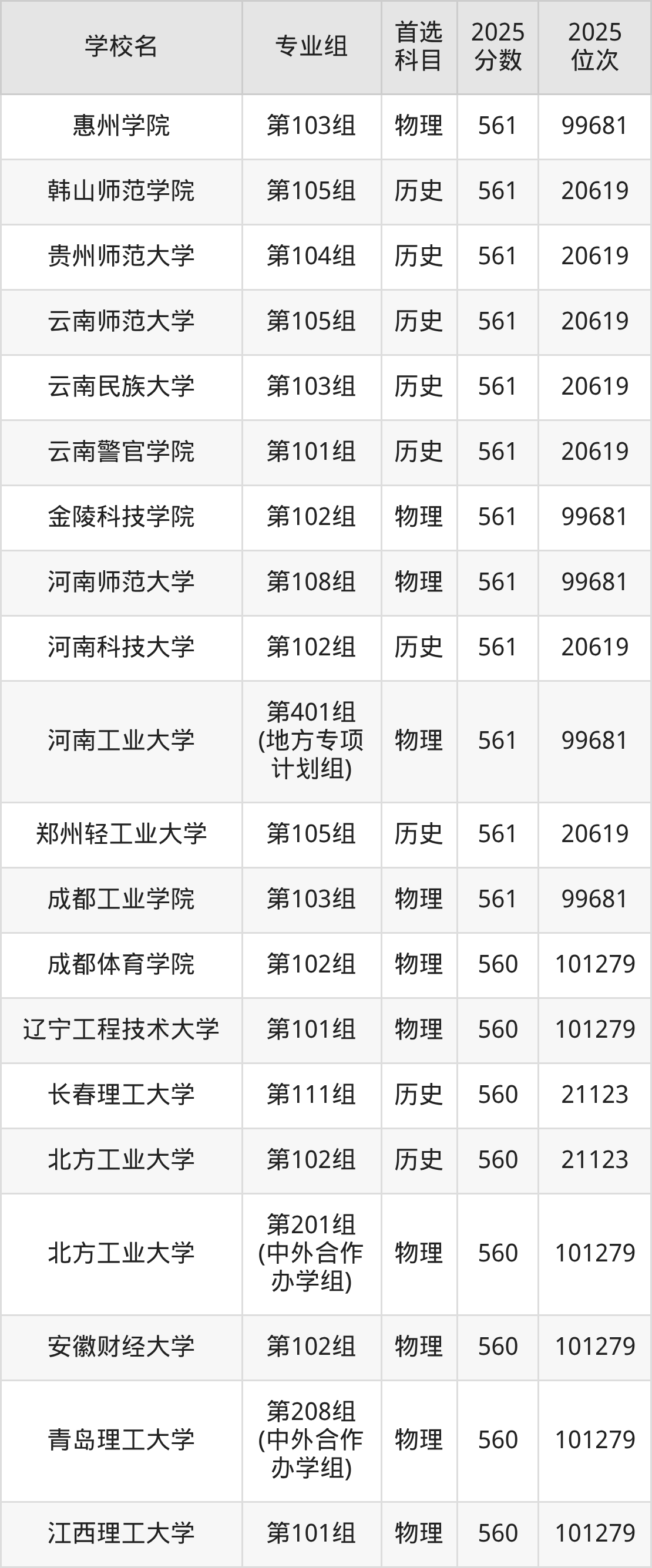 河南高考物理类561分对应的位次排名是99681名,历史类561分对应的位次排名是20619名,因此建议2026年位次排在这附近的同学考虑这些大学。