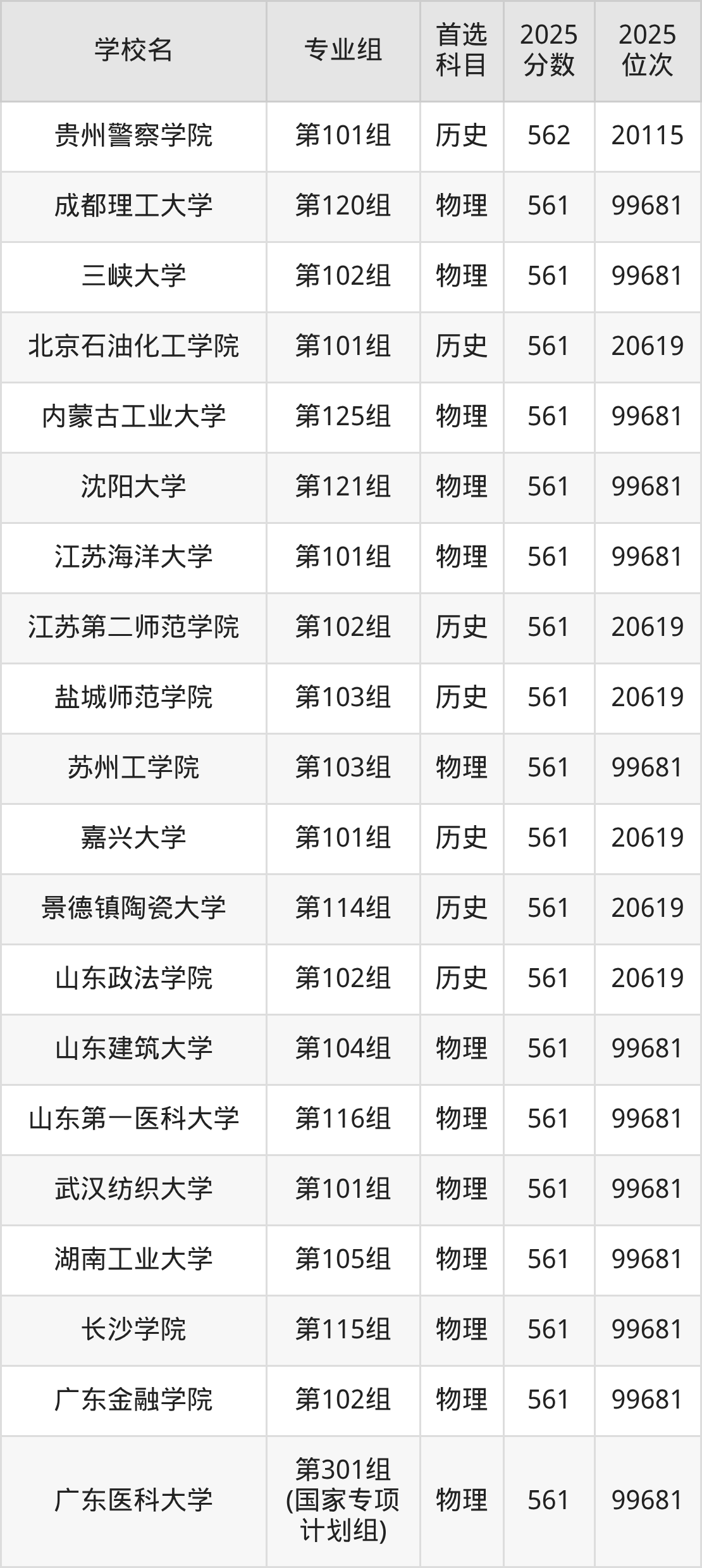 下面老师将以上文整理的其中两个省份为例,为大家具体展示561分左右能上的本科大学名单。