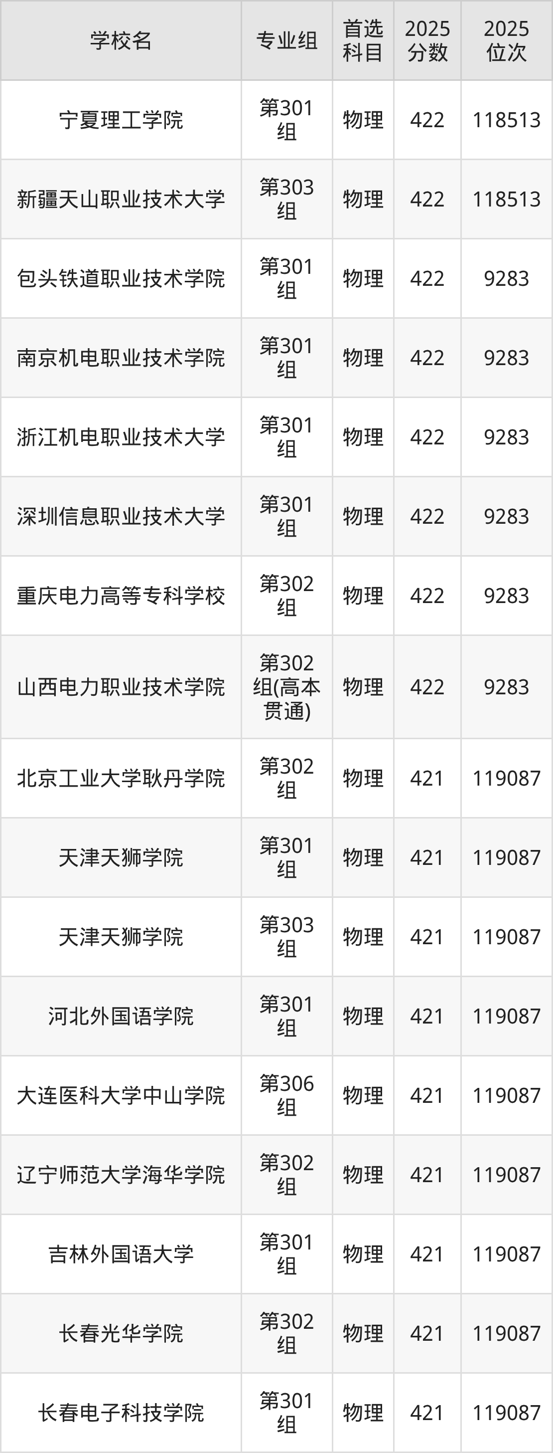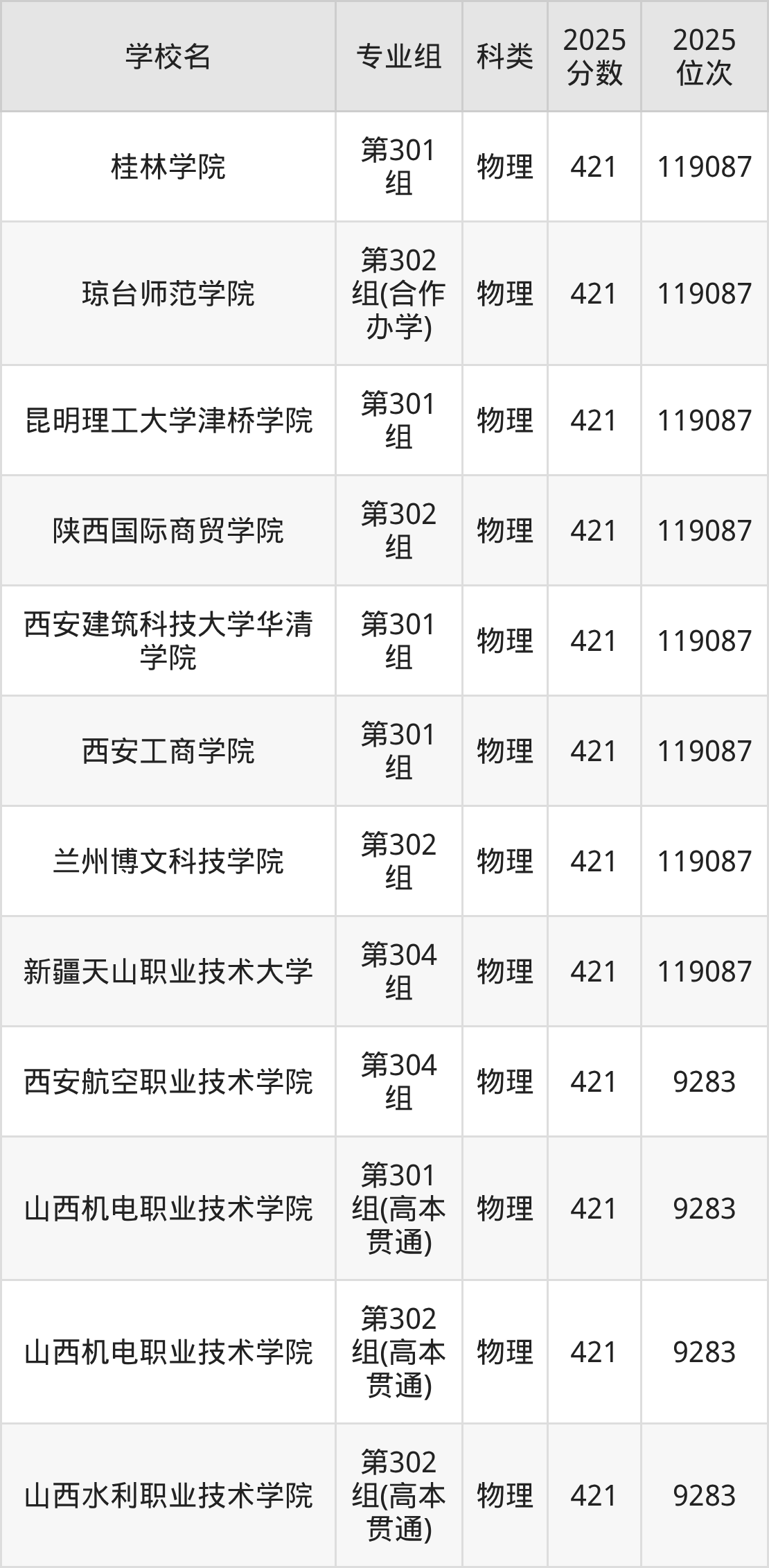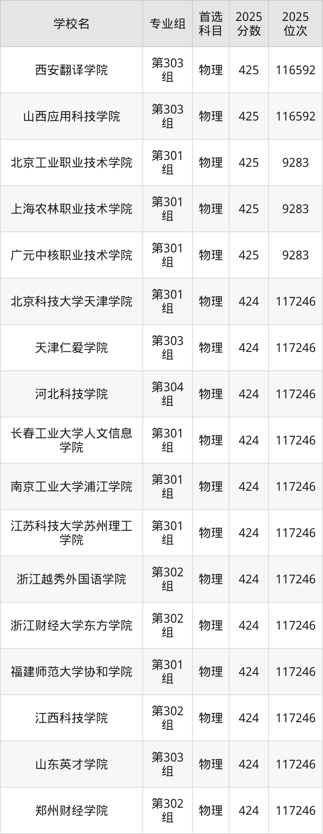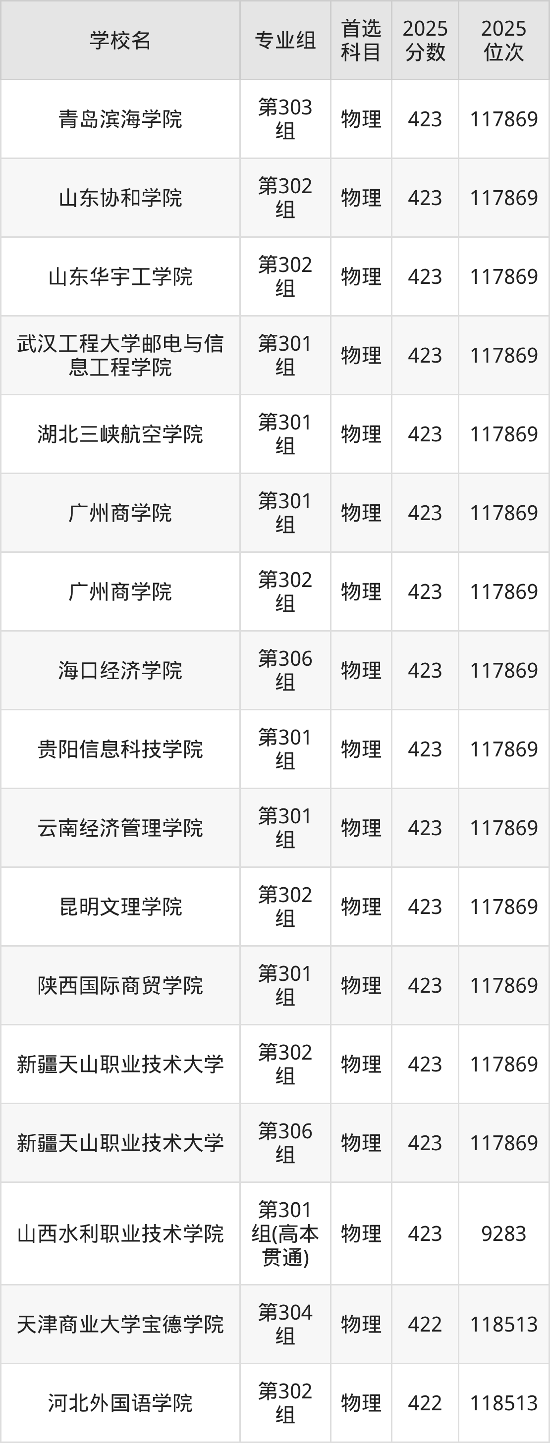山西物理类423分对应的位次排名是9283名-117869名,因此建议2026年位次排在这附近的考生考虑这些大学。