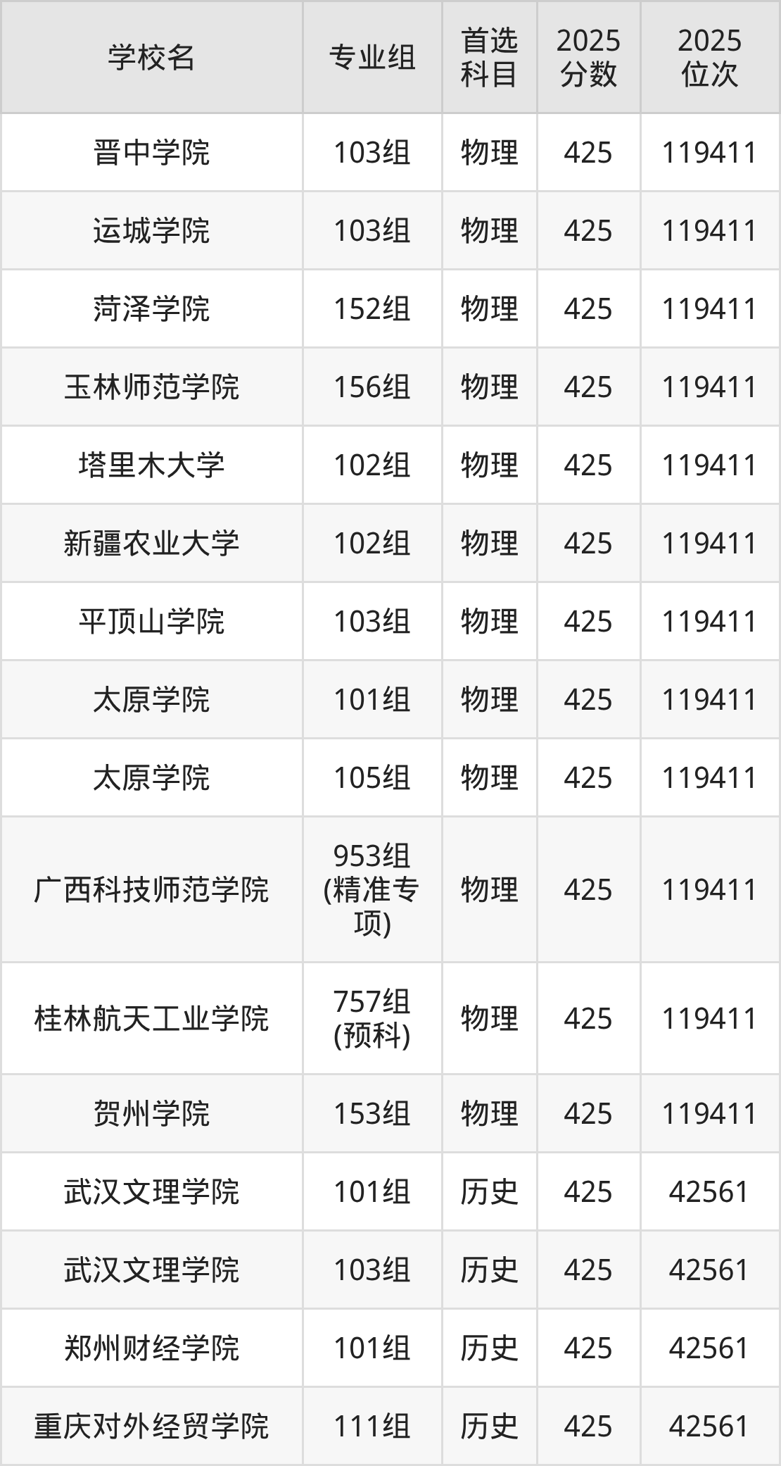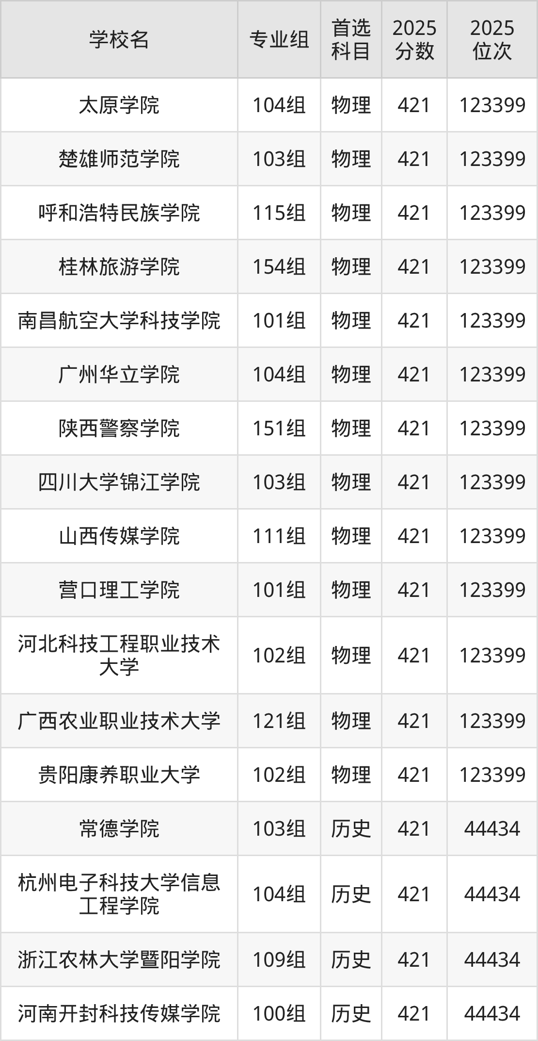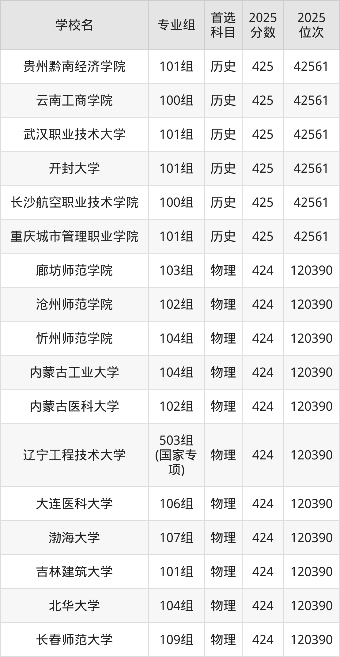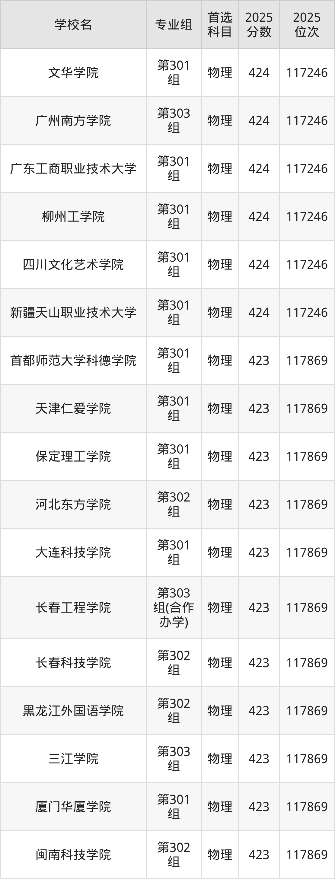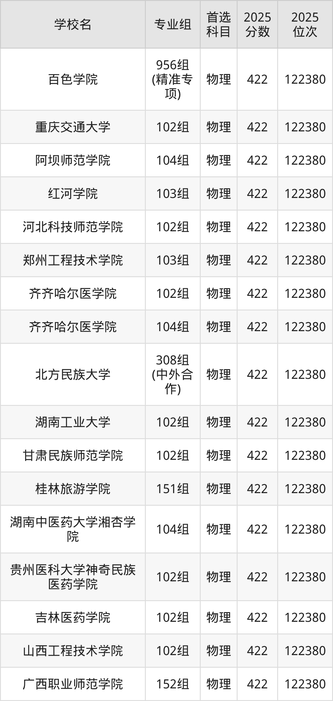 广西高考物理类423分对应的位次排名是121395名,历史类423分对应的位次排名是43477名,因此建议2026年位次排在这附近的同学考虑这些大学。