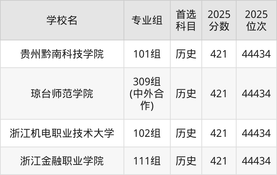 下面老师将以上文整理的其中两个省份为例,为大家具体展示423分左右能上的本科大学名单。