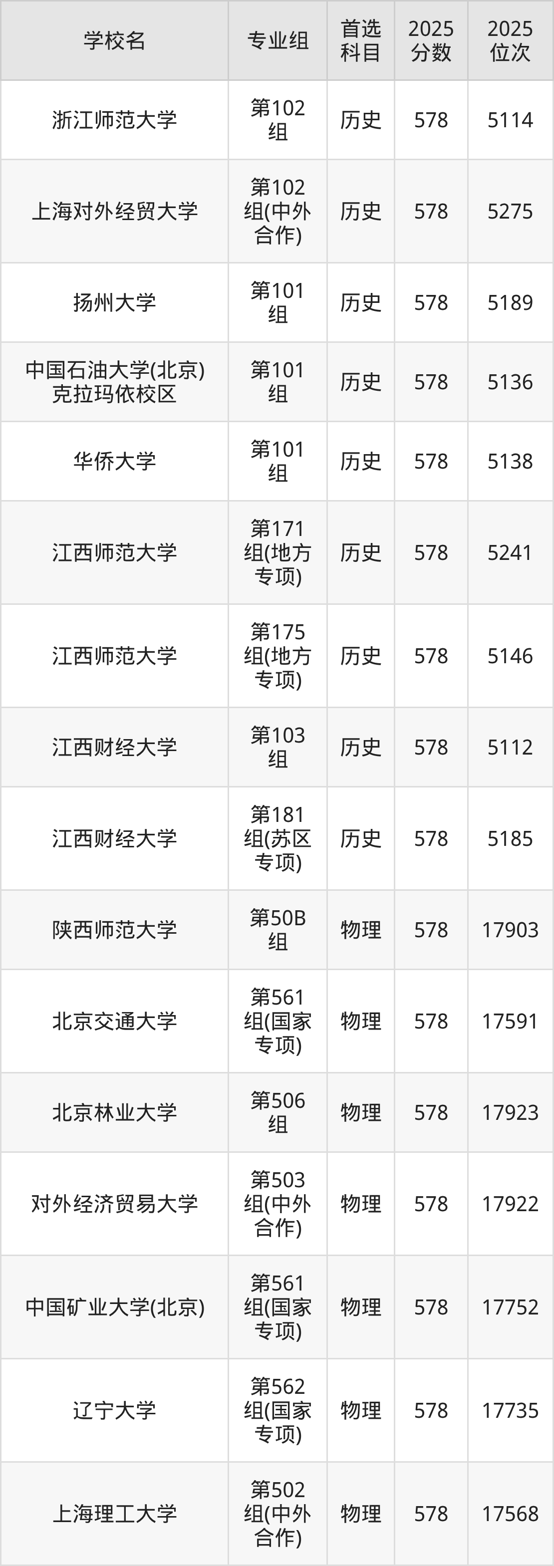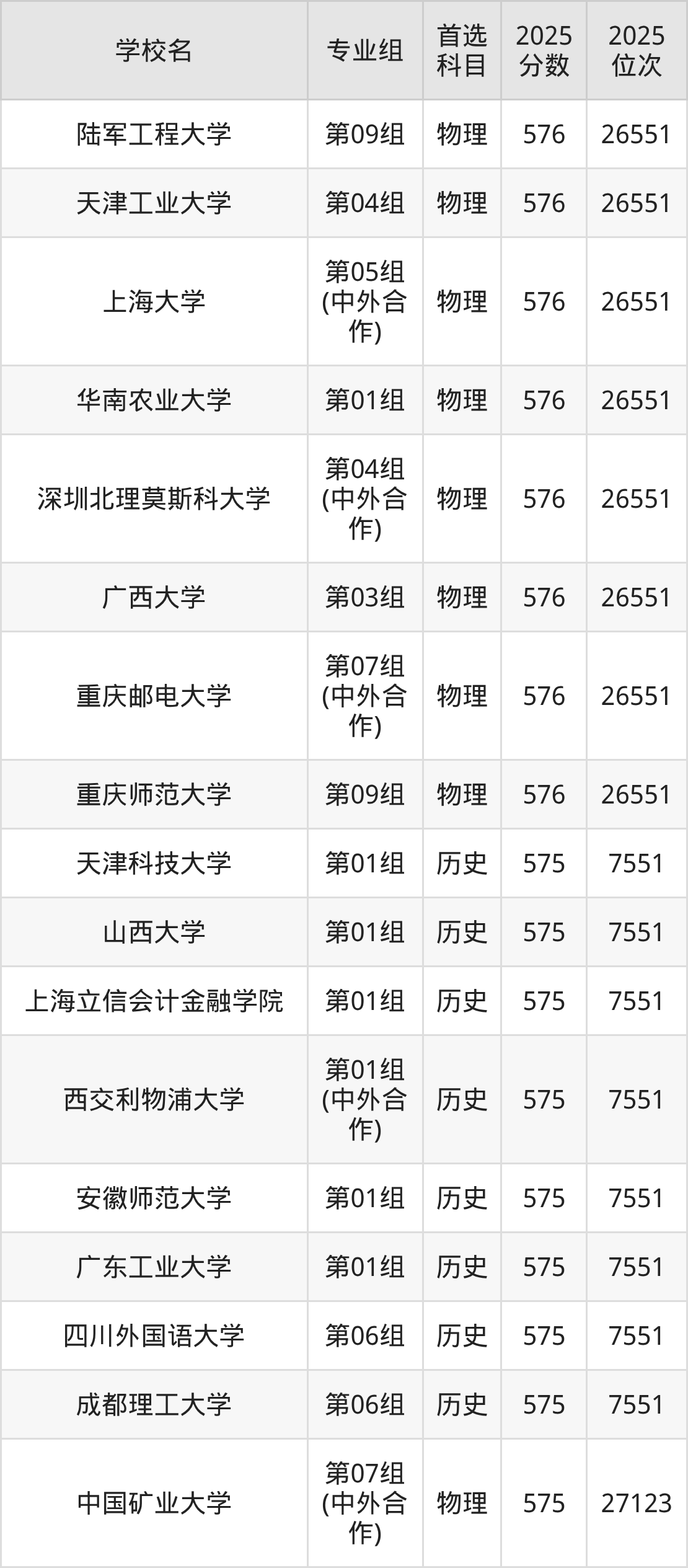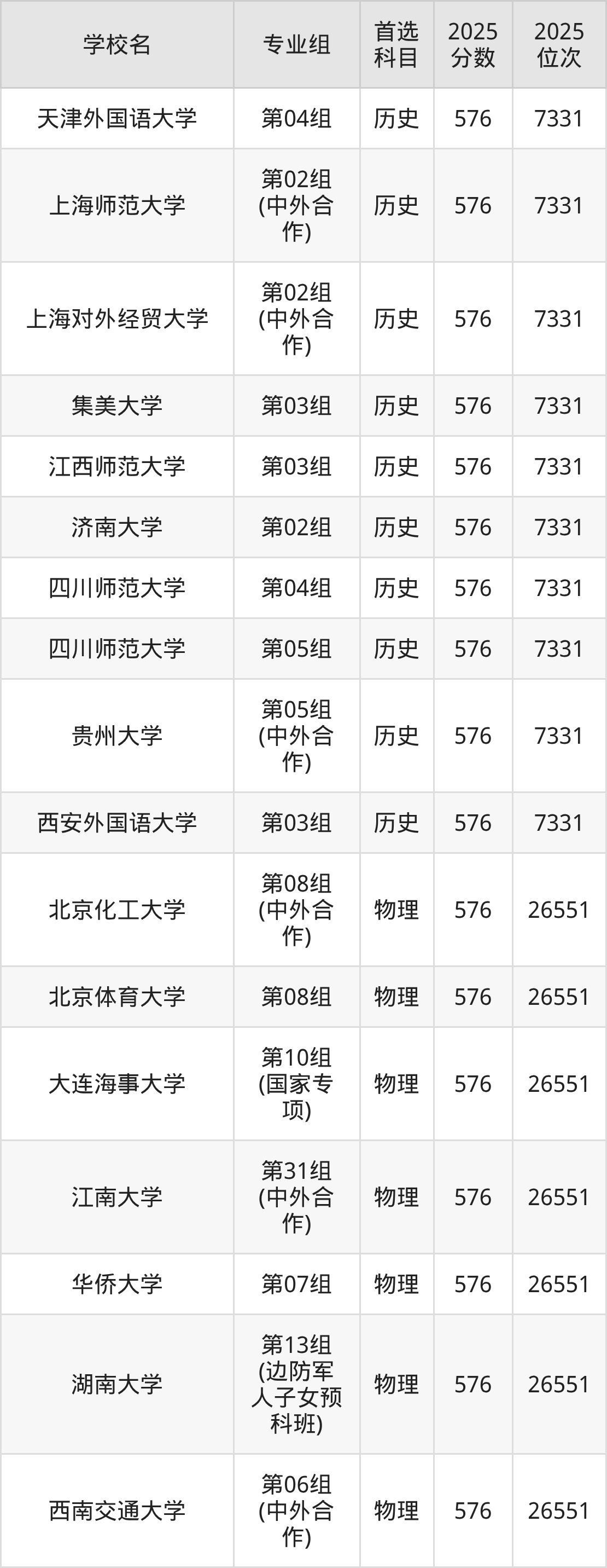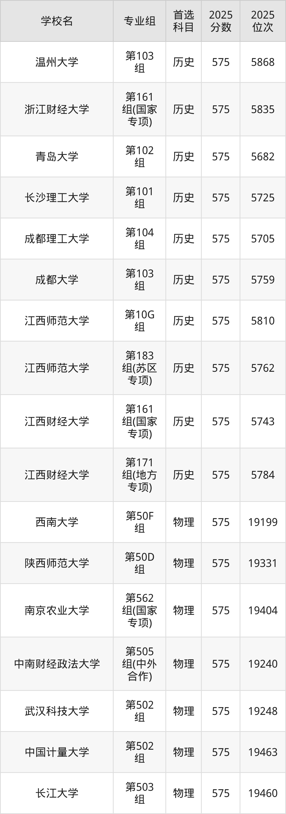 江西高考历史类576分对应的位次排名是5506名-5662名,物理类576分对应的位次排名是18551名-18950名,因此建议2026年位次排在这附近的同学考虑这些大学。