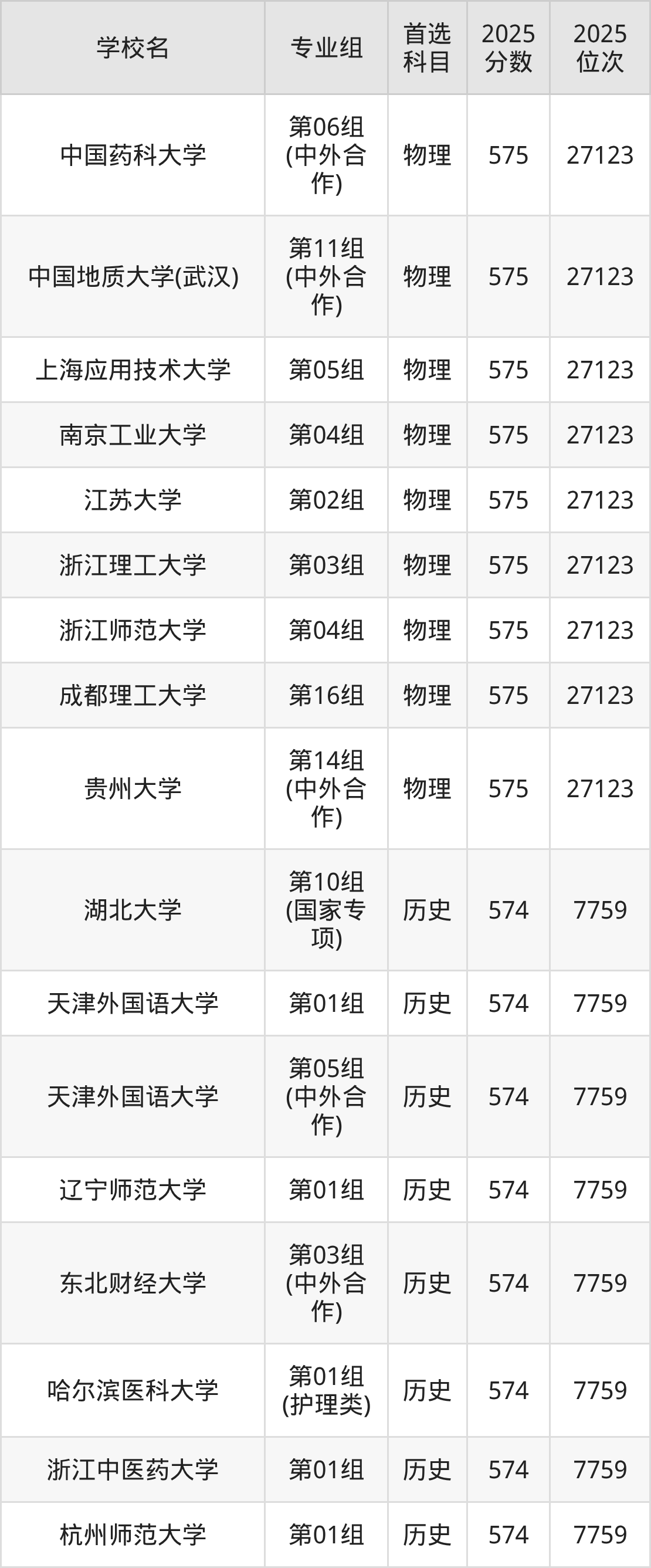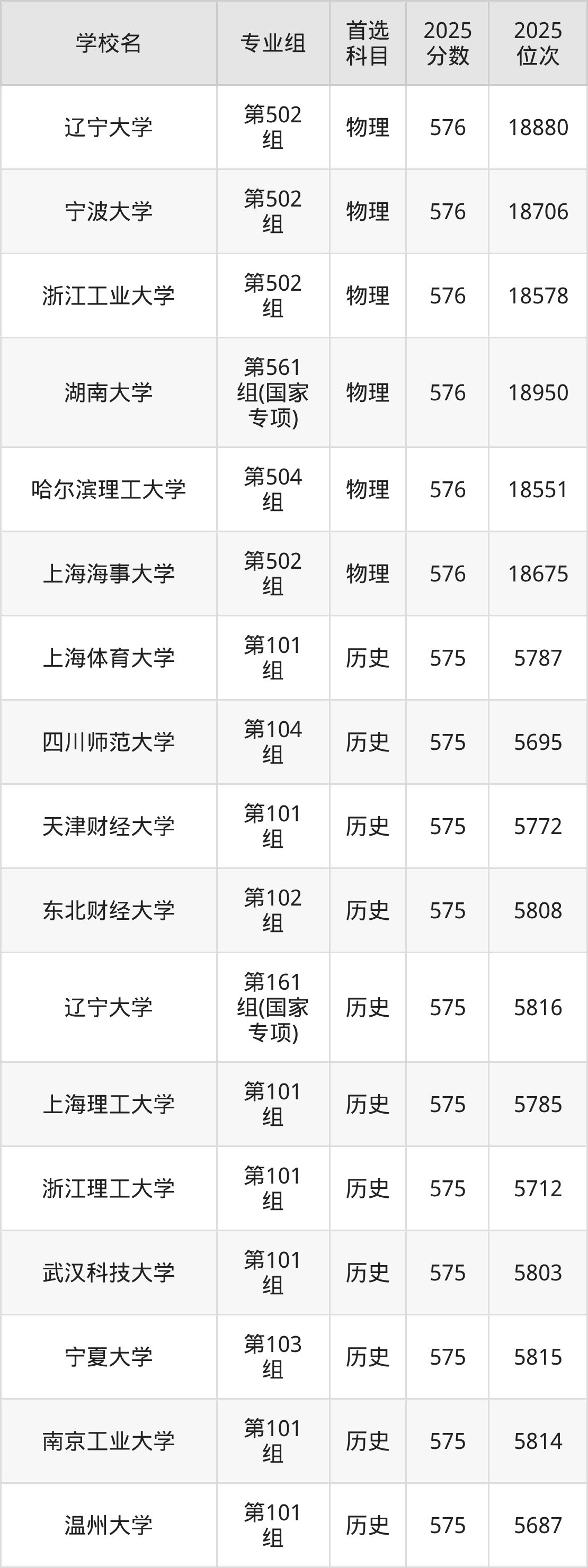 2025年在湖北高考历史类录取分数线是576分的大学有中国民航大学、湖北工业大学、中国戏曲学院、天津外国语大学、上海师范大学、上海对外经贸大学、集美大学、江西师范大学、济南大学、四川师范大学等。物理类录取分数线是576分的大学有北京化工大学、北京体育大学、大连海事大学、江南大学、华侨大学、湖南大学、西南交通大学、陆军工程大学、天津工业大学、上海大学等。