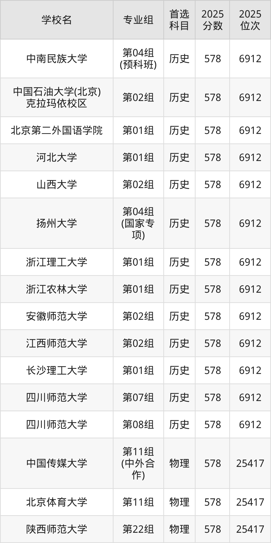历史类576分可以冲的大学:中南民族大学578分、中国石油大学(北京)克拉玛依校区578分、北京第二外国语学院578分、河北大学578分等;较稳妥的大学:天津科技大学575分、山西大学575分、上海立信会计金融学院575分、西交利物浦大学575分等。