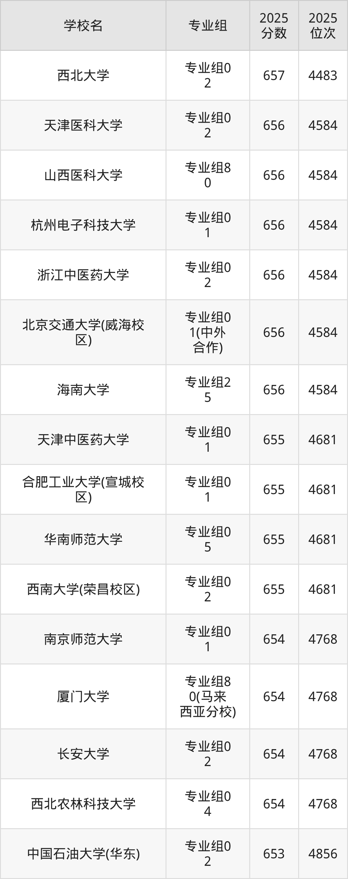 655分可以冲一冲的大学:西北大学657分、天津医科大学656分、山西医科大学656分、杭州电子科技大学656分等;