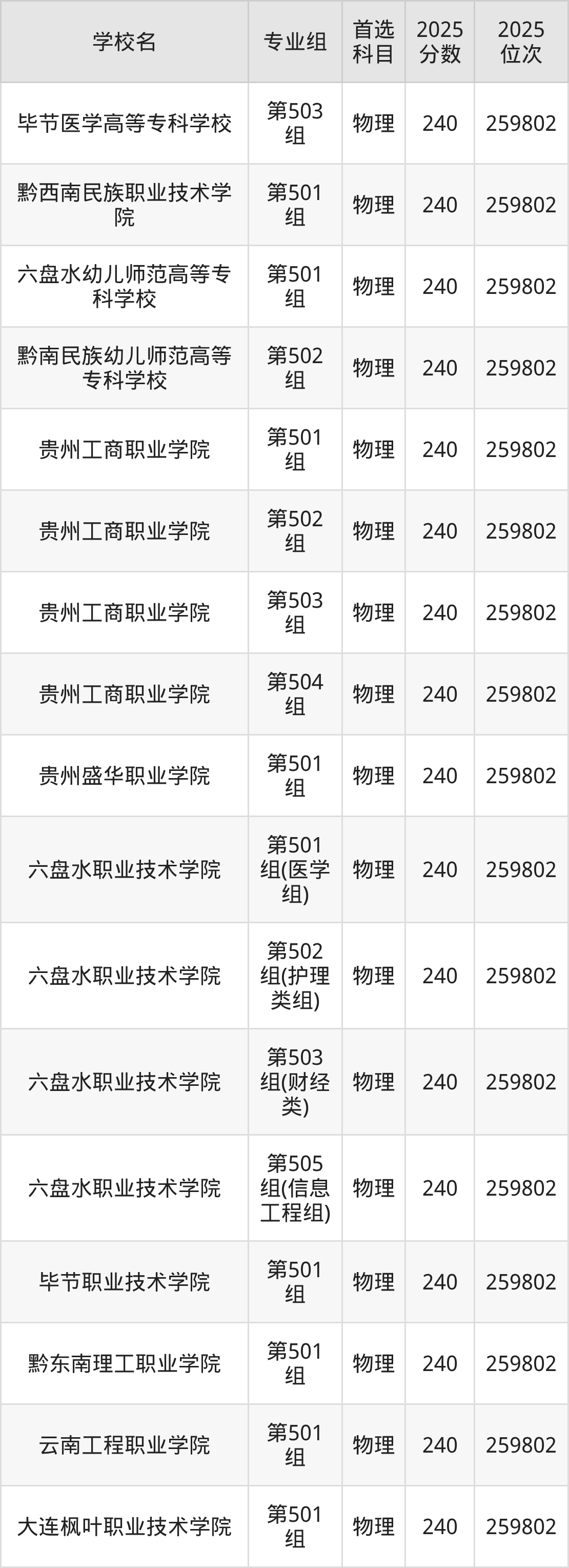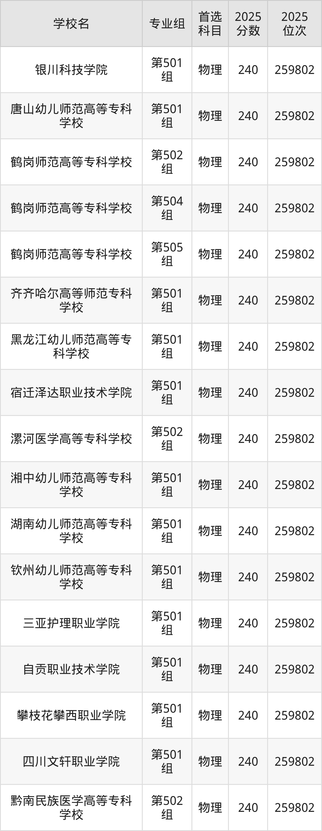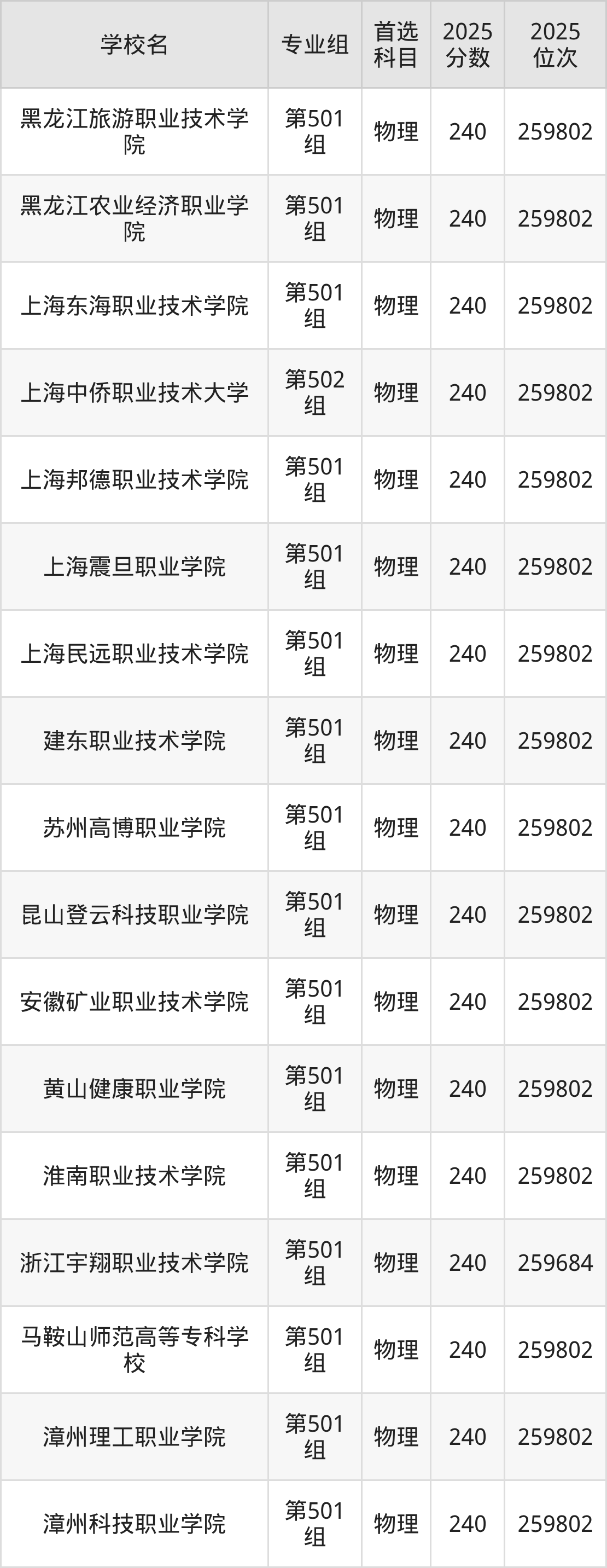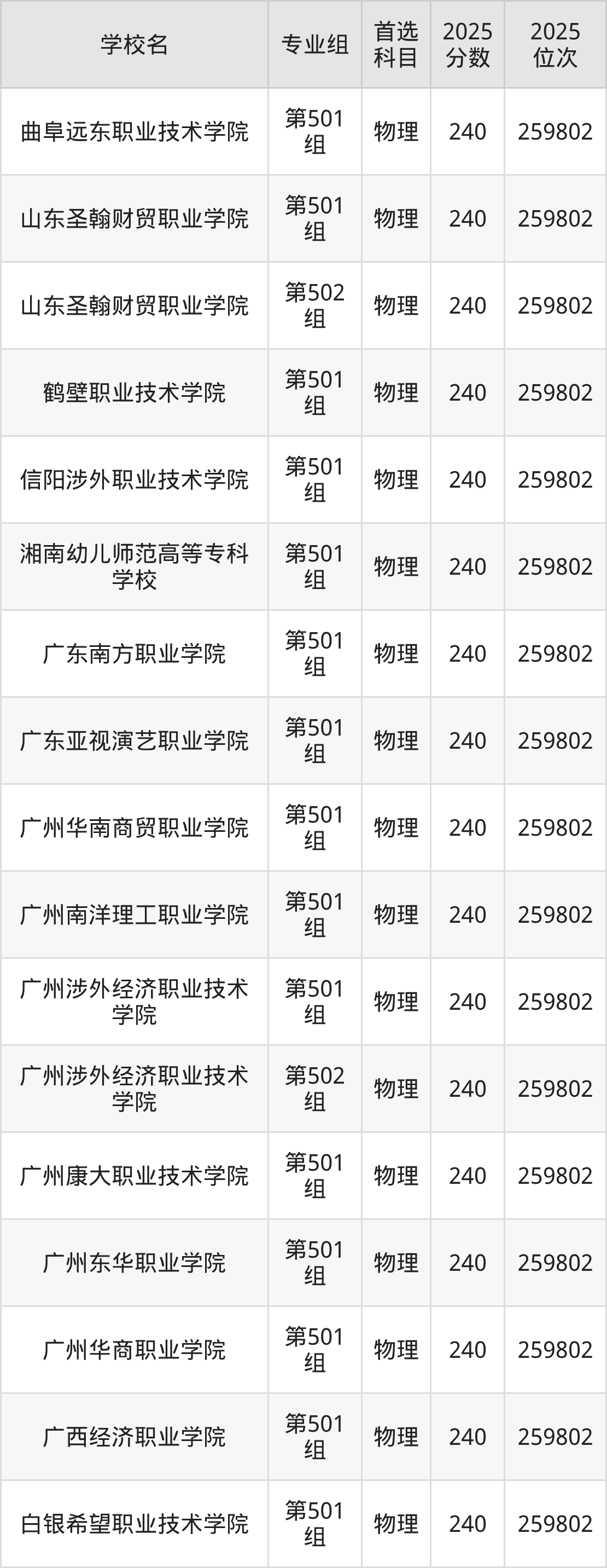 下面老师将以上文整理的其中两个省份为例,为大家具体展示240分左右能上的专科大学名单。