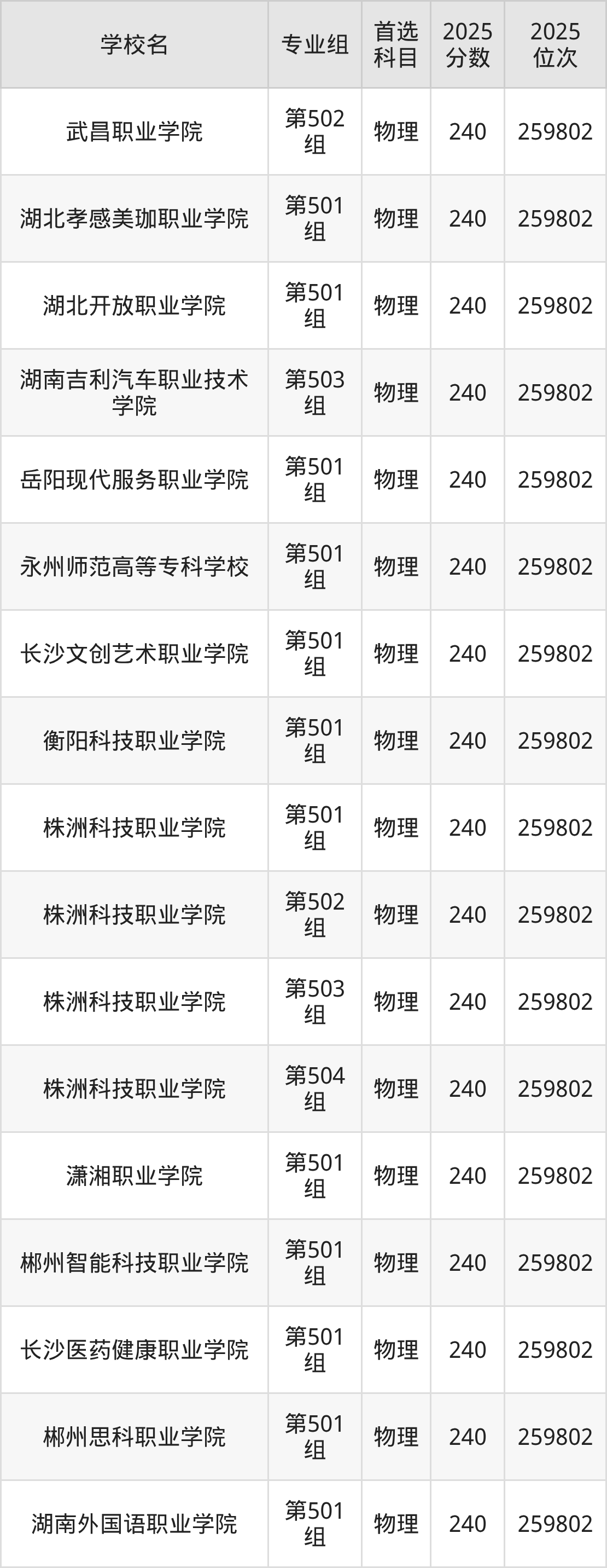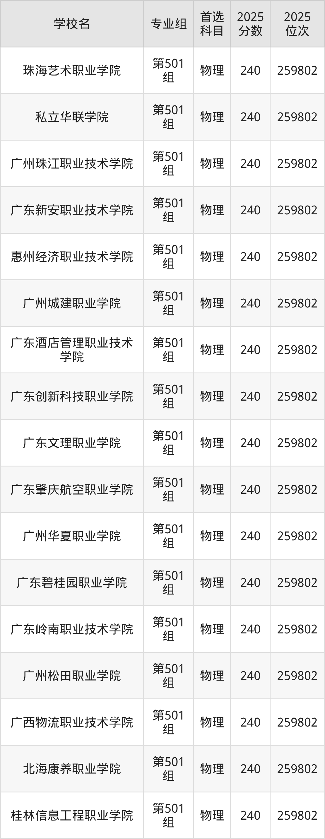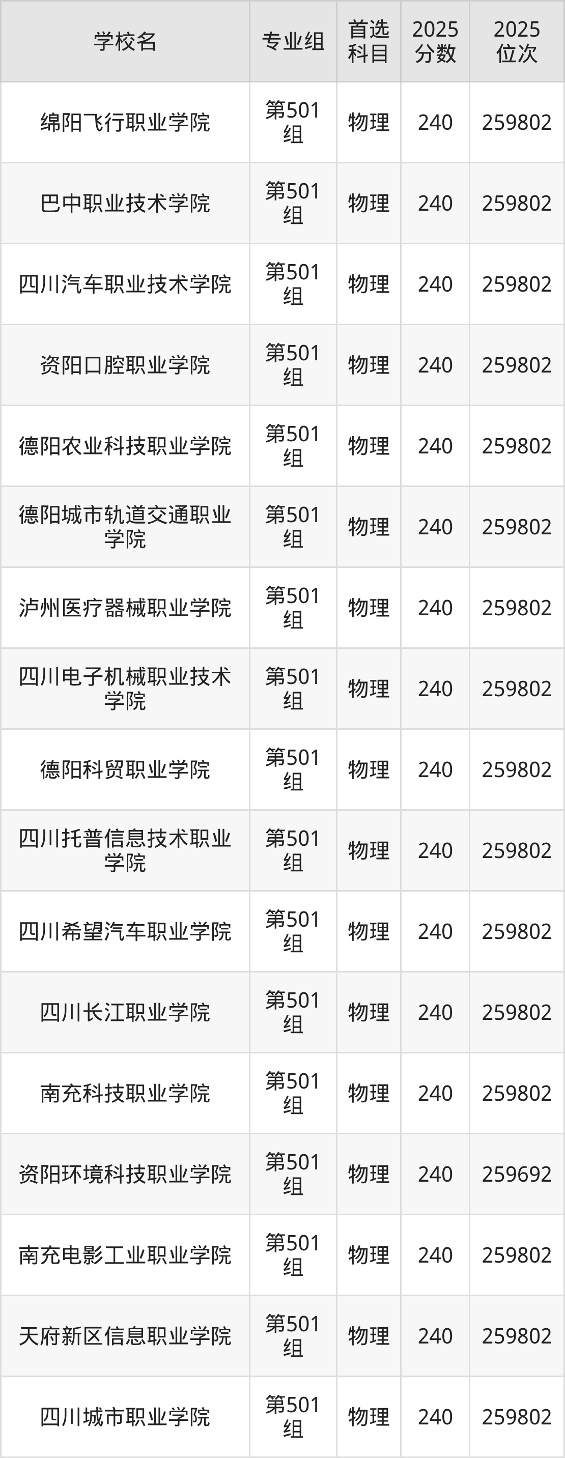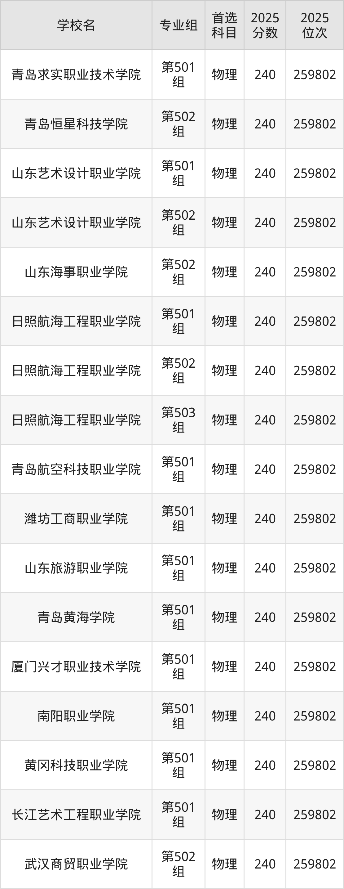 下面老师将以上文整理的其中两个省份为例,为大家具体展示240分左右能上的专科大学名单。