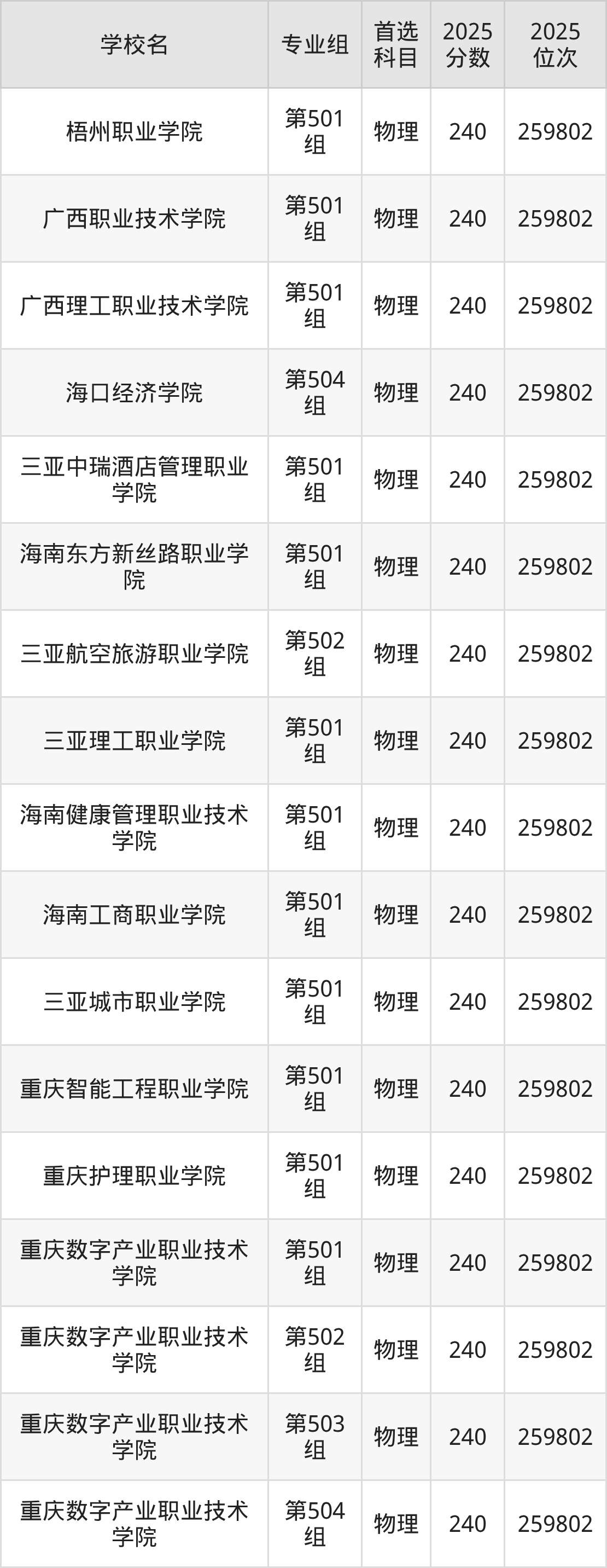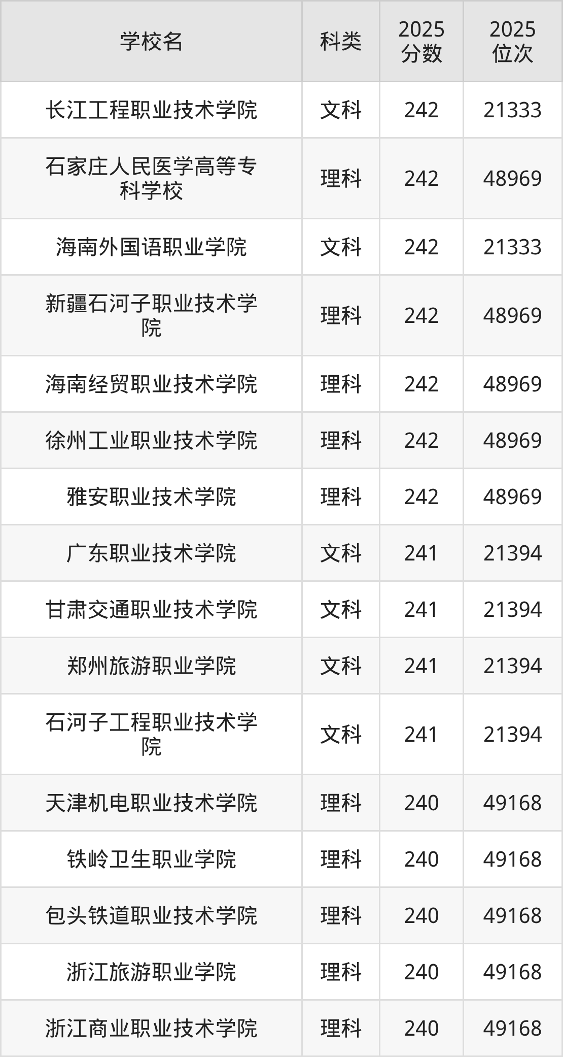 从2025年划定的批次线来看,240分在以下地区可以上专科大学,2025年专科线不超过240分的地区有23个,具体如下: