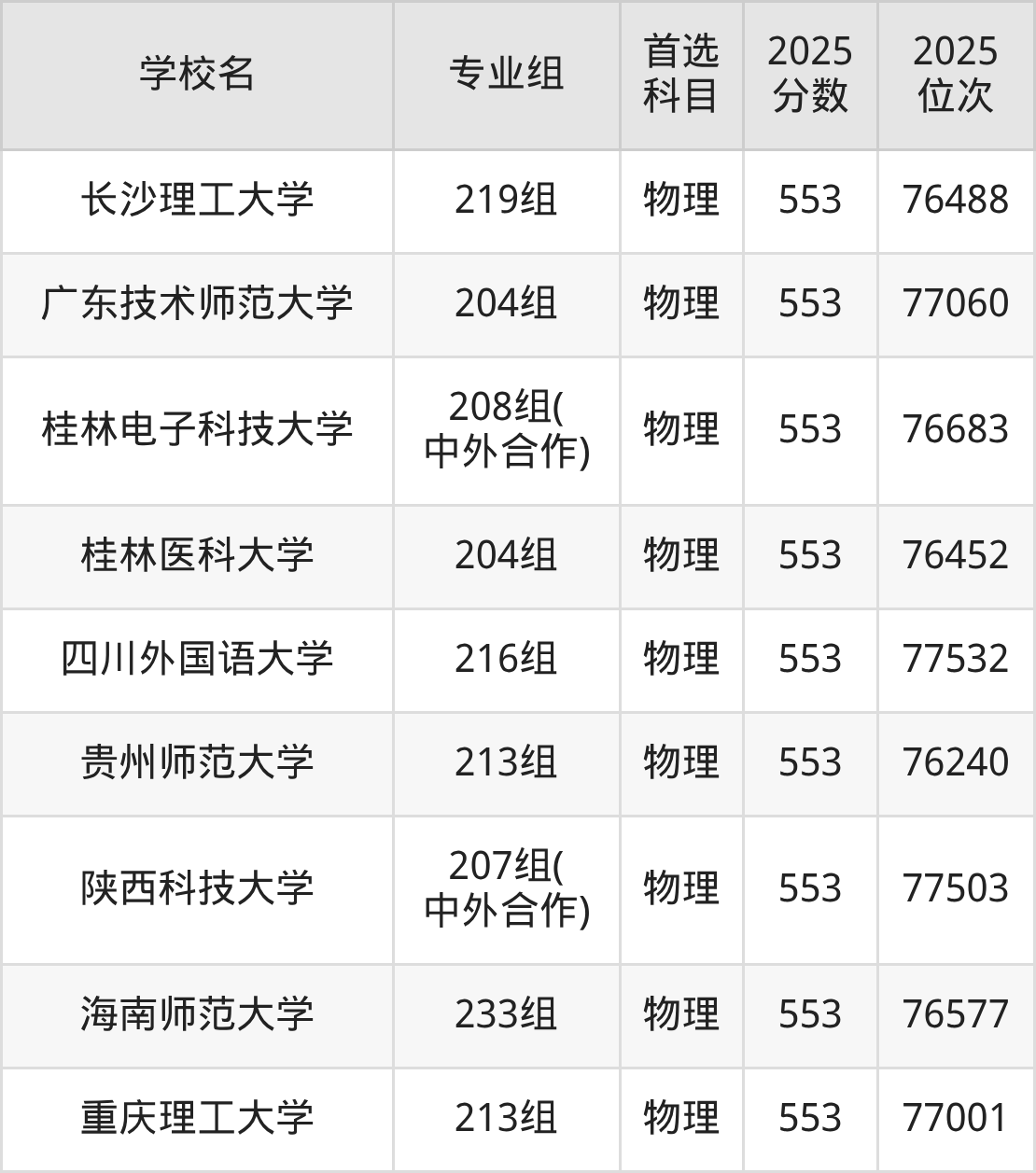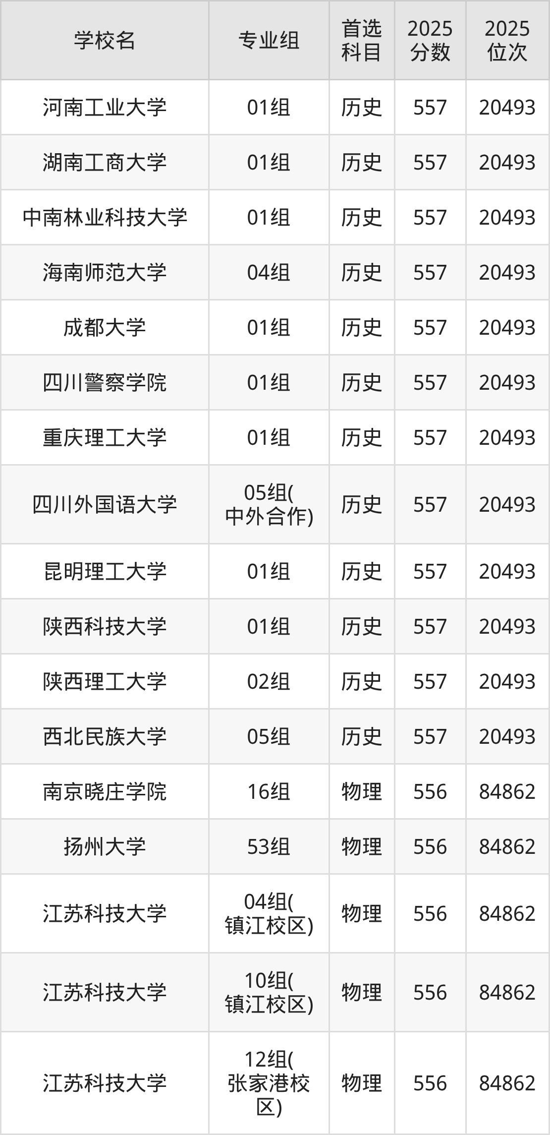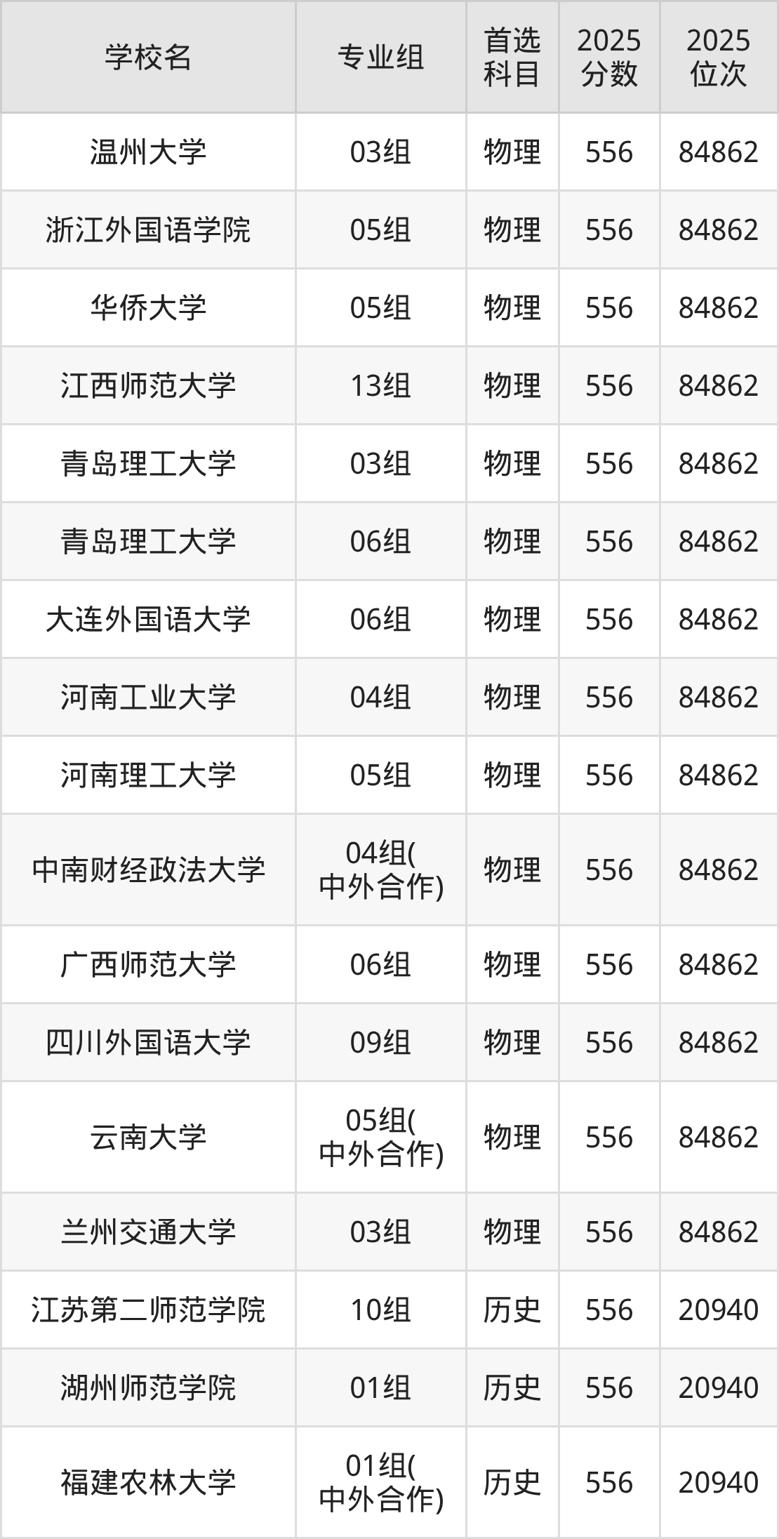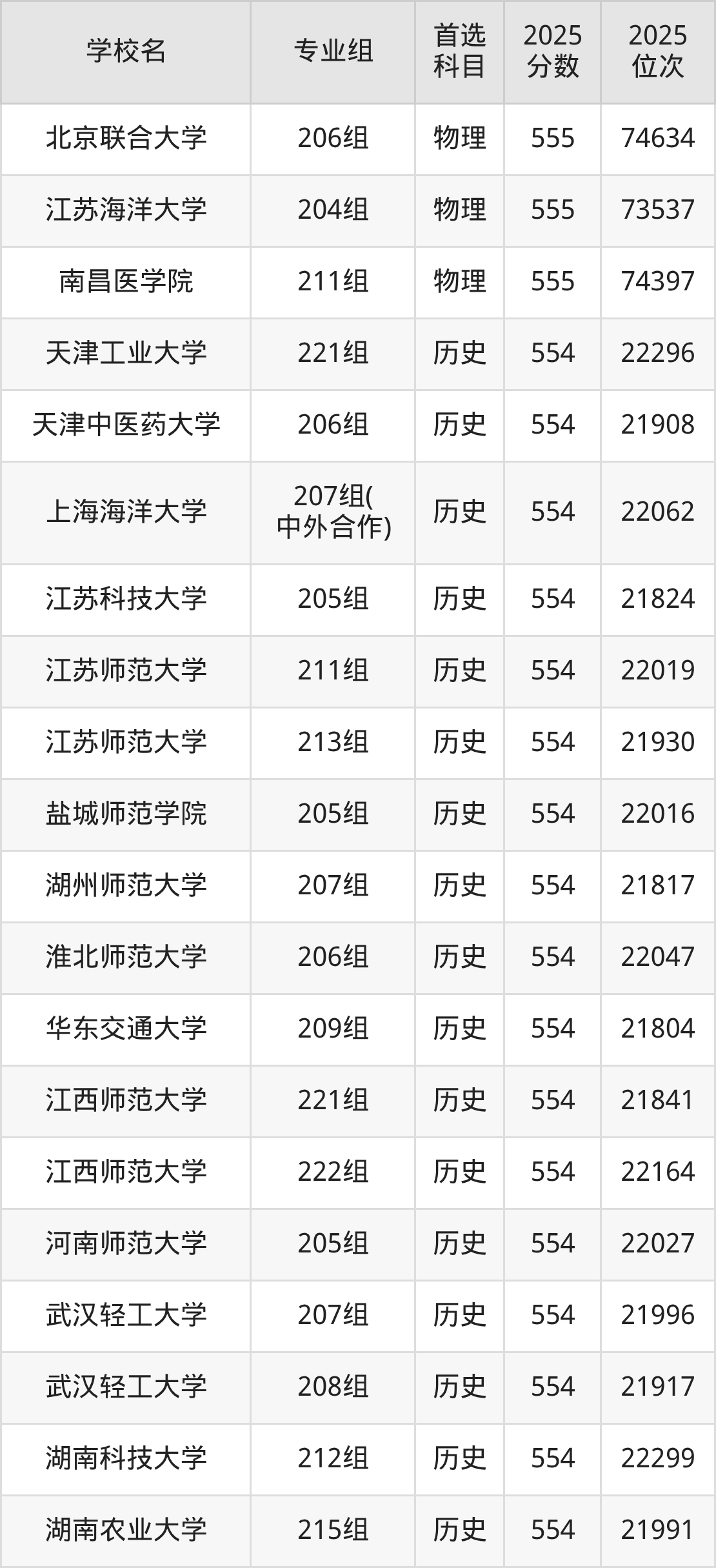 广东高考历史类555分对应的位次排名是21308名-21754名,物理类555分对应的位次排名是73537名-74634名,因此建议2026年位次排在这附近的同学考虑这些大学。
