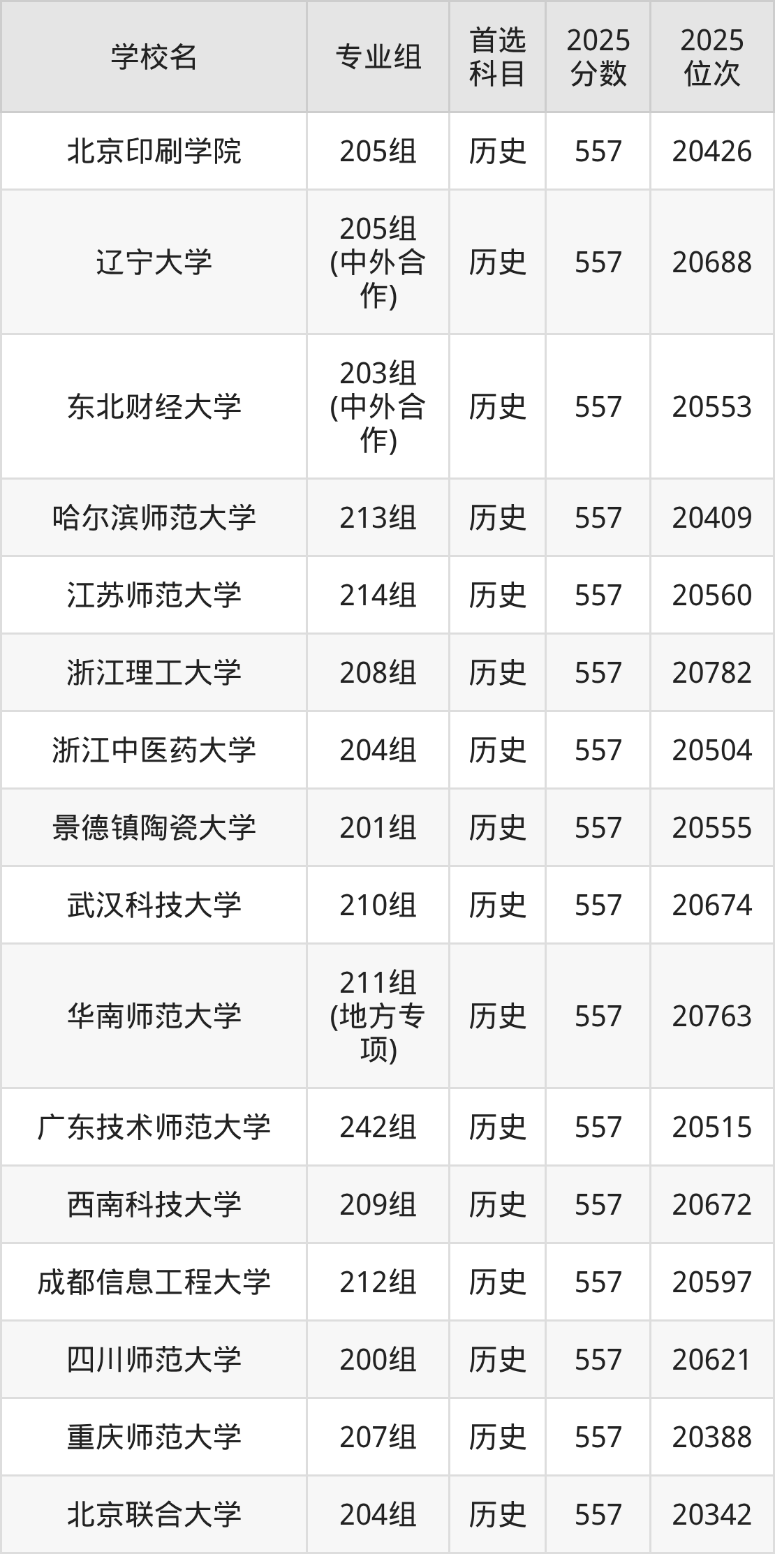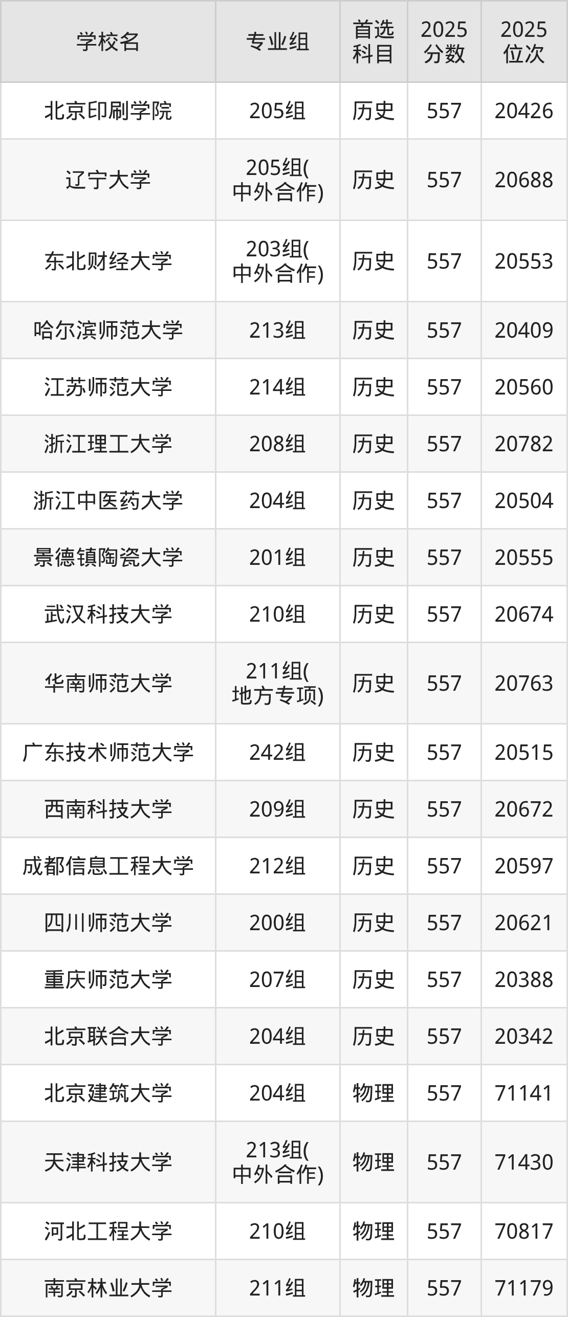 历史类555分可以冲的大学:北京印刷学院557分、辽宁大学557分、东北财经大学557分、哈尔滨师范大学557分等;较稳妥的大学:天津工业大学554分、天津中医药大学554分、上海海洋大学554分、江苏科技大学554分等。