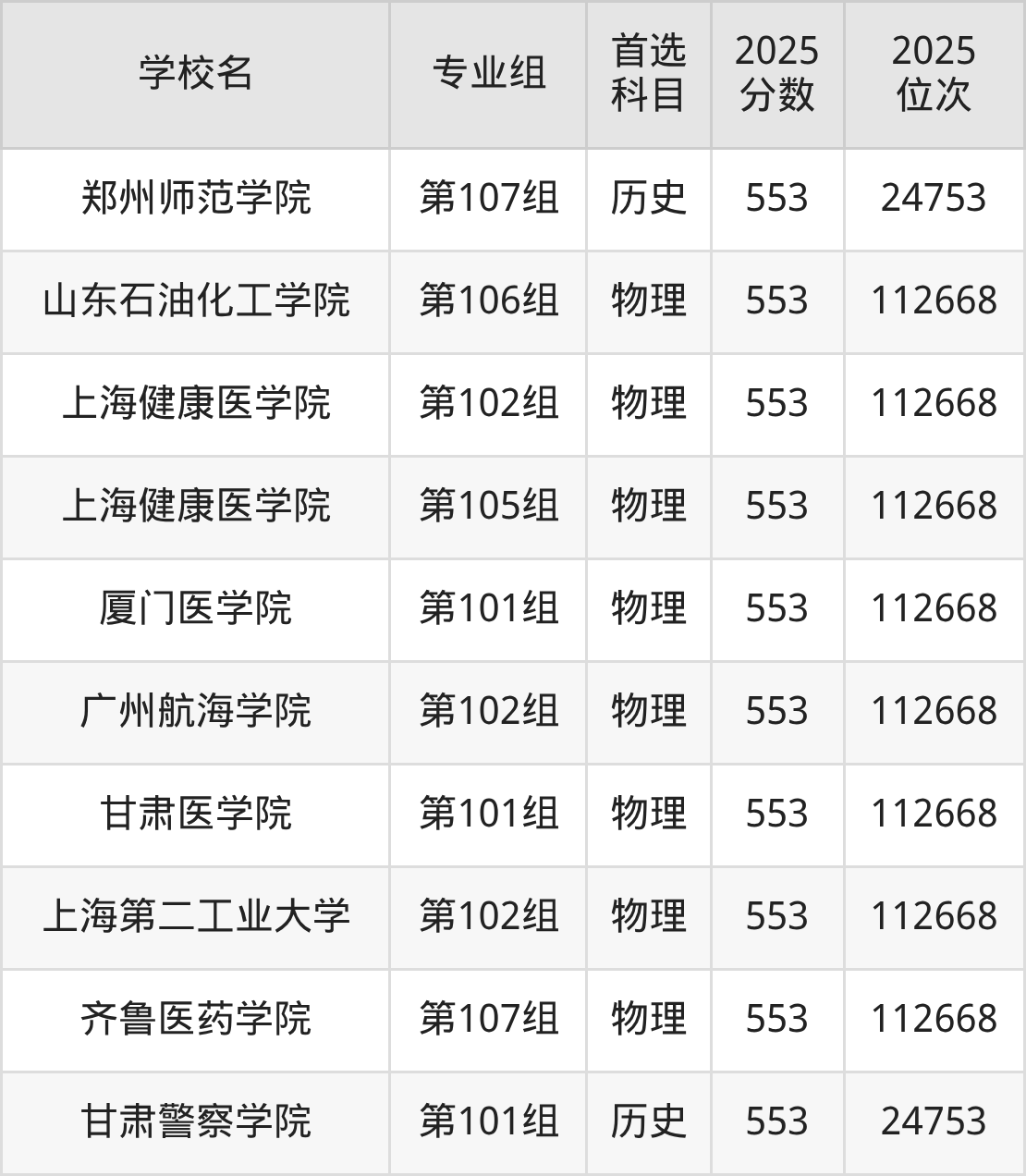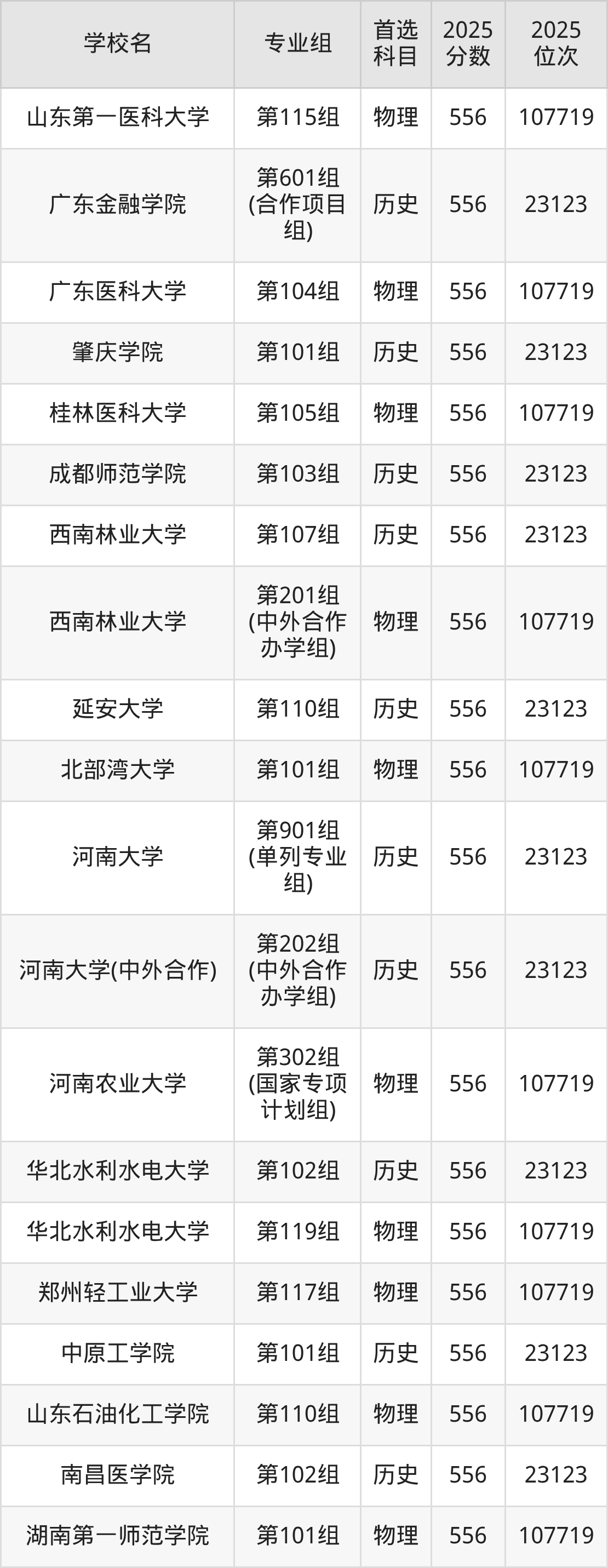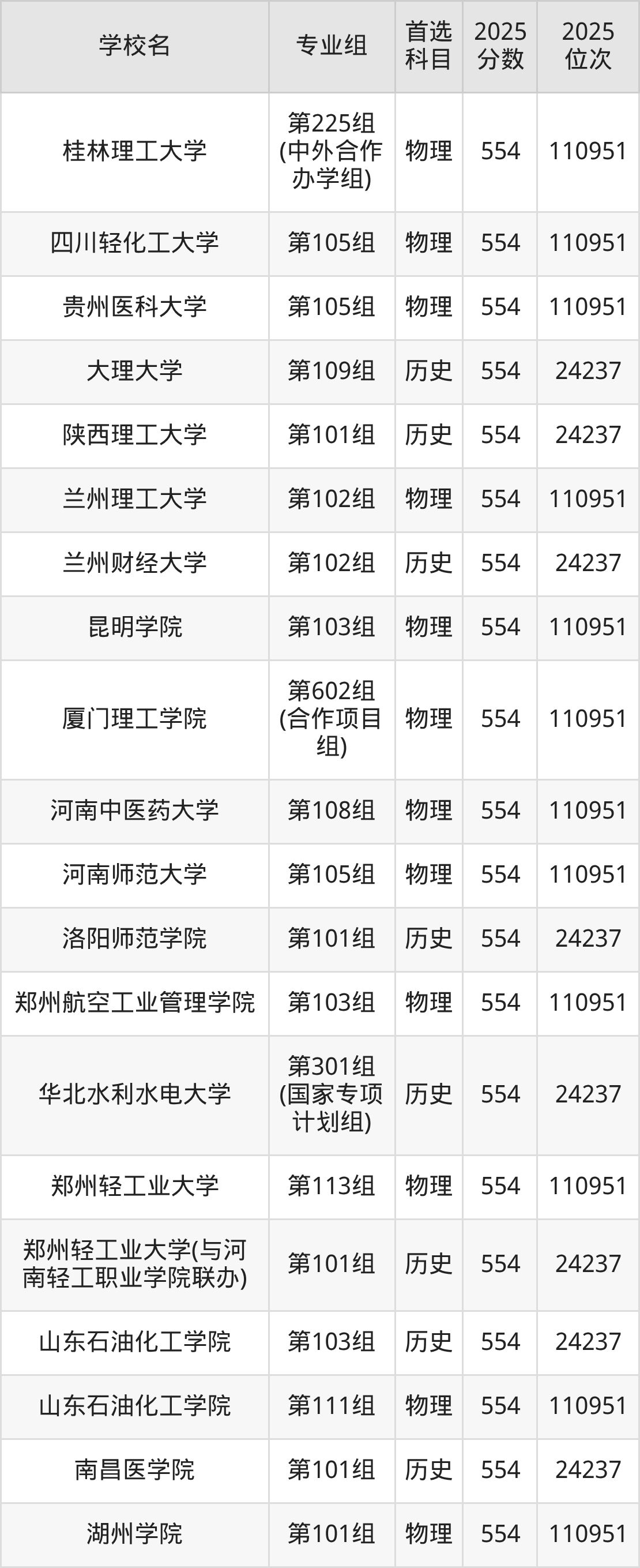 河南高考物理类555分对应的位次排名是109314名,历史类555分对应的位次排名是23701名,因此建议2026年位次排在这附近的同学考虑这些大学。