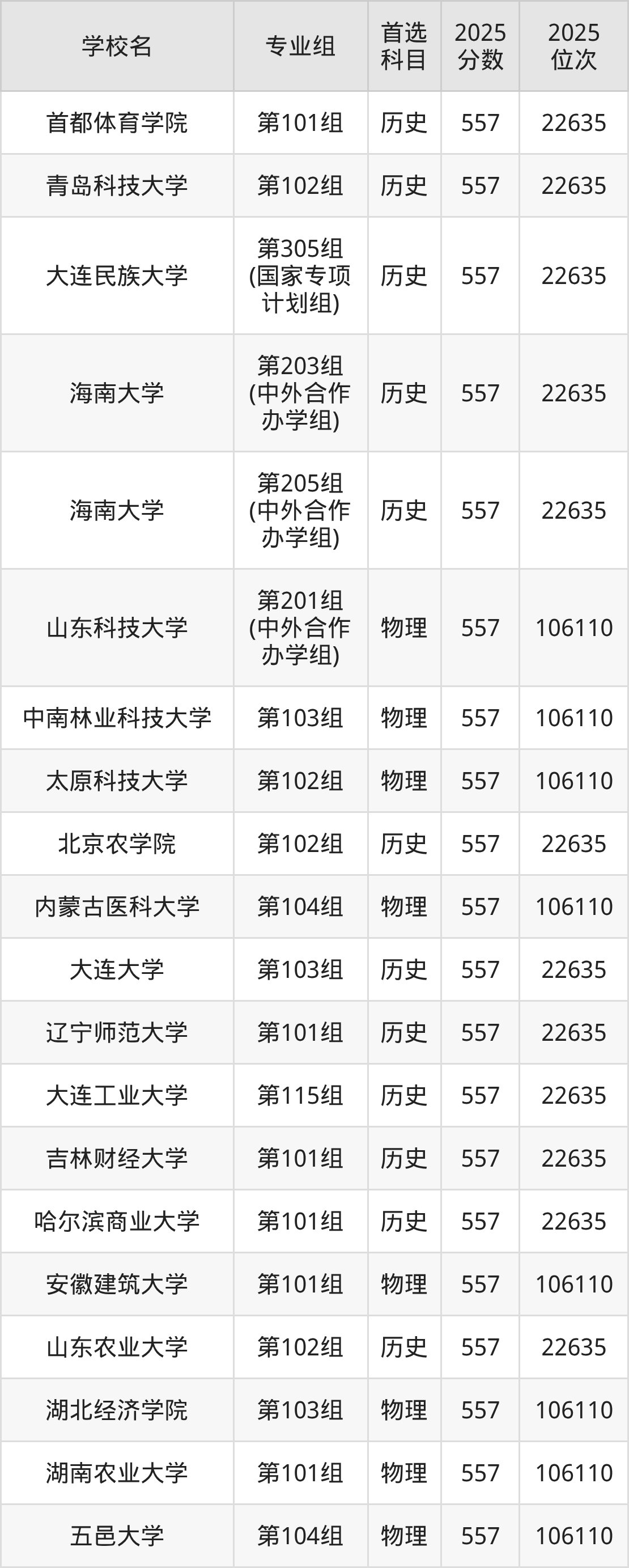 历史类555分可以冲的大学:首都体育学院557分、青岛科技大学557分、大连民族大学557分、海南大学557分等;较稳妥的大学:哈尔滨医科大学554分、华侨大学554分、山西医科大学554分、北方民族大学554分等。