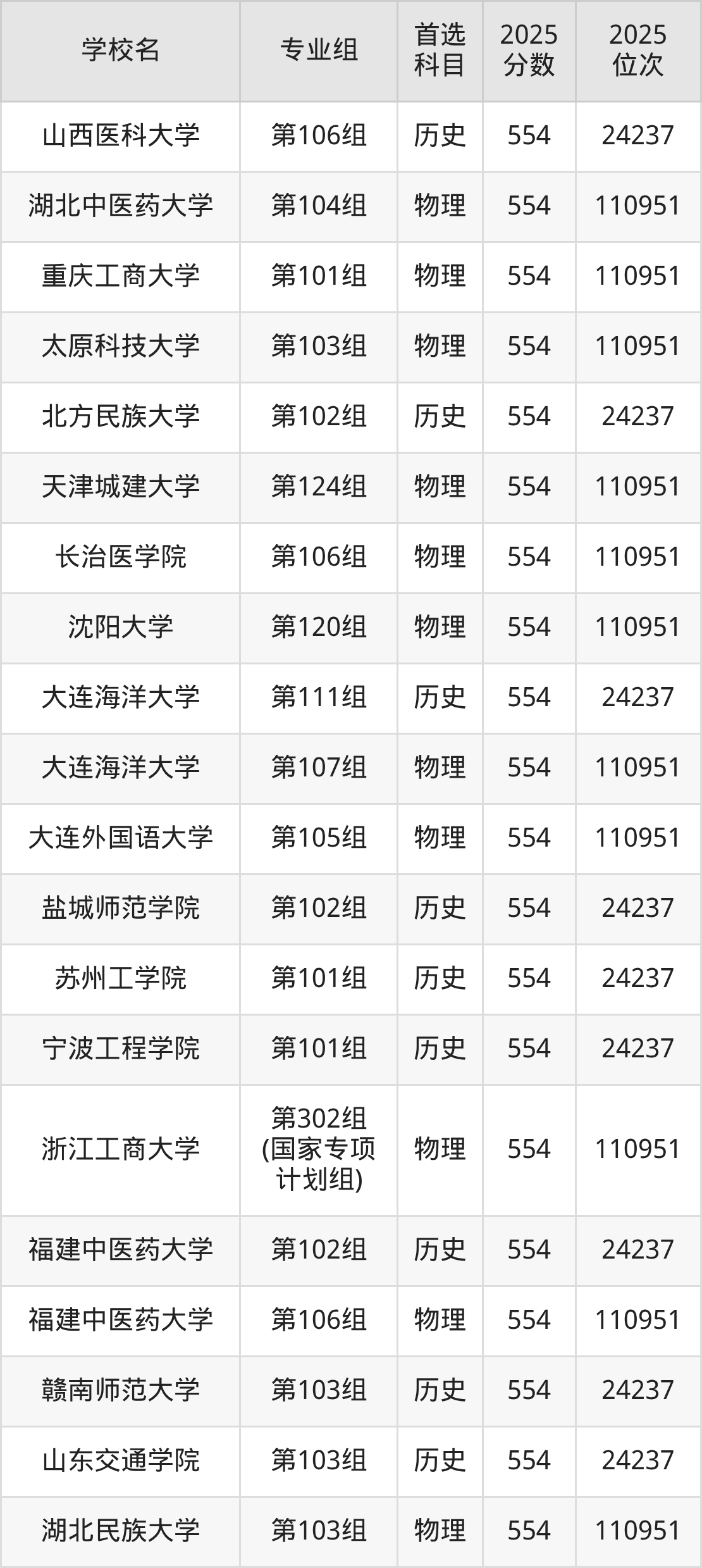 物理类555分可以冲的大学:山东科技大学557分、中南林业科技大学557分、太原科技大学557分、内蒙古医科大学557分等;较稳妥的大学:浙江理工大学554分、沈阳建筑大学554分、浙江师范大学554分、湖北中医药大学554分等。