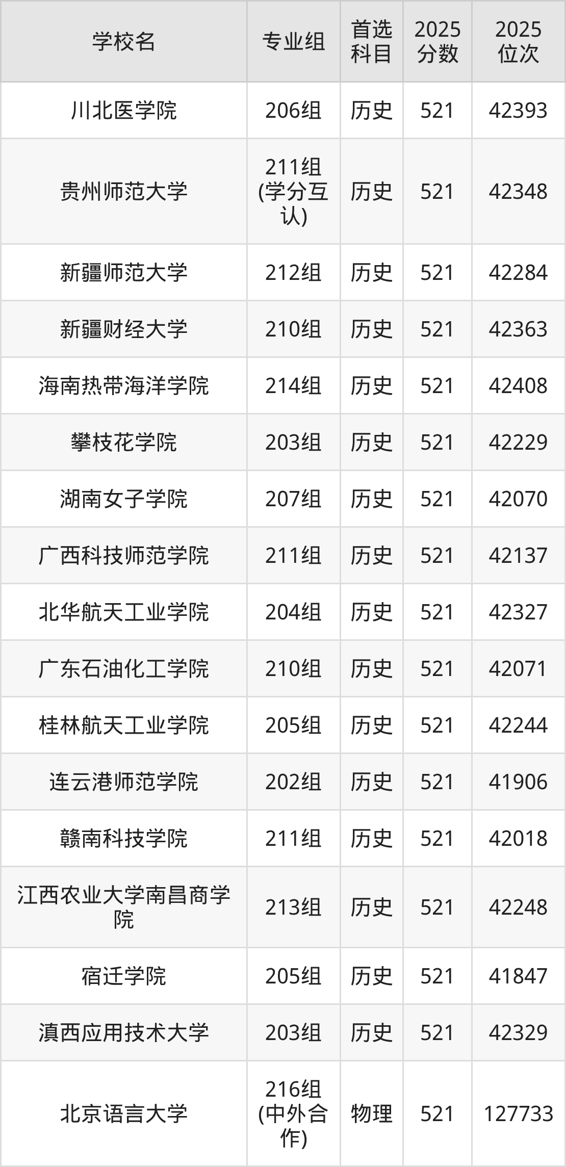 历史类523分可以冲的大学:西昌学院525分、华北科技学院525分、亳州学院525分、三明学院525分等;较稳妥的大学:济宁学院522分、四川文理学院522分、云南艺术学院522分、江西飞行学院522分等。