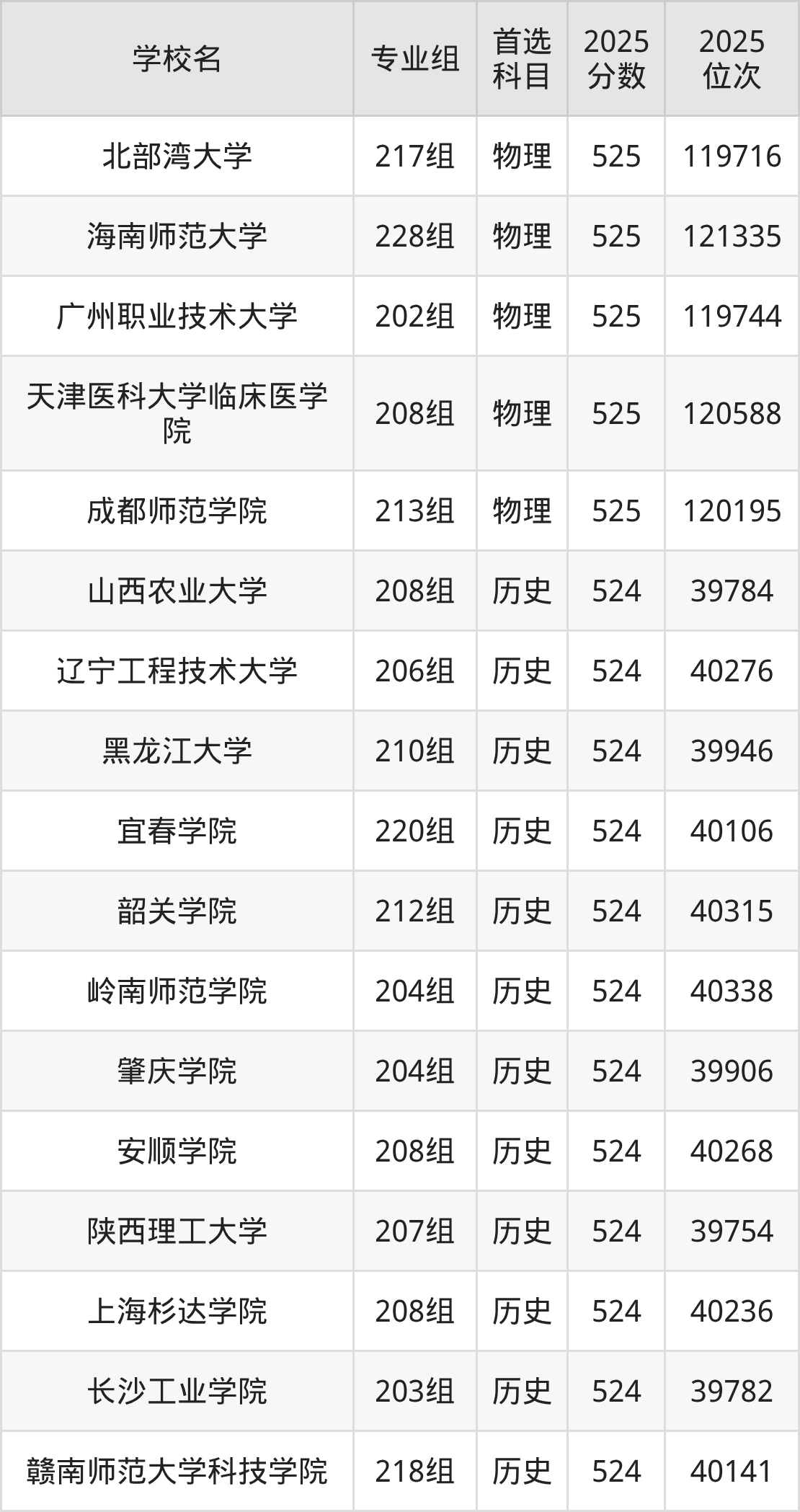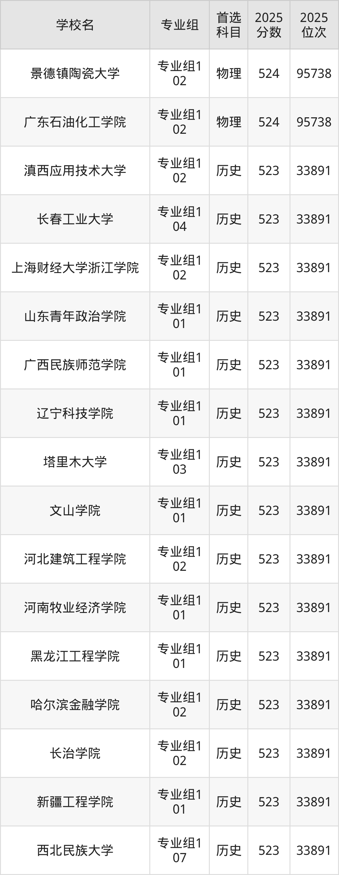 广东高考历史类523分对应的位次排名是40396名-41077名,物理类523分对应的位次排名是123264名-124902名,因此建议2026年位次排在这附近的同学考虑这些大学。