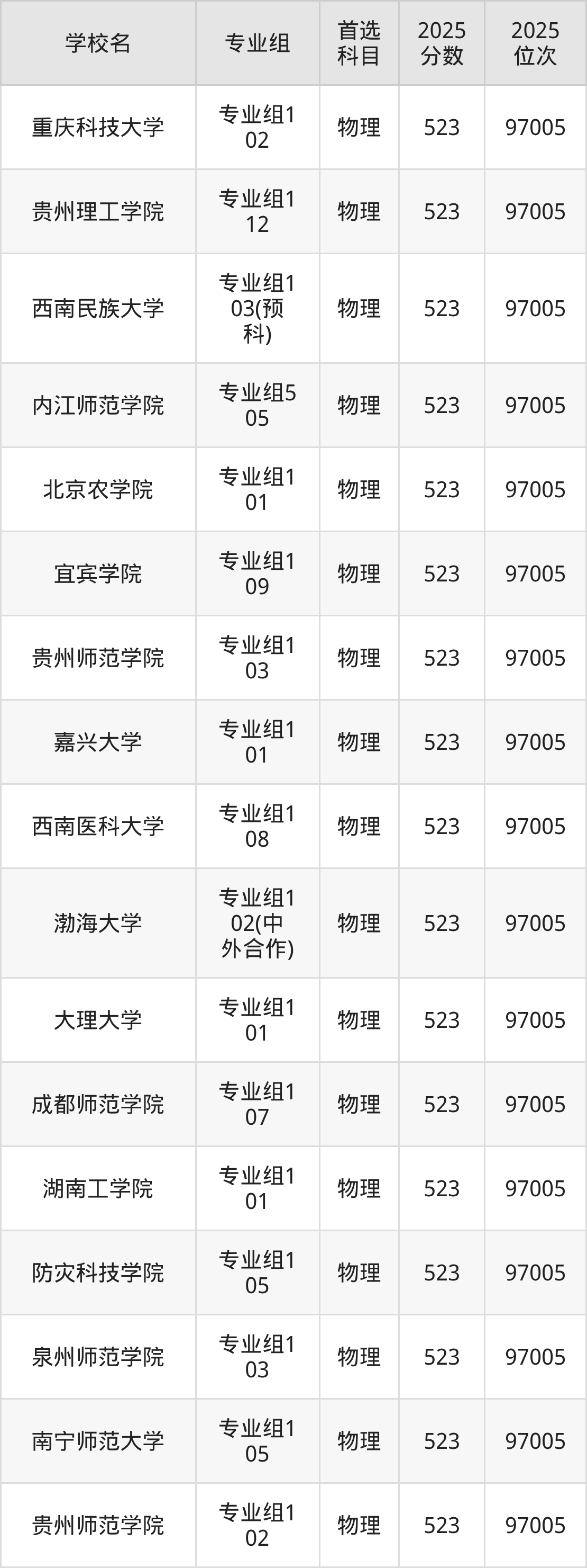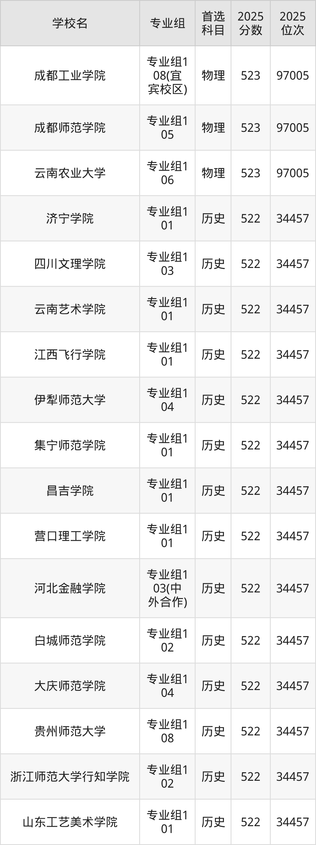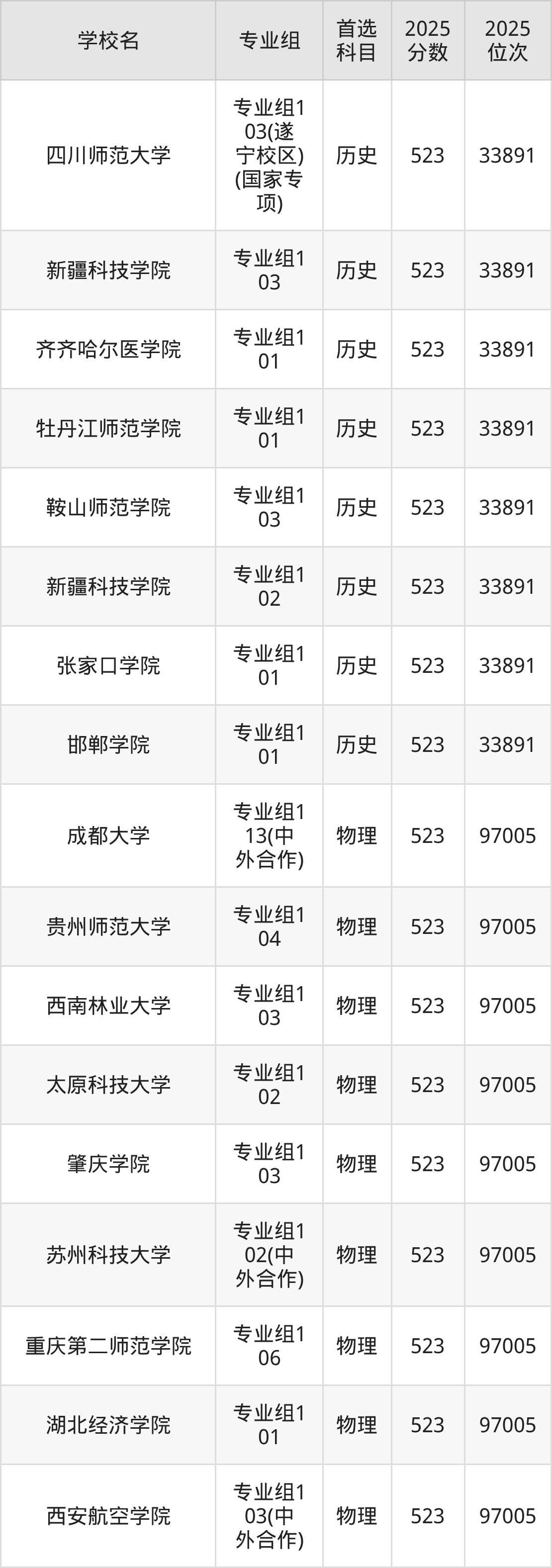四川高考物理类523分对应的位次排名是97005名,历史类523分对应的位次排名是33891名,因此建议2026年位次排在这附近的同学考虑这些大学。