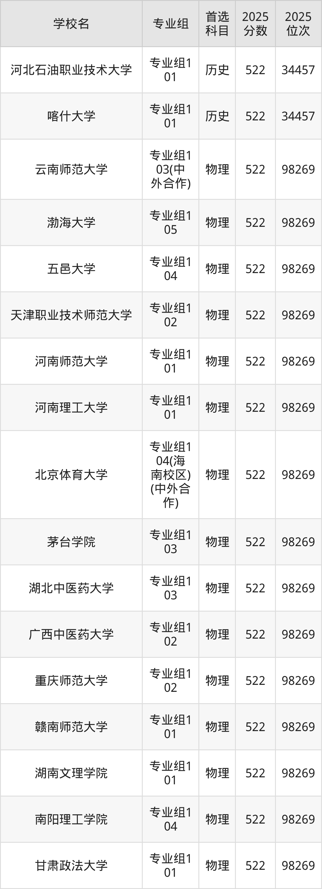 下面老师将以上文整理的其中两个省份为例,为大家具体展示523分左右能上的本科大学名单。