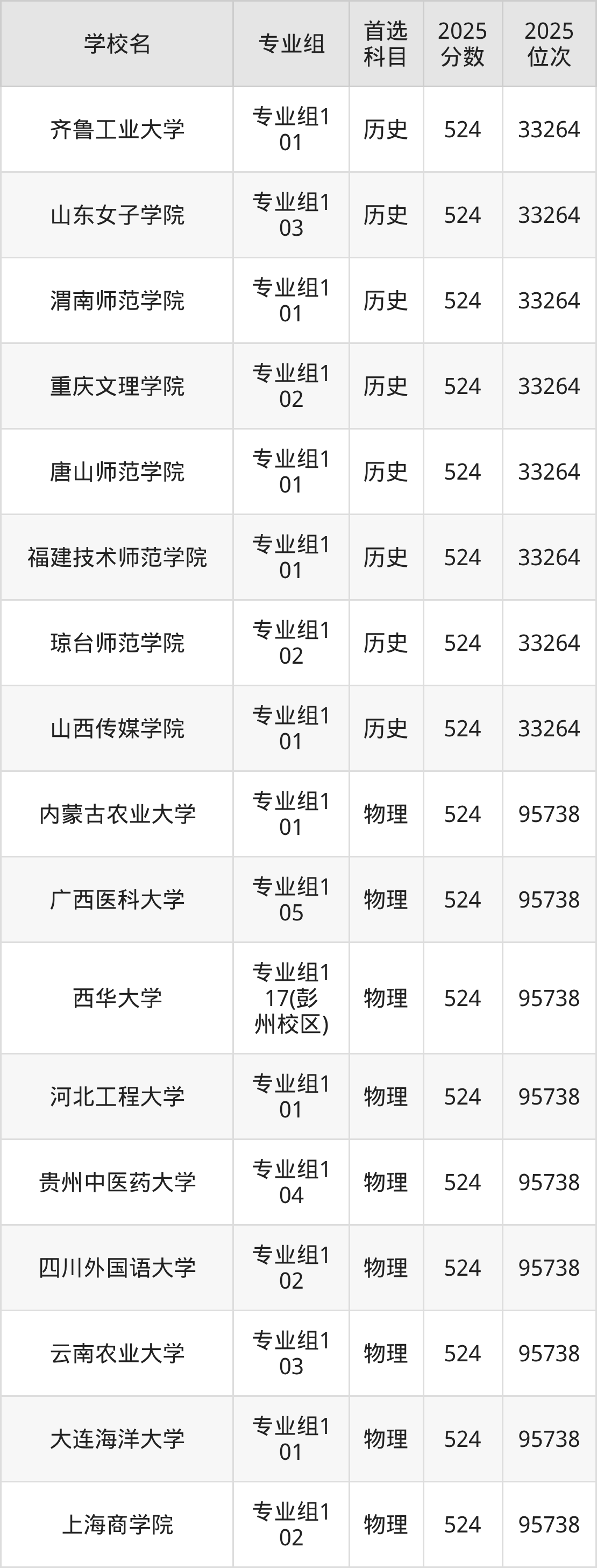2025年在四川高考历史类录取分数线是523分的大学有滇西应用技术大学、长春工业大学、上海财经大学浙江学院、山东青年政治学院、广西民族师范学院、辽宁科技学院、塔里木大学、文山学院、河北建筑工程学院、河南牧业经济学院等。物理类录取分数线是523分的大学有成都大学、贵州师范大学、西南林业大学、太原科技大学、肇庆学院、苏州科技大学、重庆第二师范学院、湖北经济学院、西安航空学院、重庆科技大学等。