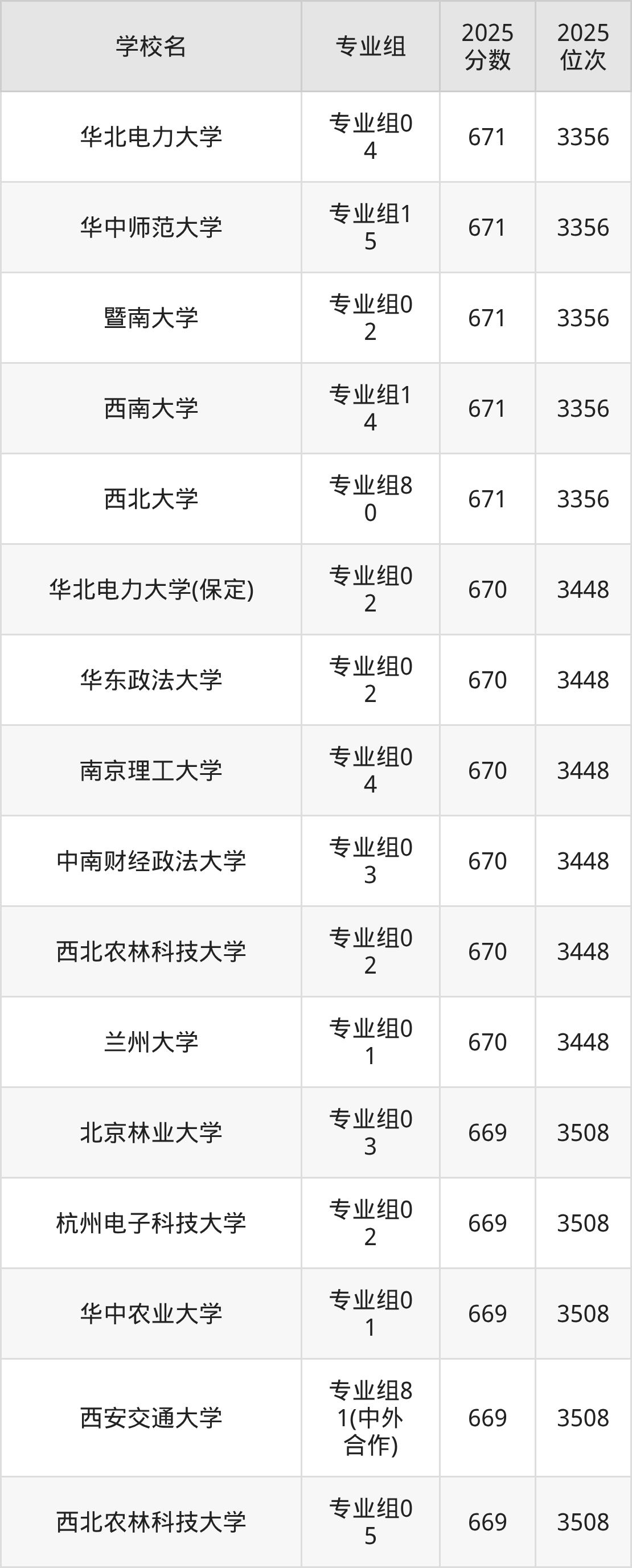 669分可以冲一冲的大学:华北电力大学671分、华中师范大学671分、暨南大学671分、西南大学671分等;