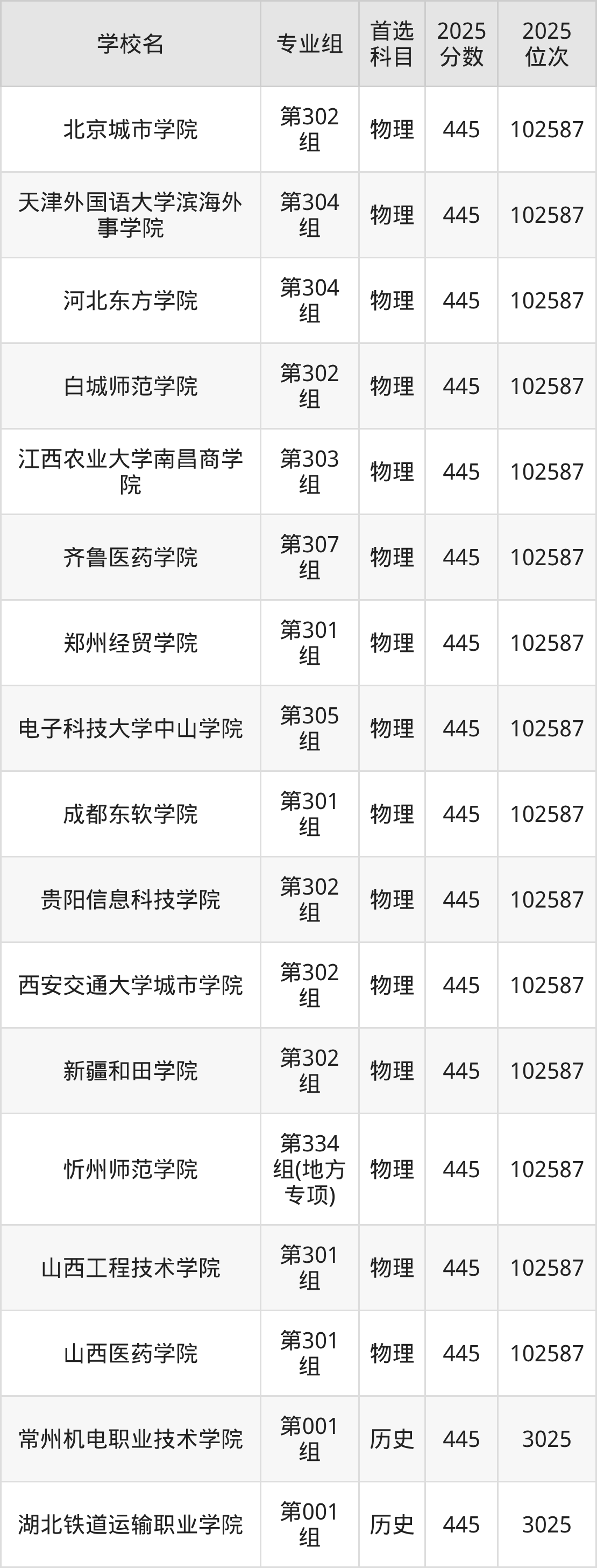 443分可以冲一冲的大学:石家庄铁道大学四方学院445分、忻州师范学院445分、晋中学院445分、辽宁科技学院445分等;