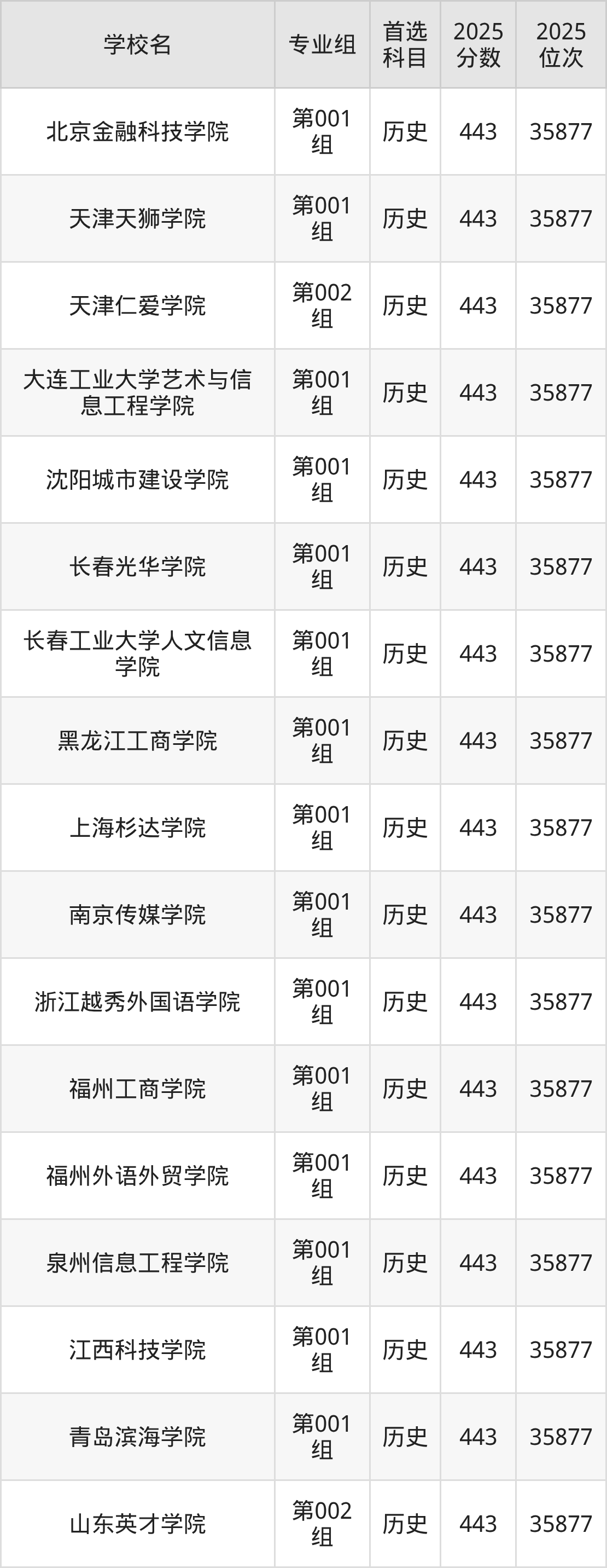 下面老师将以上文整理的其中两个省份为例,为大家具体展示443分左右能上的本科大学名单。