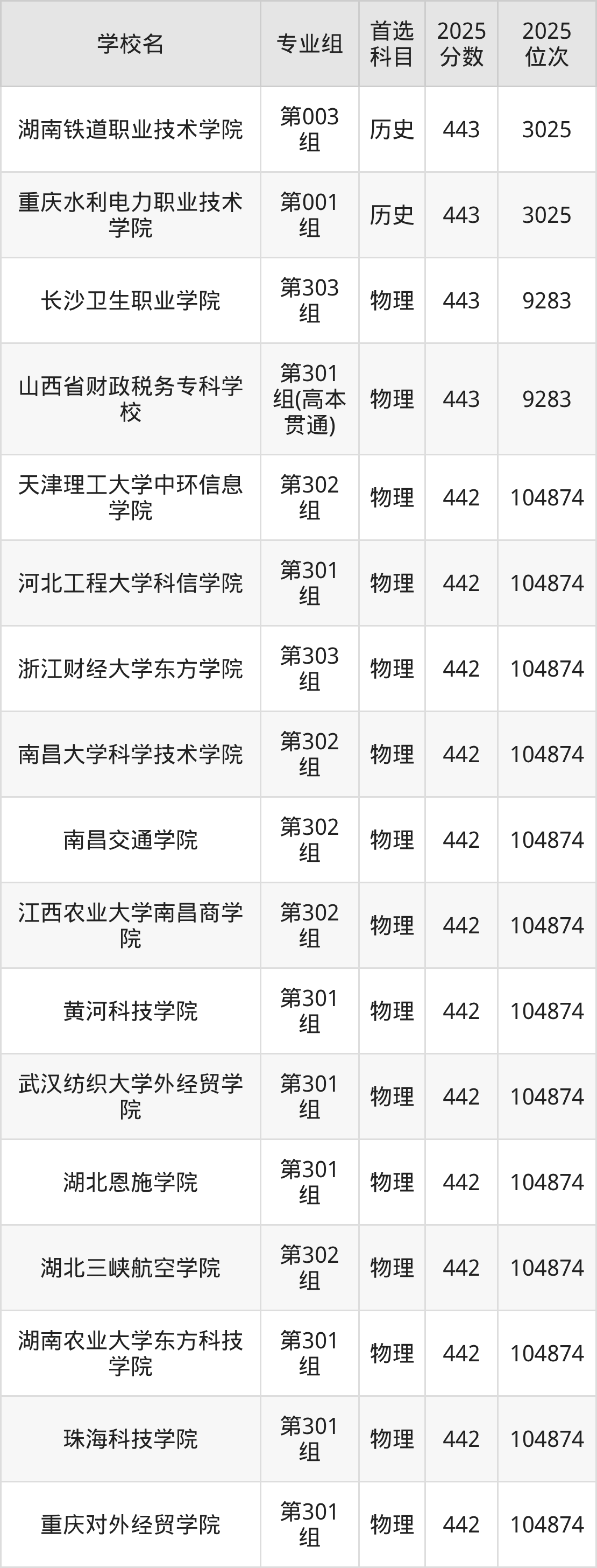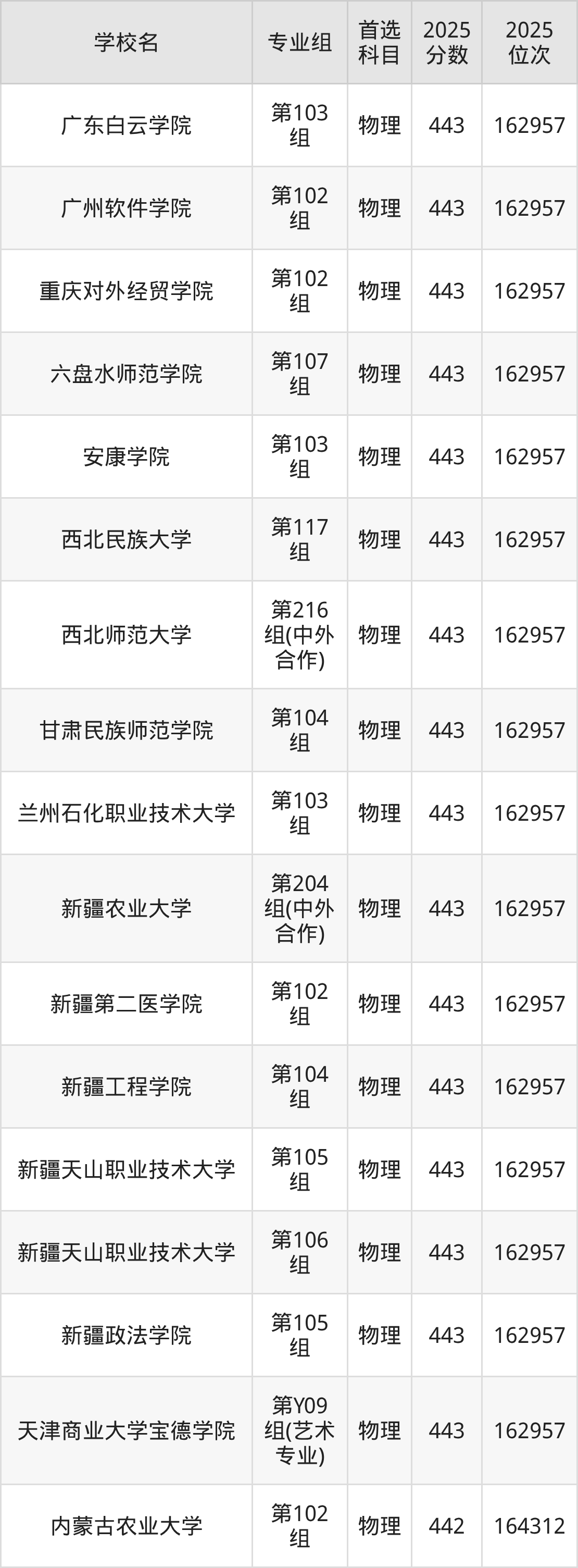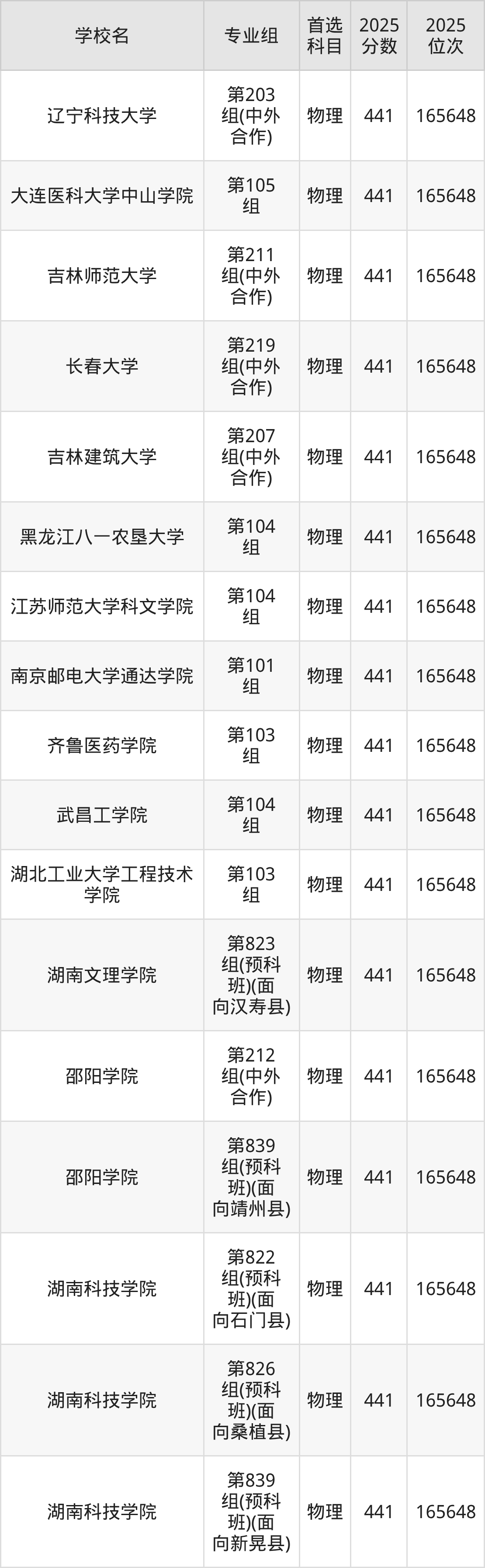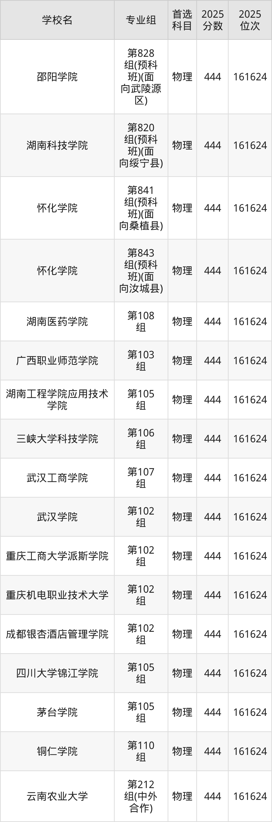 湖南物理类443分对应的位次排名是162957名,因此建议2026年位次排在这附近的考生考虑这些大学。
