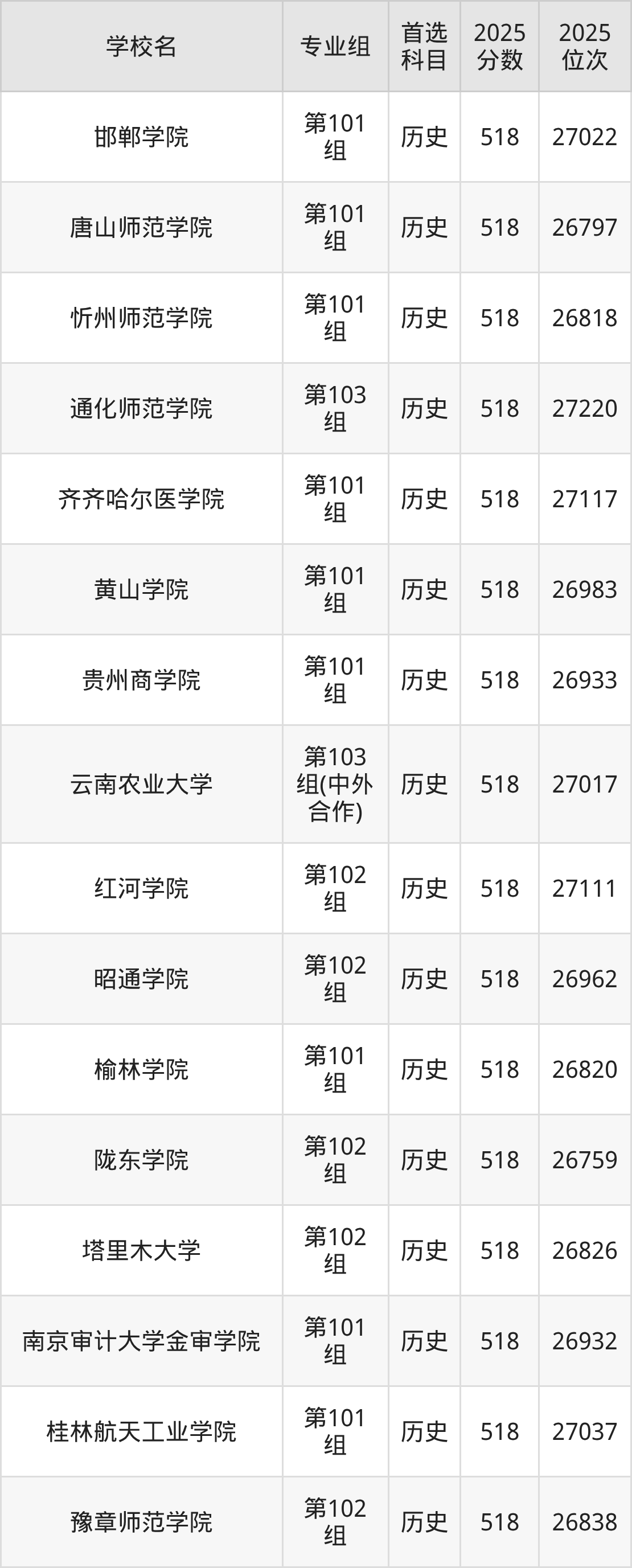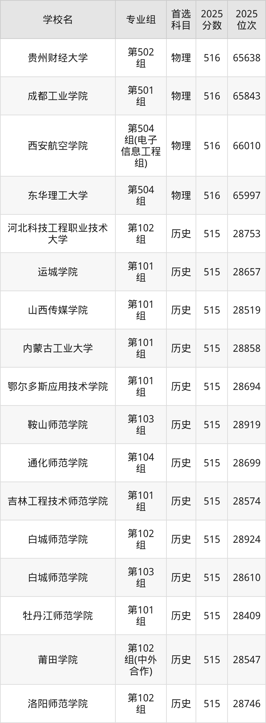 历史类516分可以冲的大学:邯郸学院518分、唐山师范学院518分、忻州师范学院518分、通化师范学院518分等;较稳妥的大学:河北科技工程职业技术大学515分、运城学院515分、山西传媒学院515分、内蒙古工业大学515分等。