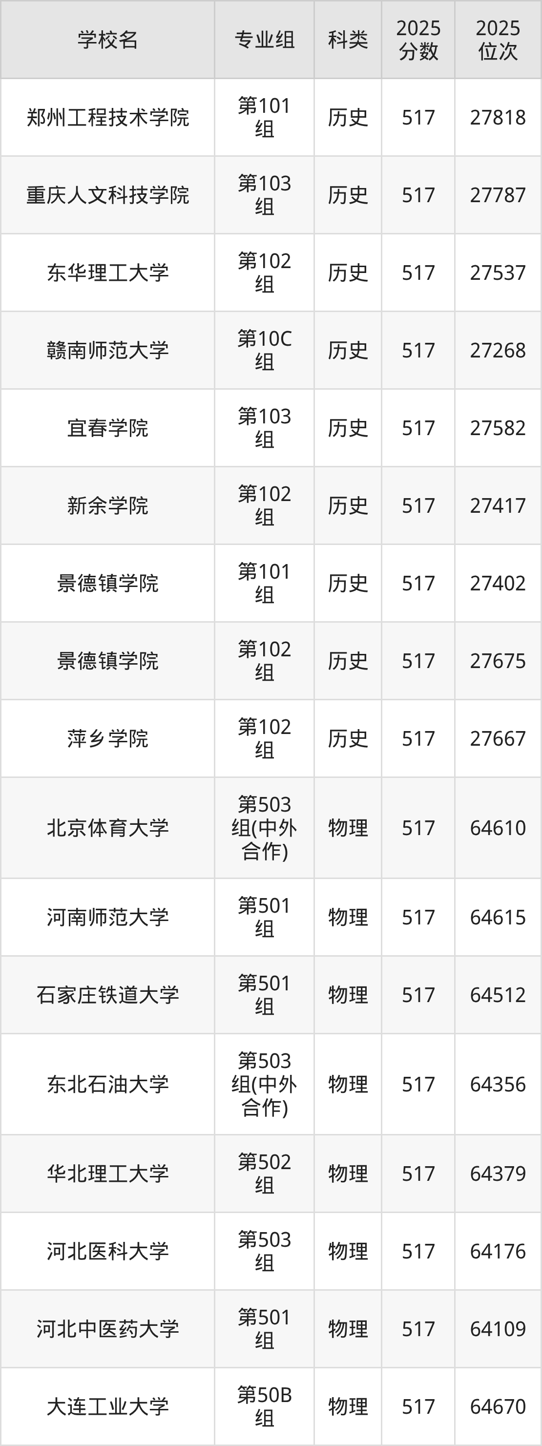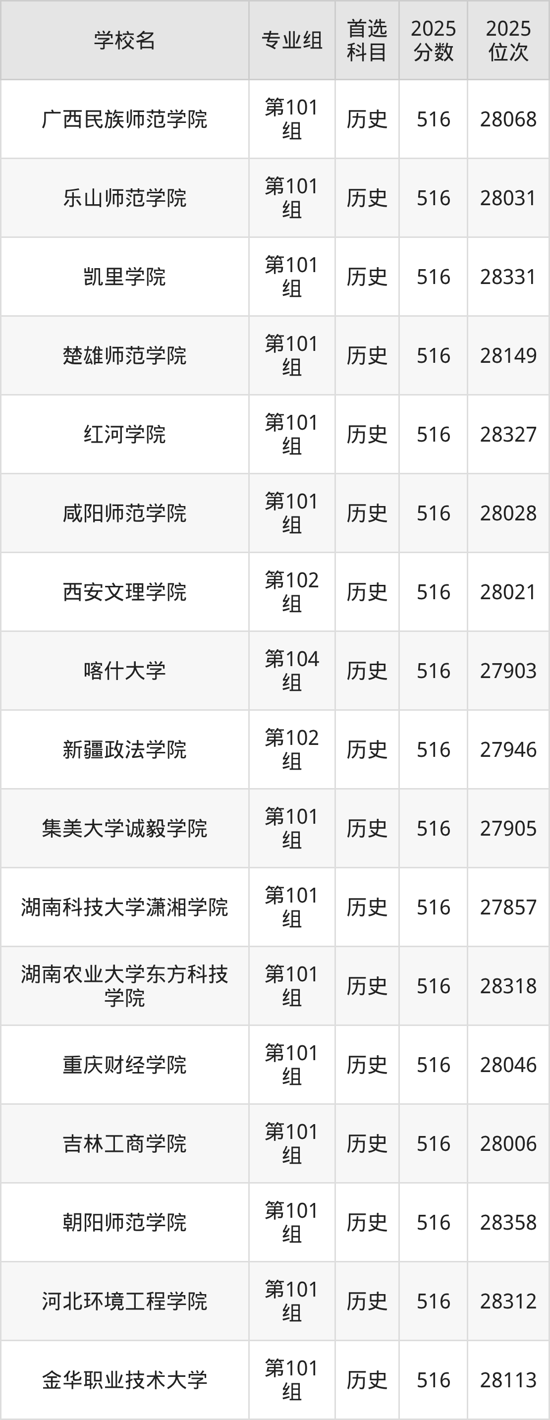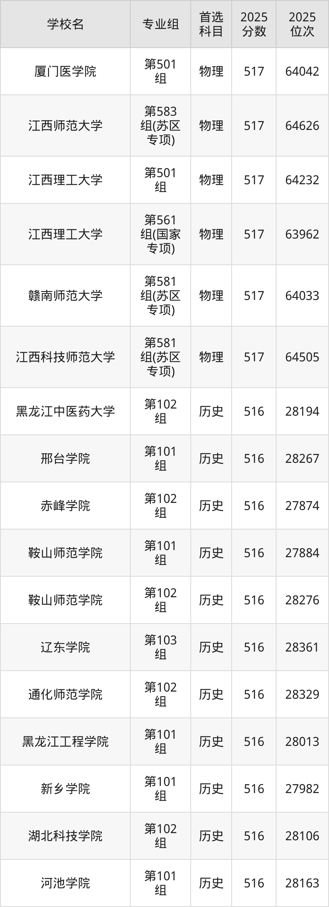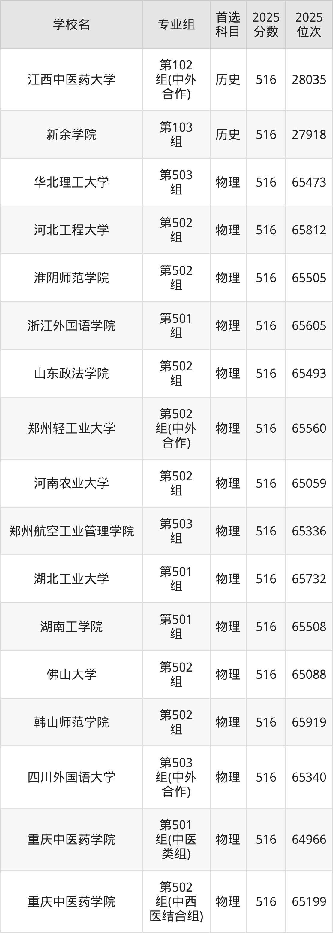 江西高考历史类516分对应的位次排名是27857名-28361名,物理类516分对应的位次排名是64966名-66010名,因此建议2026年位次排在这附近的同学考虑这些大学。