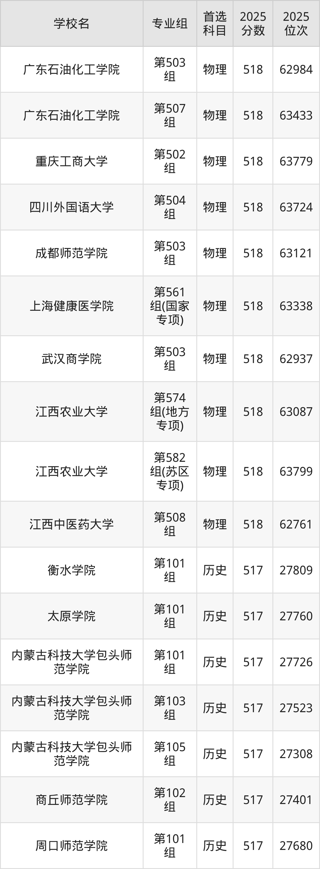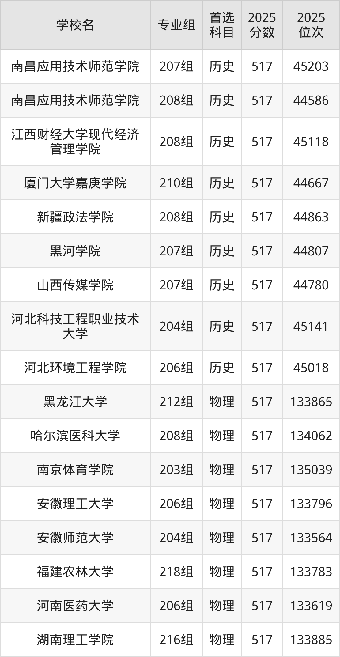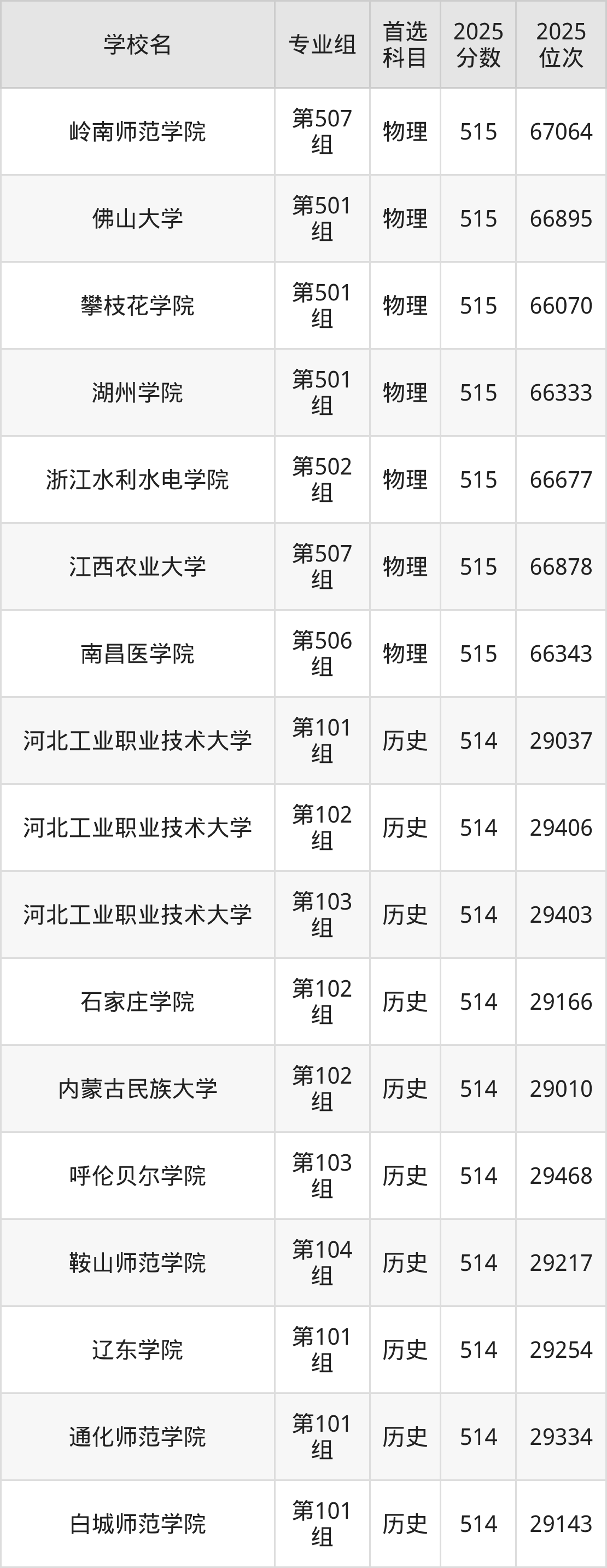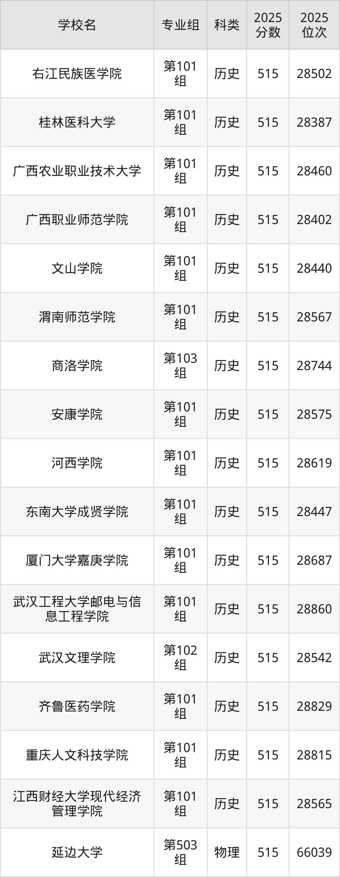 江西高考历史类516分对应的位次排名是27857名-28361名,物理类516分对应的位次排名是64966名-66010名,因此建议2026年位次排在这附近的同学考虑这些大学。