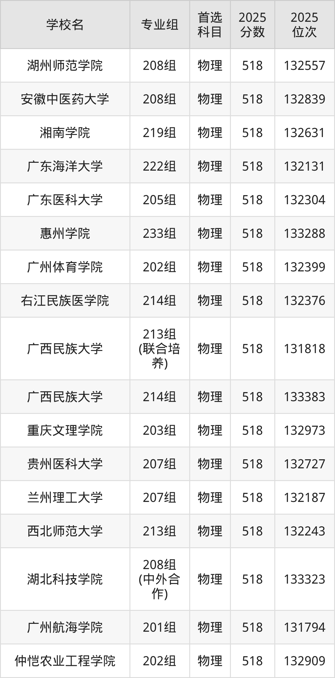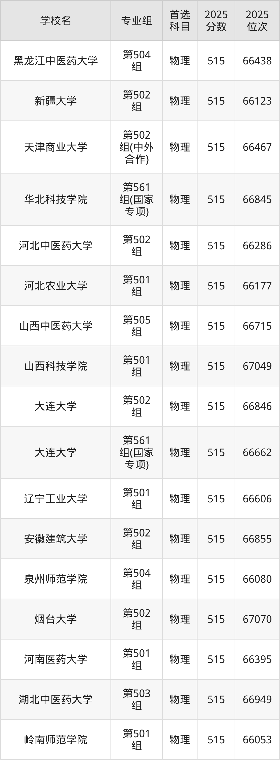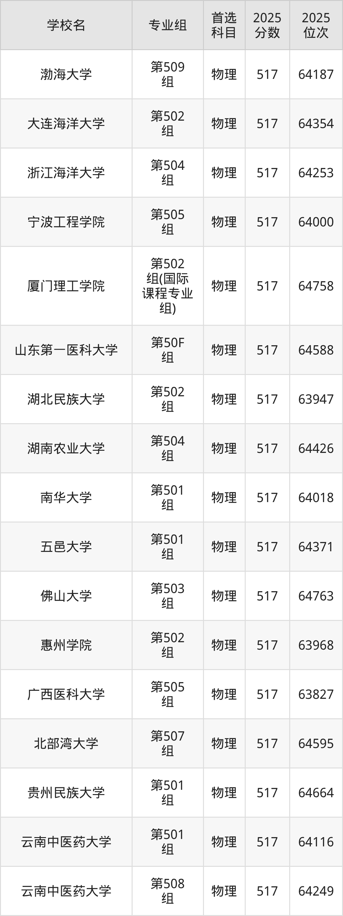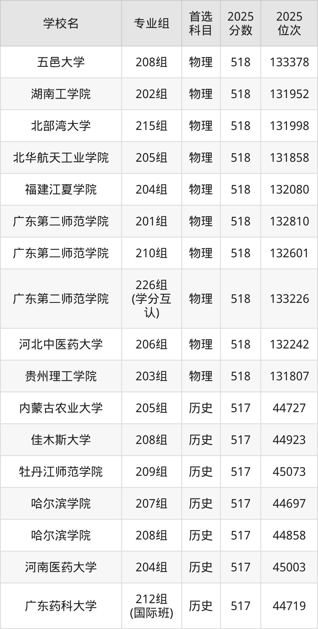 2025年在广东高考物理类录取分数线是516分的大学有山西医科大学、沈阳建筑大学、长春中医药大学、哈尔滨理工大学、福建中医药大学、泉州师范学院、闽南师范大学、山东建筑大学、山东第二医科大学、临沂大学等。历史类录取分数线是516分的大学有内蒙古民族大学、佳木斯大学、齐齐哈尔大学、哈尔滨体育学院、兰州财经大学、宁夏师范大学、喀什大学、伊犁师范大学、浙江万里学院、烟台大学等。