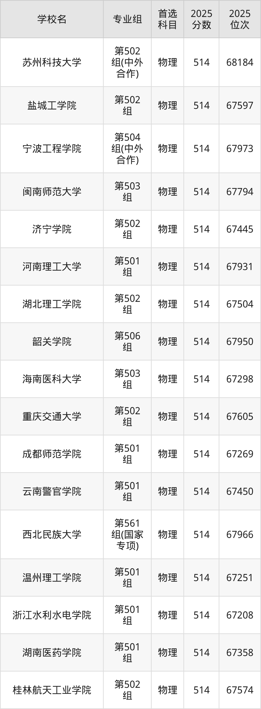 2025年在江西高考物理类录取分数线是516分的大学有华北理工大学、河北工程大学、淮阴师范学院、浙江外国语学院、山东政法学院、郑州轻工业大学、河南农业大学、郑州航空工业管理学院、湖北工业大学、湖南工学院等。历史类录取分数线是516分的大学有黑龙江中医药大学、邢台学院、赤峰学院、鞍山师范学院、辽东学院、通化师范学院、黑龙江工程学院、新乡学院、湖北科技学院、河池学院等。