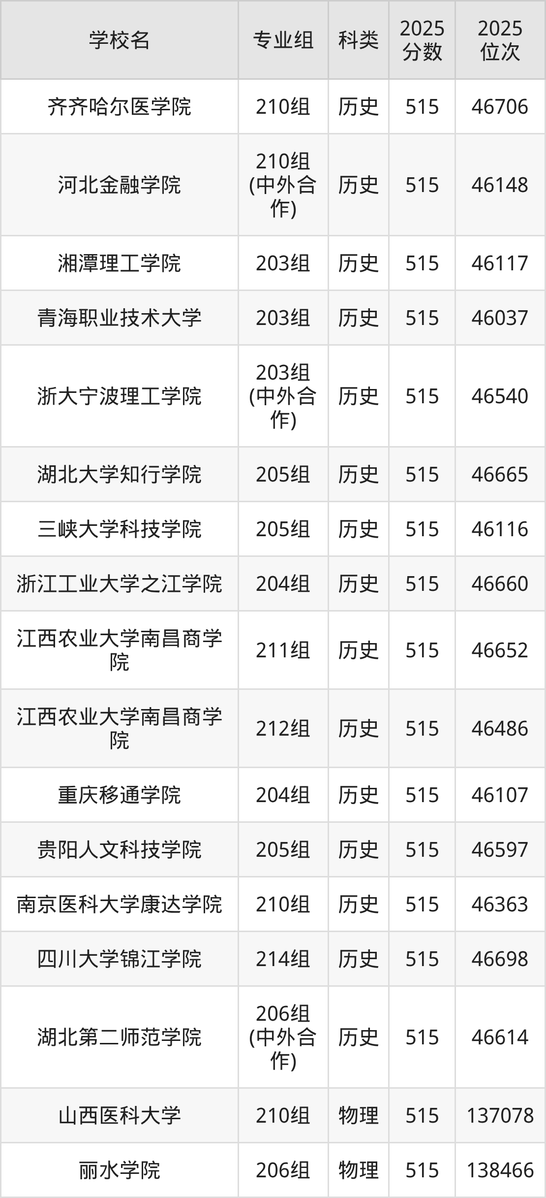 下面老师将以上文整理的其中两个省份为例,为大家具体展示516分左右能上的本科大学名单。