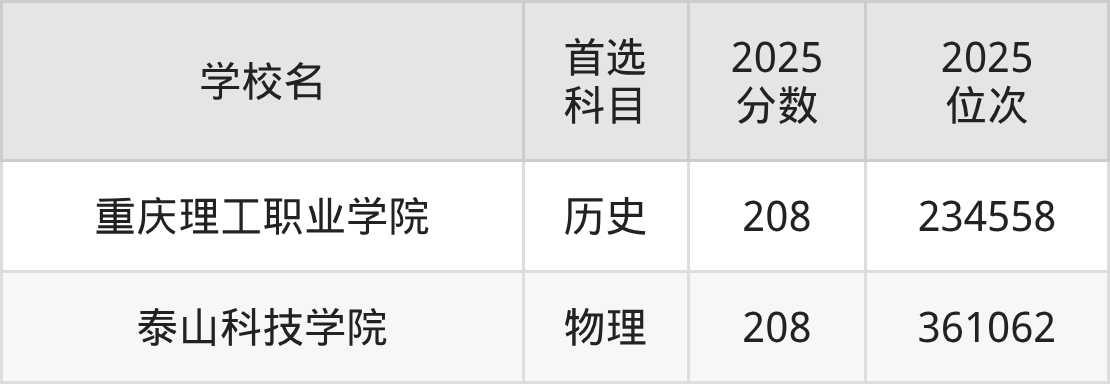 2025年在安徽高考物理类录取分数线是210分的大学有重庆数字产业职业技术学院、重庆信息技术职业学院。历史类录取分数线是210分的大学有上海电影艺术职业学院、民办四川天一学院、天府新区信息职业学院、潇湘职业学院、烟台黄金职业学院。