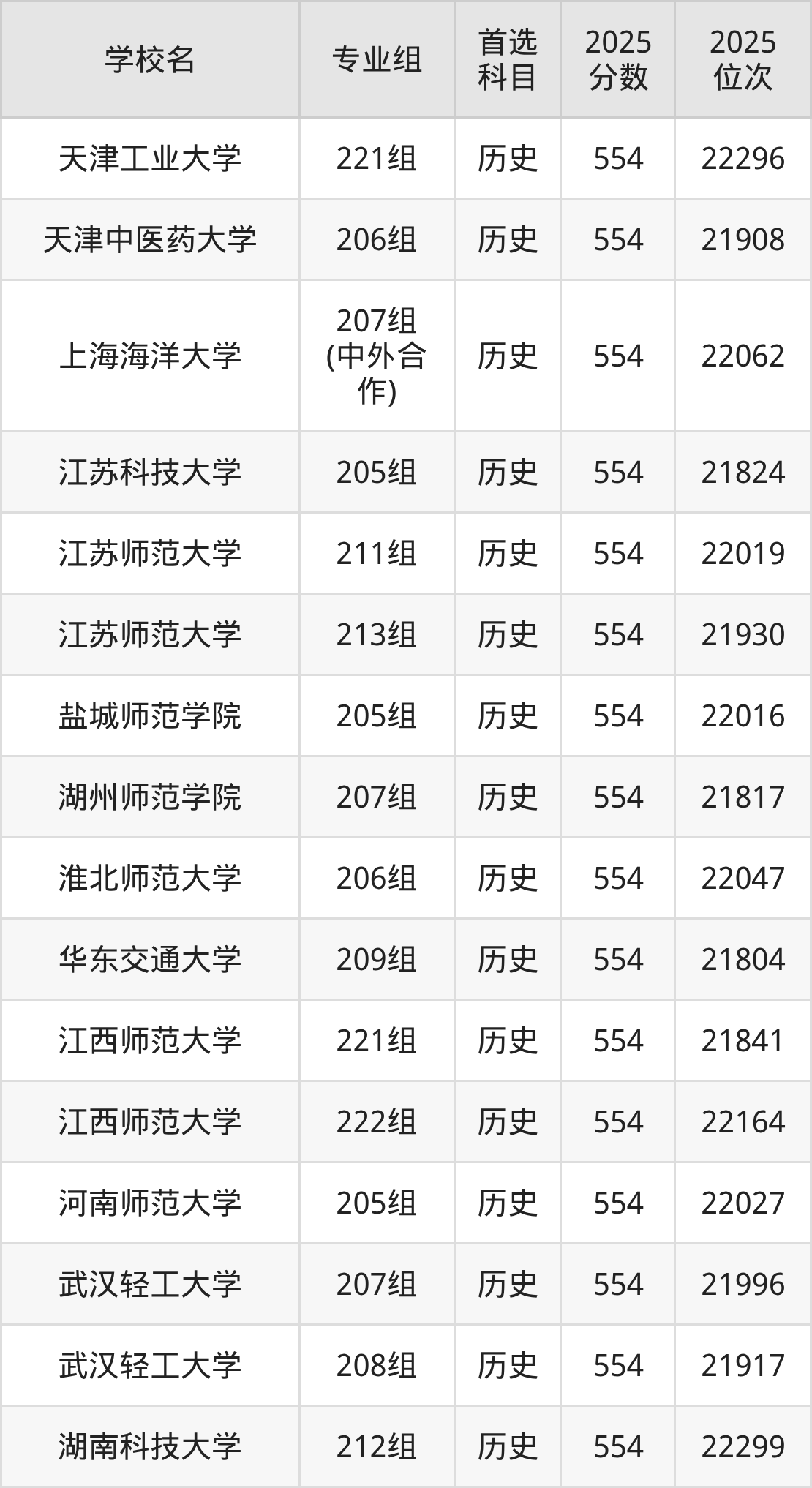 历史类552分可以冲的大学:天津工业大学554分、天津中医药大学554分、上海海洋大学554分、江苏科技大学554分等;较稳妥的大学:天津师范大学551分、泉州师范学院551分、江西农业大学551分、赣南师范大学551分等。