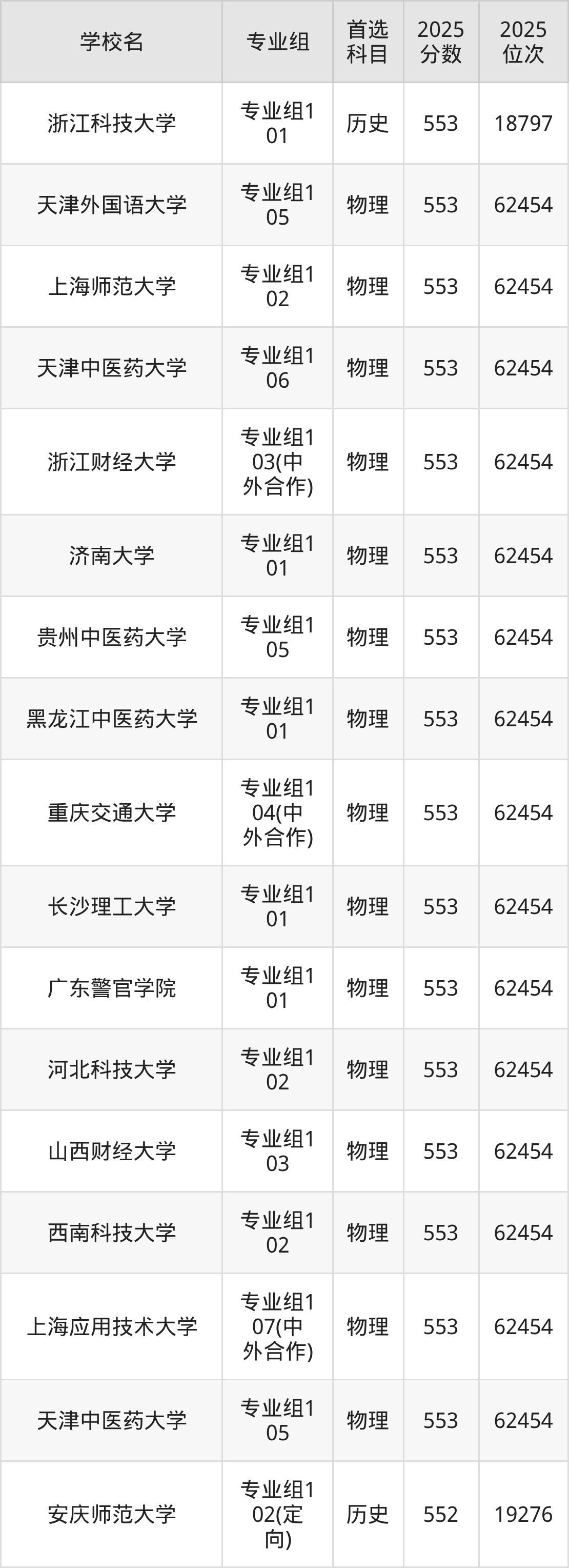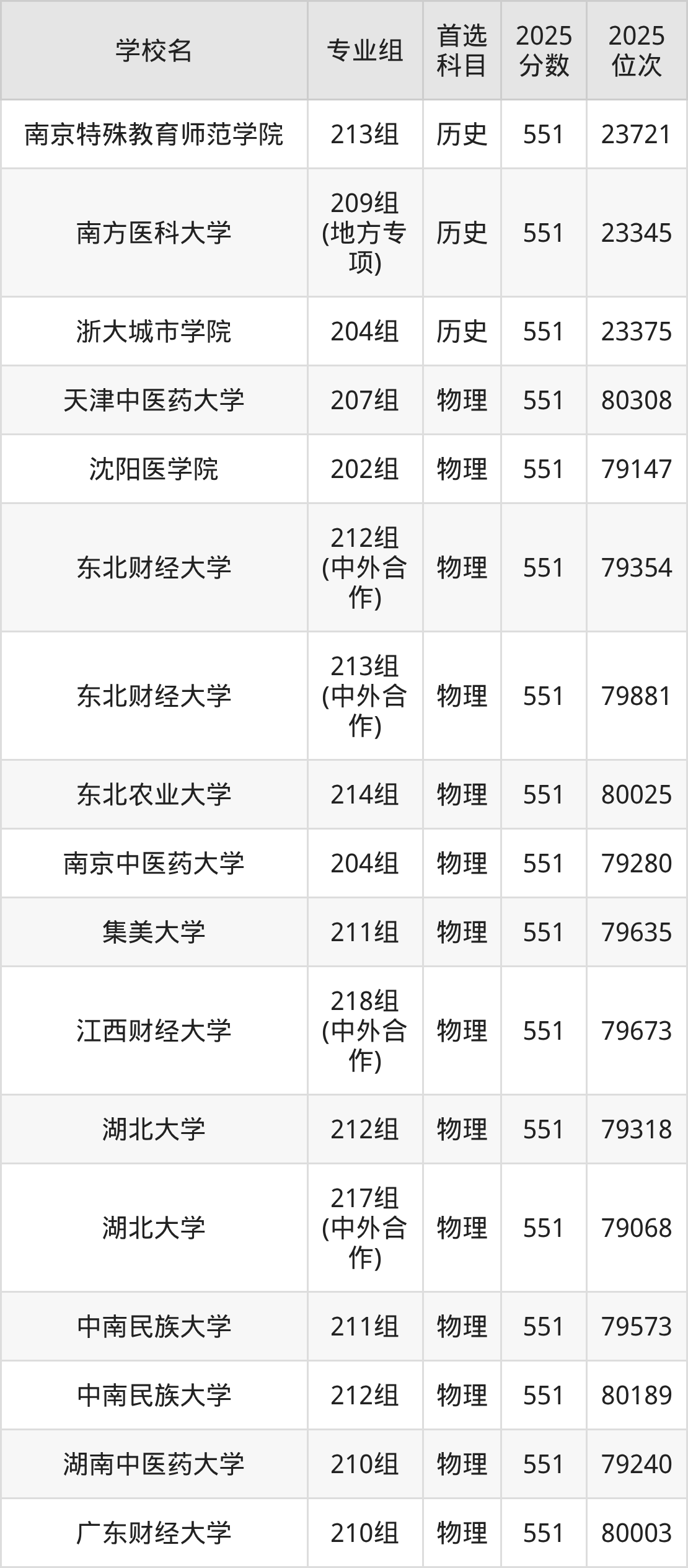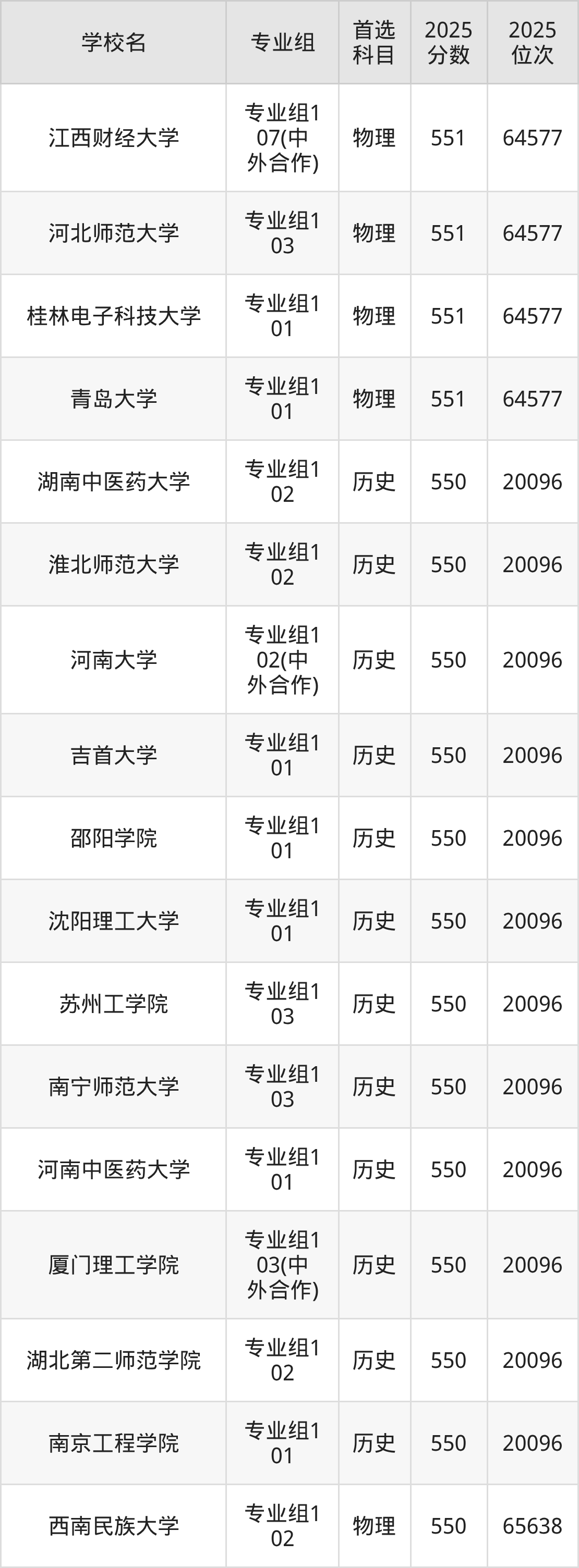下面老师将以上文整理的其中两个省份为例,为大家具体展示552分左右能上的本科大学名单。